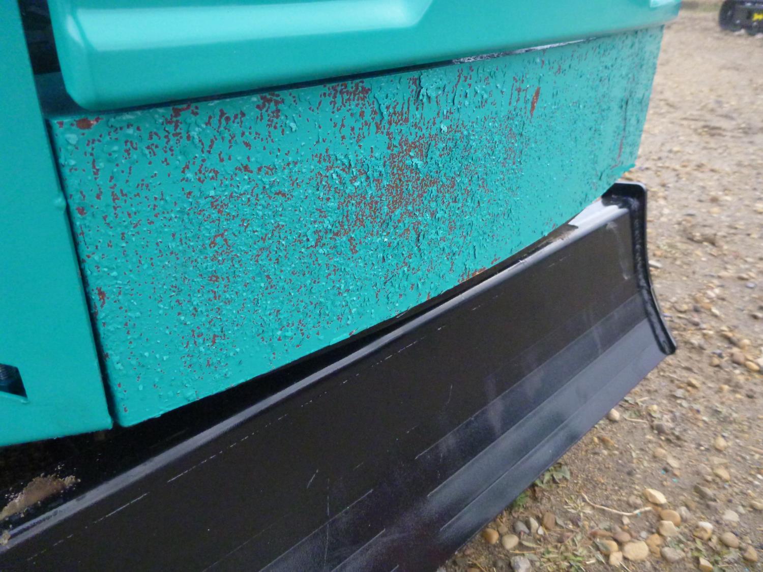 Open station, 420cc gas engine, 16 inch dig bucket, manual thumb, 2 Ft 8 inch stick, backfill blade, rear paint flaking, 7 inch rubber tracks