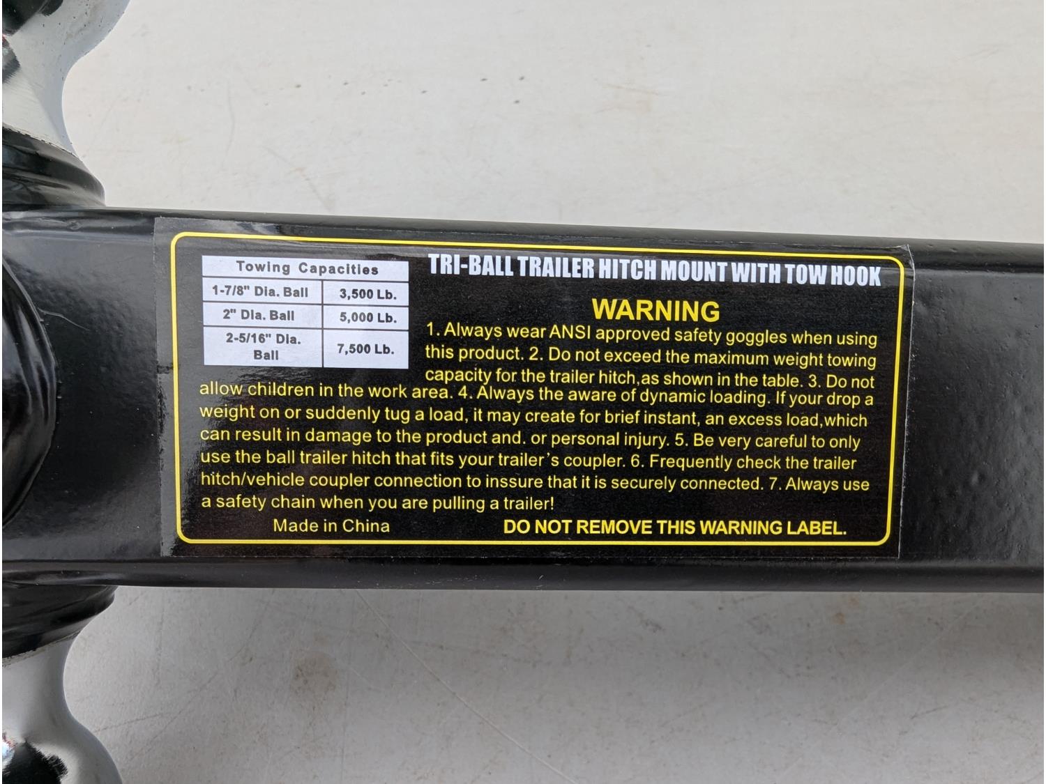3304 (4) 12 Inch Triple Ball Hitch W/Hook (Unused)