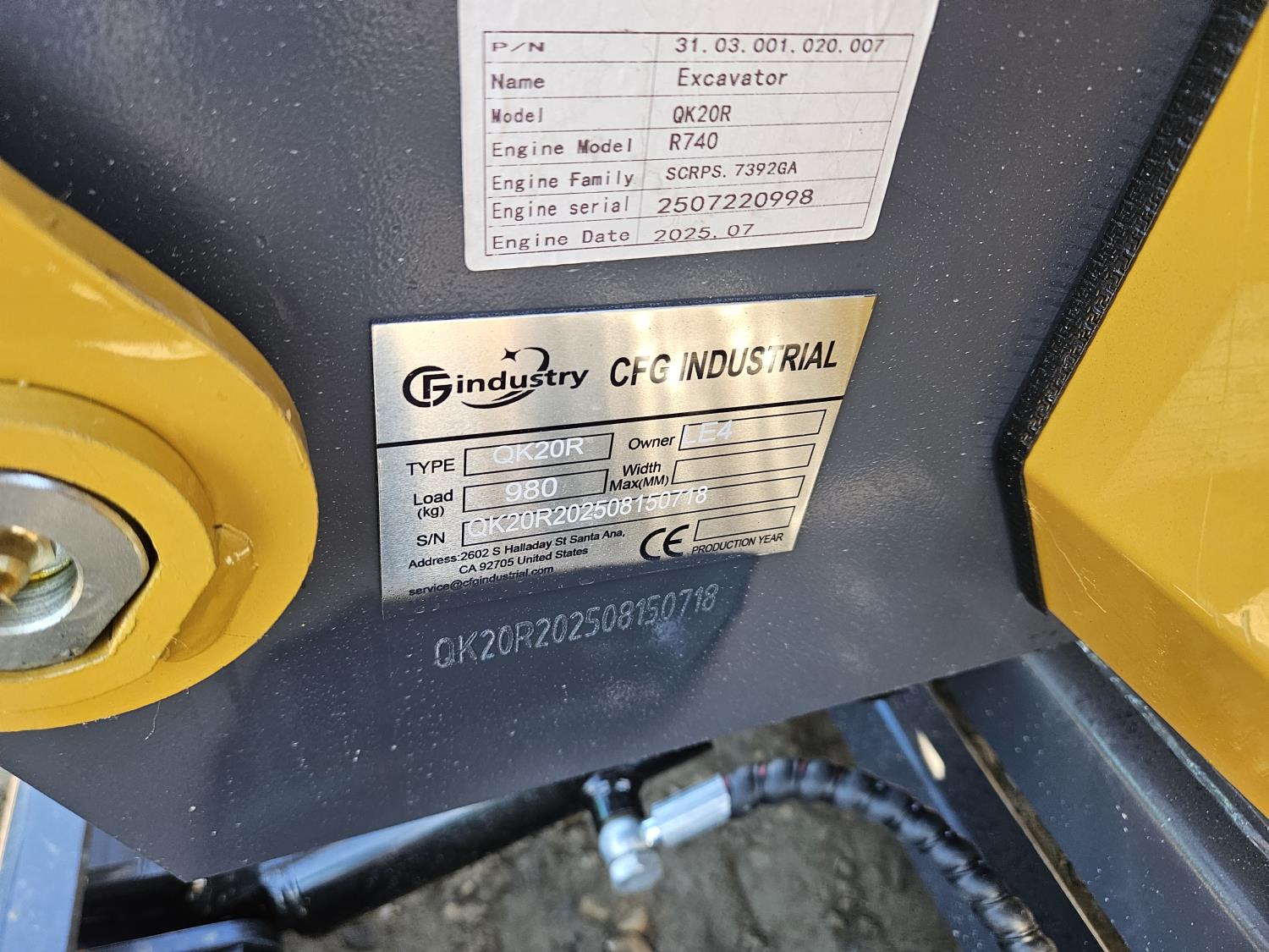 Open station, 739cc gas engine, 16 inch dig bucket, hydraulic thumb, 32 inch stick, backfill blade, rubber tracks