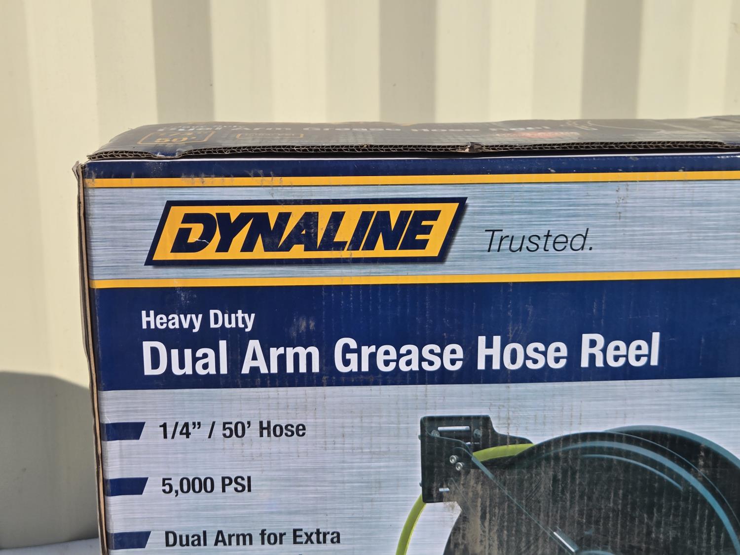 3670 Dynaline Heavy Duty Dual Arm Auto Rewind Grease Reel with Hose (Unused)