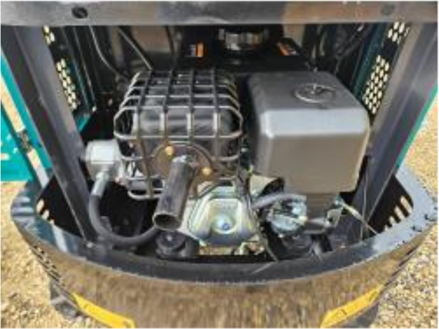 Open station, 420cc gas engine, 16 inch dig bucket, manual thumb, backfill blade, 7 inch rubber tracks