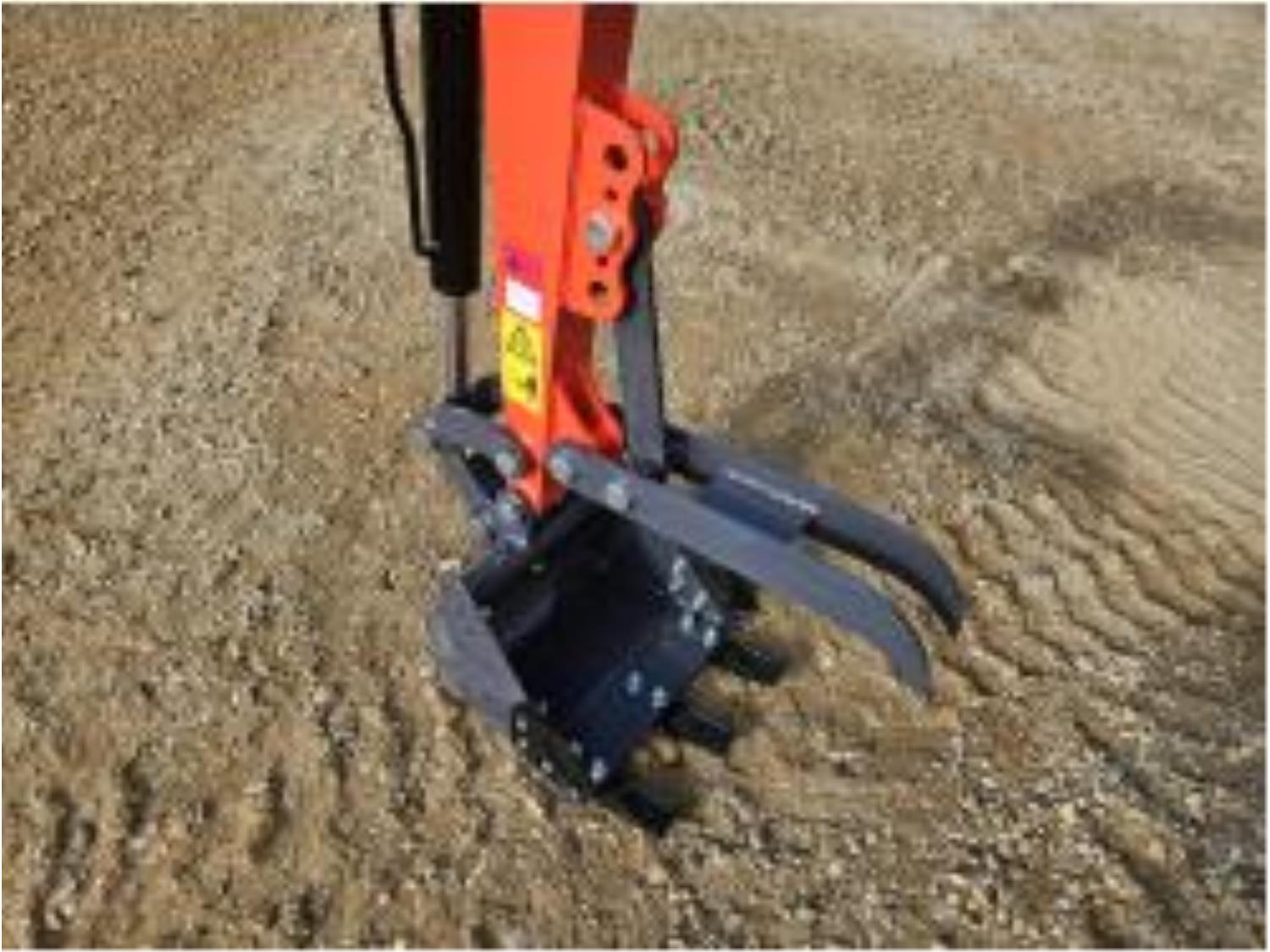 Open station, 420cc gas engine, 16 inch dig bucket, manual thumb, 2 Ft 8 inch stick, backfill blade, 7 inch rubber tracks