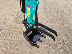 Open station, gas engine, 16 inch dig bucket, manual thumb, backfill blade, 7 inch rubber tracks