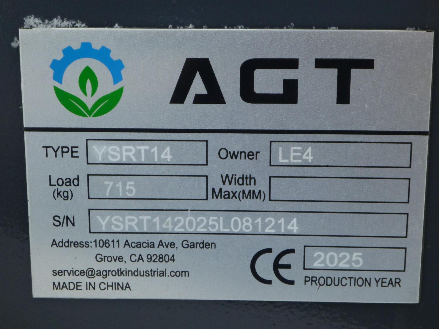 3711 2025 AGT YSRT14 Mini Stand On Skid Steer (Unused)