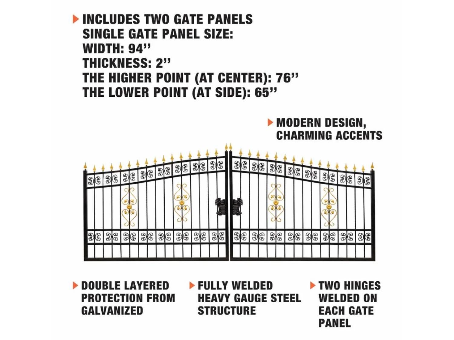 3277 StanForge MG16 16-Ft Bi-Parting Deluxe Wrought Iron Ornamental Gate (Unused)