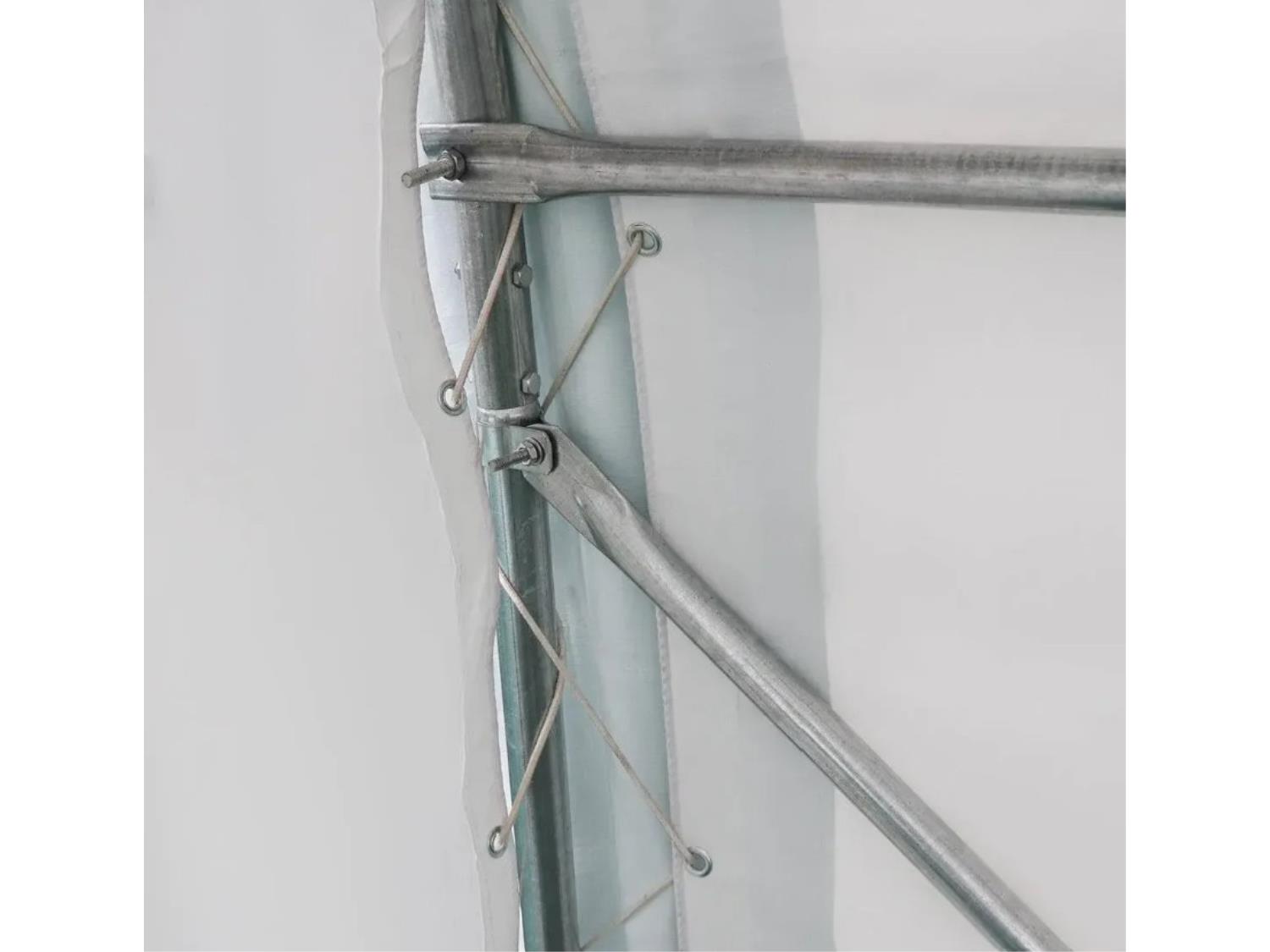 Foundation size required: 4000 mm(13.1 ft (W) x 9320 mm(30.6 ft), Floor footprint: 12 ft (W) x 30 ft (L), Truss spacing: 59”, Truss quantity: 7 groups, Dome ceiling height: 8 ft Truss tubes: 1-3/4” – 17 GA, Door clearance: 8 ft on bottom, 6-½’ on top (W) x 6-¼’ (H), 11 oz PE fabric, 14 x 14 weave, 20 mill, Heavy-duty baseplates w/pre-drilled holes