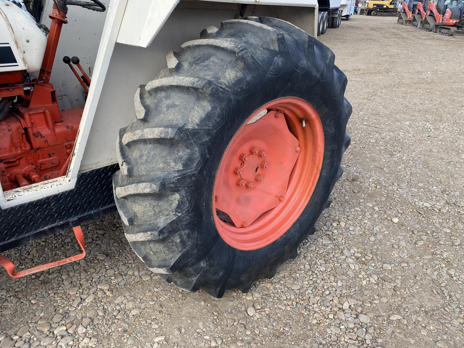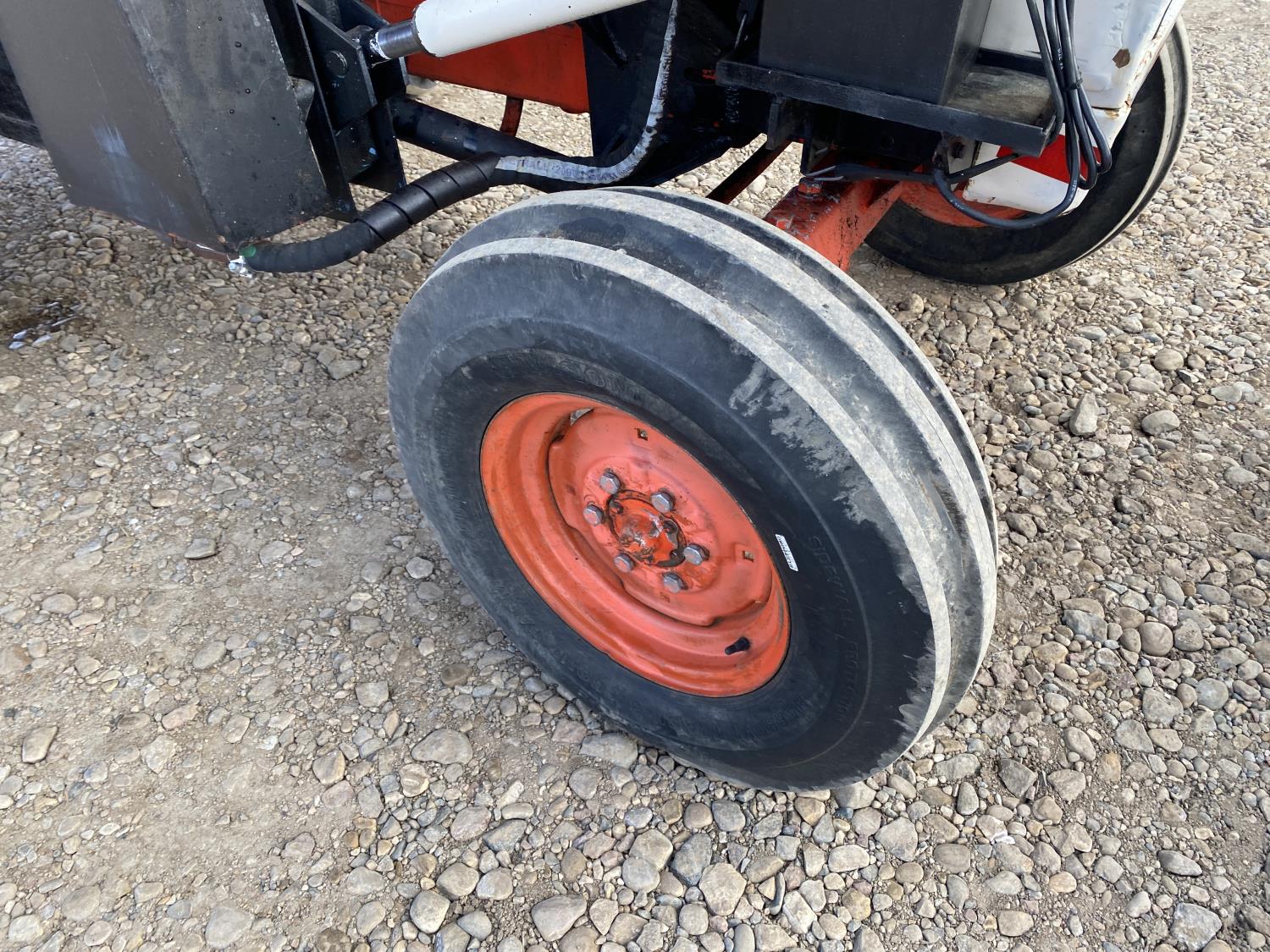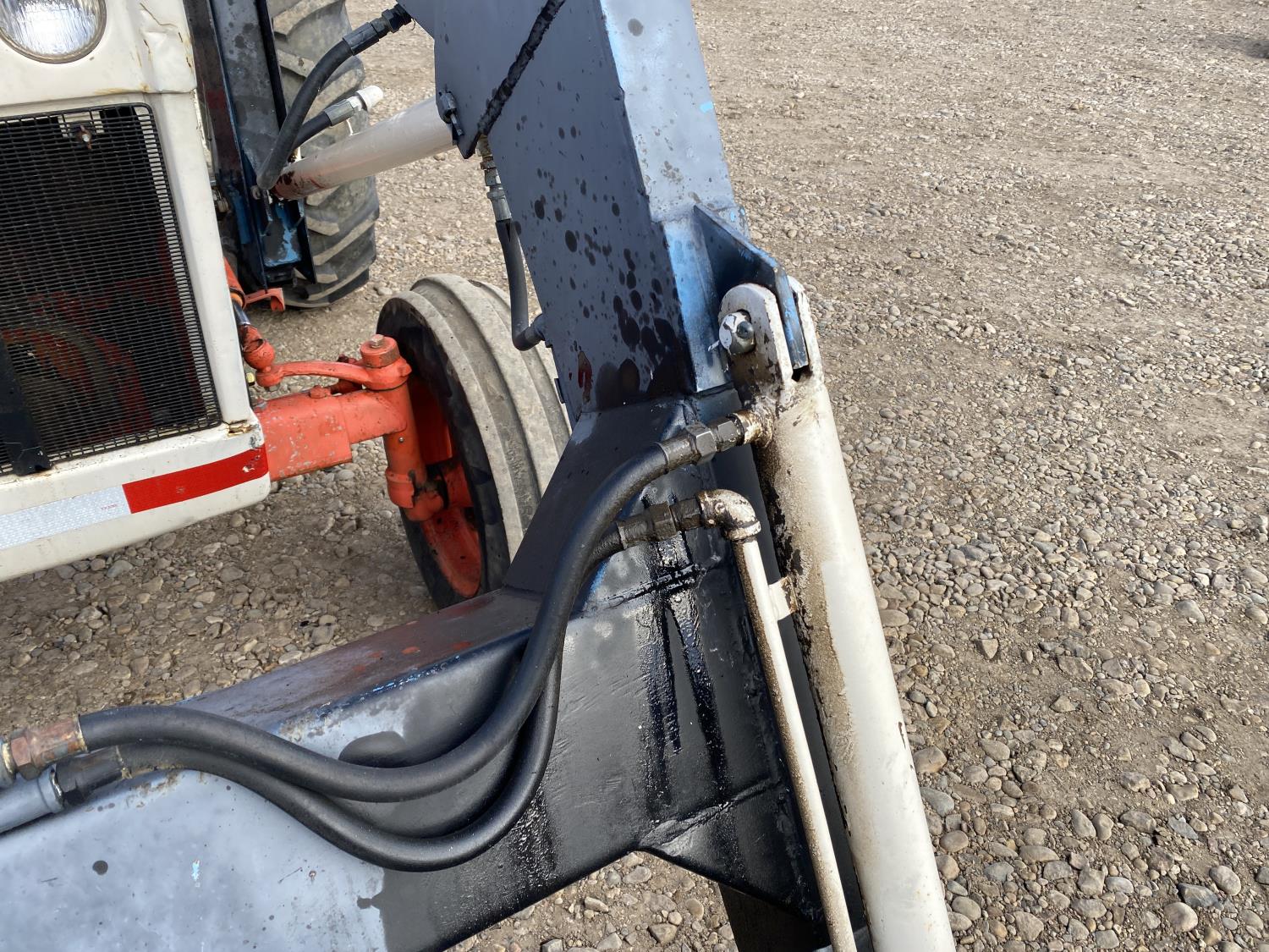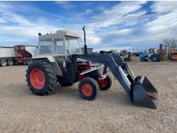 Loader, 60 inch bucket, David Brown 3.6 L 4 cylinder 62 HP, diesel engine, 58 PTO HP, 12 speed partial synchro transmission, 7 GPM hydraulic pump, cab, 540 PTO, 3 point hitch, 2 rear hydraulic outlets, 7.5-16 front tires, 16.9-30 rear tires