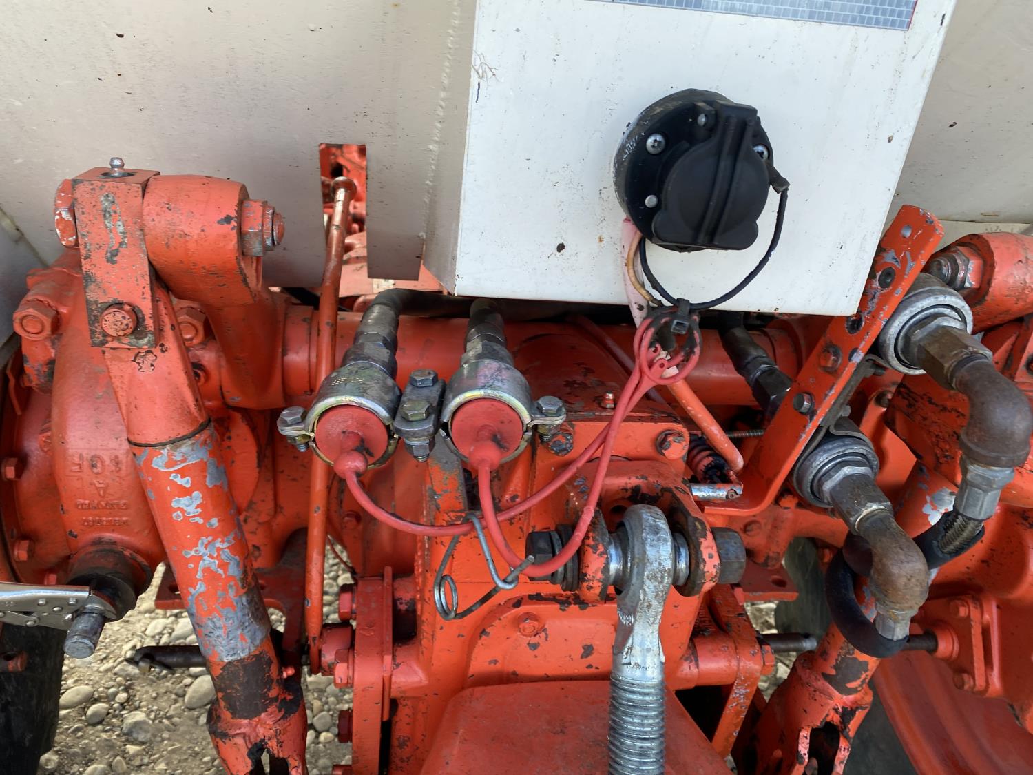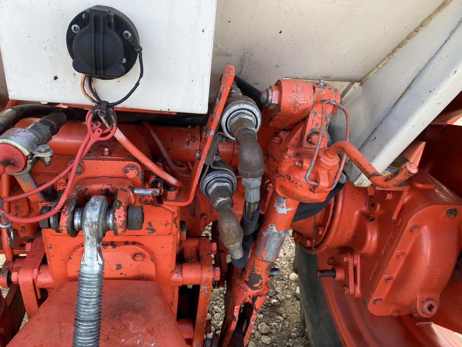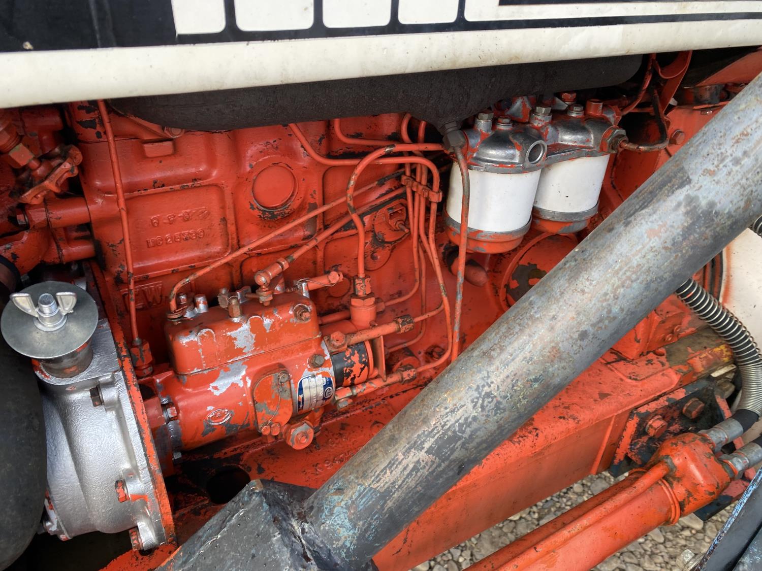 Loader, 60 inch bucket, David Brown 3.6 L 4 cylinder 62 HP, diesel engine, 58 PTO HP, 12 speed partial synchro transmission, 7 GPM hydraulic pump, cab, 540 PTO, 3 point hitch, 2 rear hydraulic outlets, 7.5-16 front tires, 16.9-30 rear tires