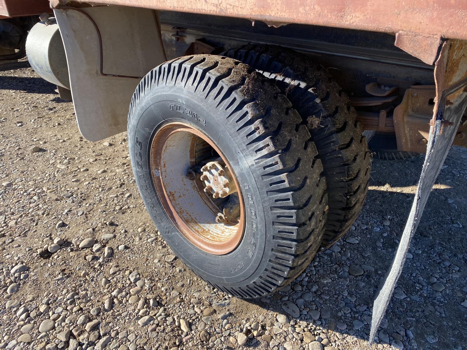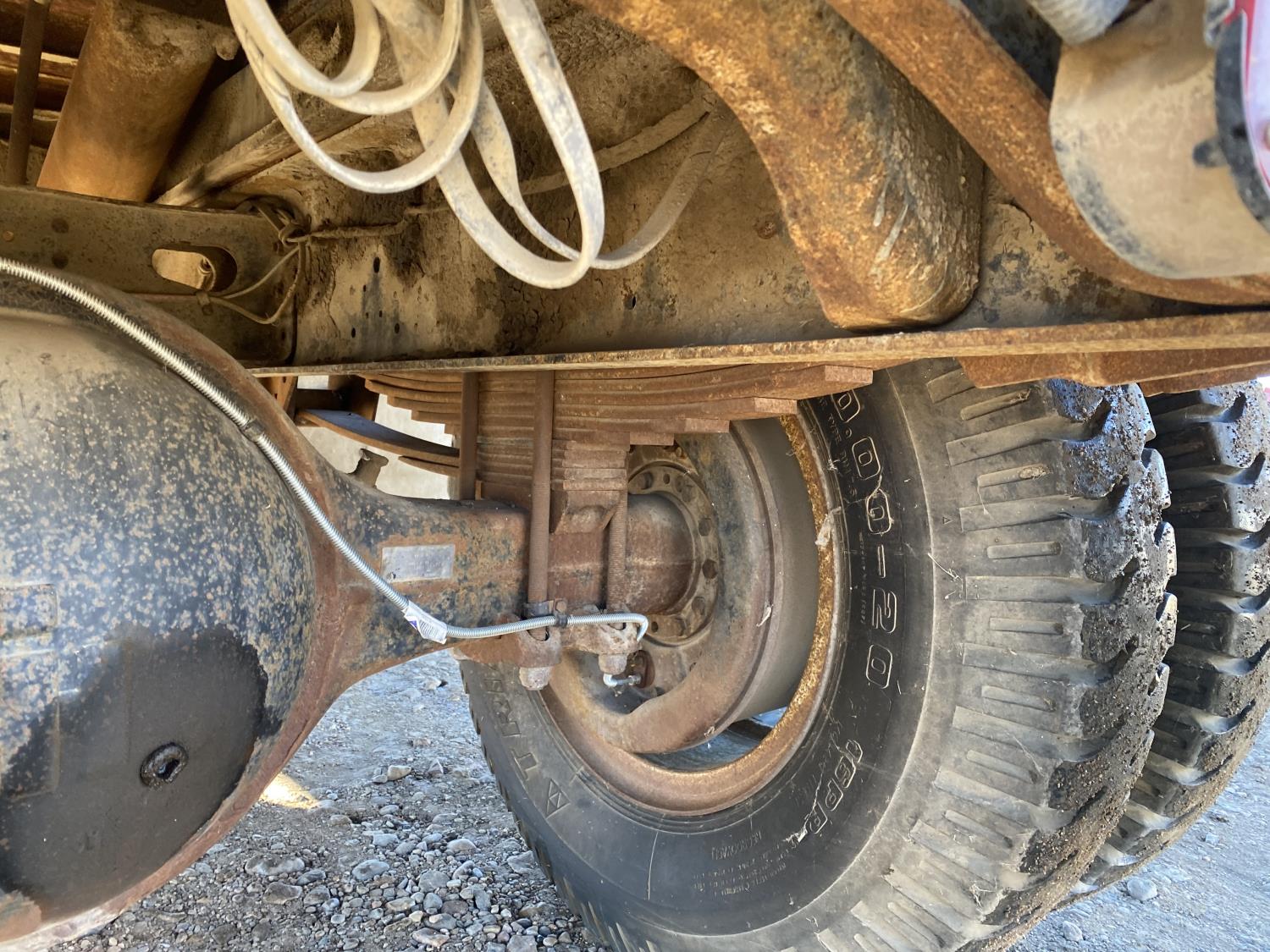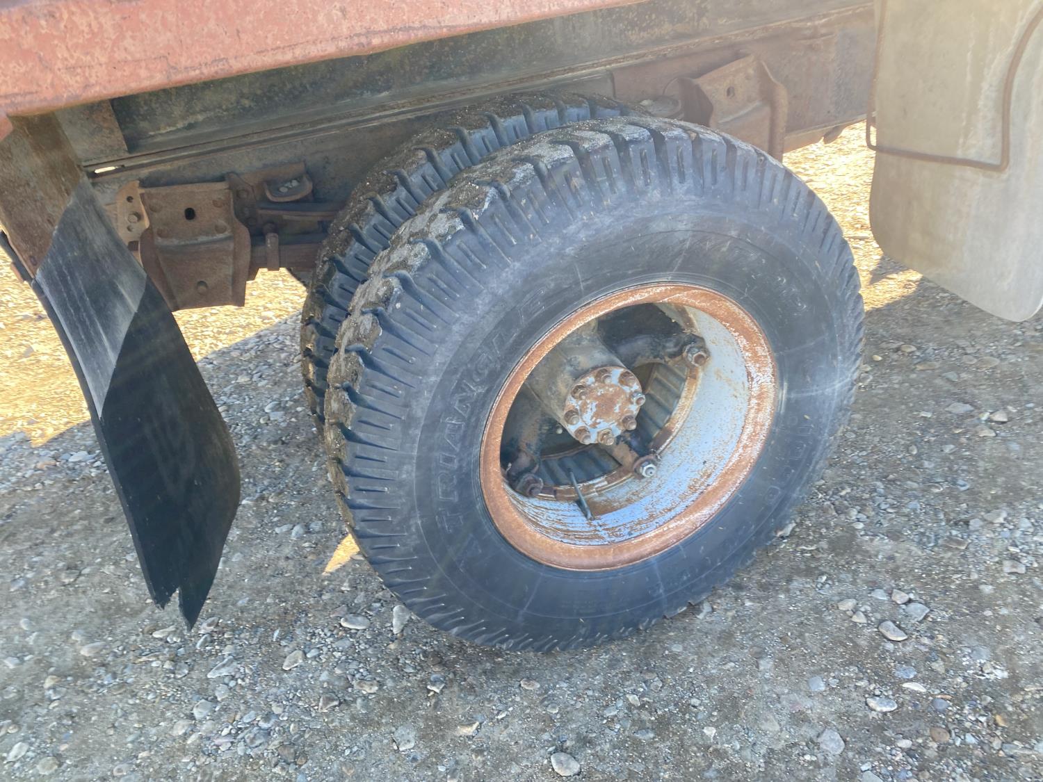 V8 gas engine, 5X4 manual transmission, running boards, 12 ft box, PTO pump, spring suspension, 188 inch WB, 10-20 tires