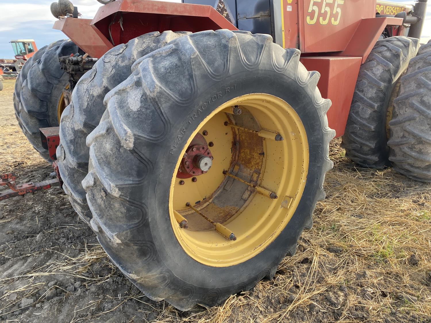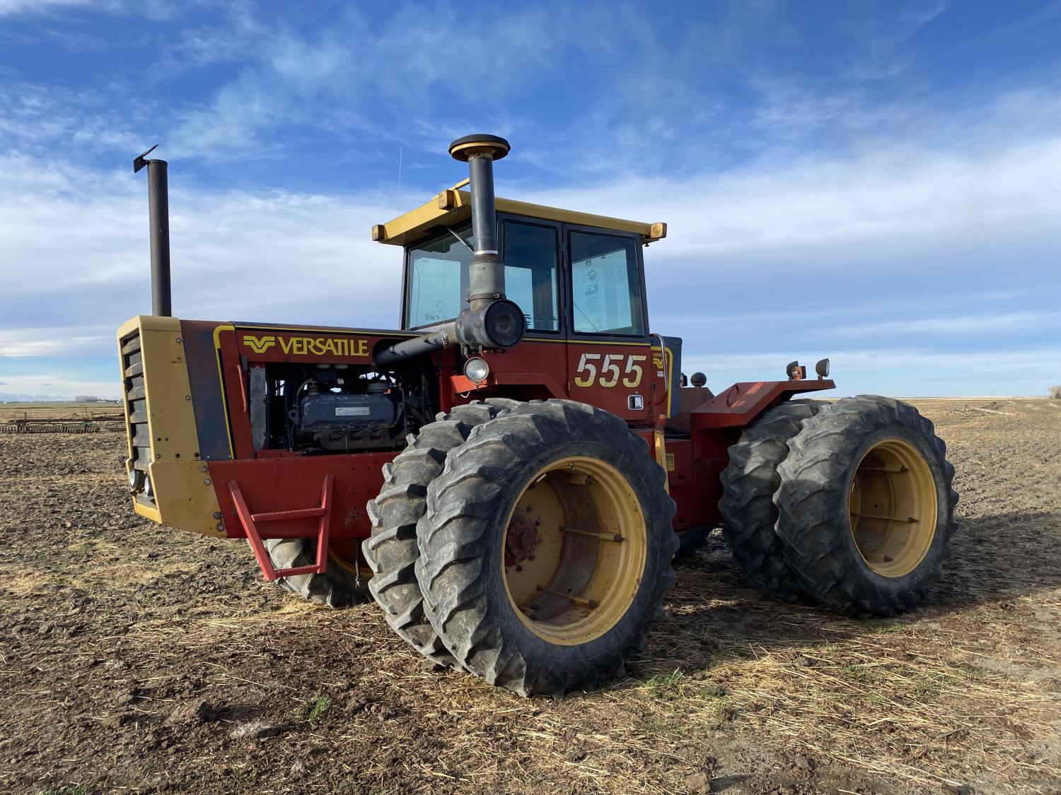 Cummins VT-555-C 9.1 L V8 210 HP, engine, 184 PTO HP, 15 speed manual transmission, 23 GPM hydraulic pump, cab, ROPS, 1000 PTO, 4 rear hydraulic outlets, 18.4-38 dual tires