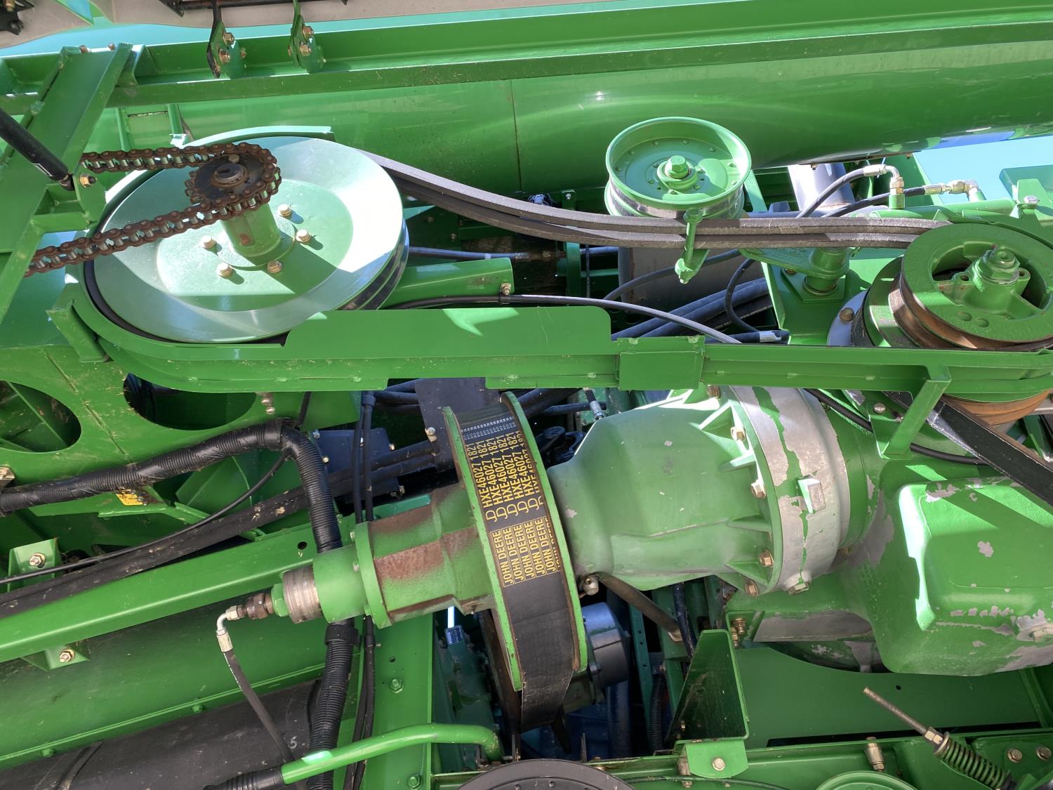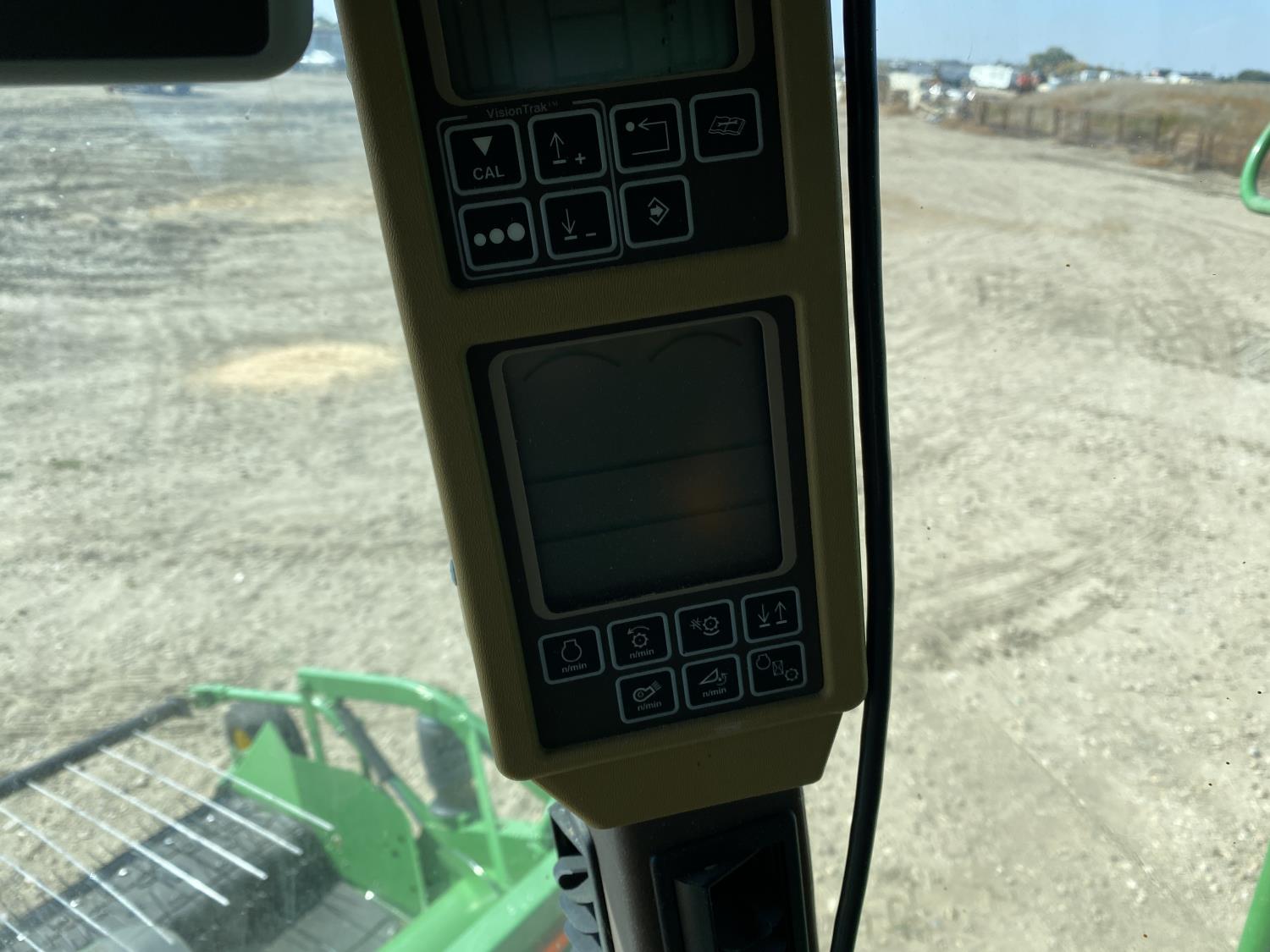 2007 John Deere 615P 15 ft pick-up header, variable speed reel, auto header height, fore & aft, reverser, rock trap, chaff spreader, fine cut chopper, grain tank extensions, 21 ft auger, folding auger, A/C, buddy seat, Hemisphere, 2022 Perfomax, 24.5R32 front tires, 18.4R26 rear tires