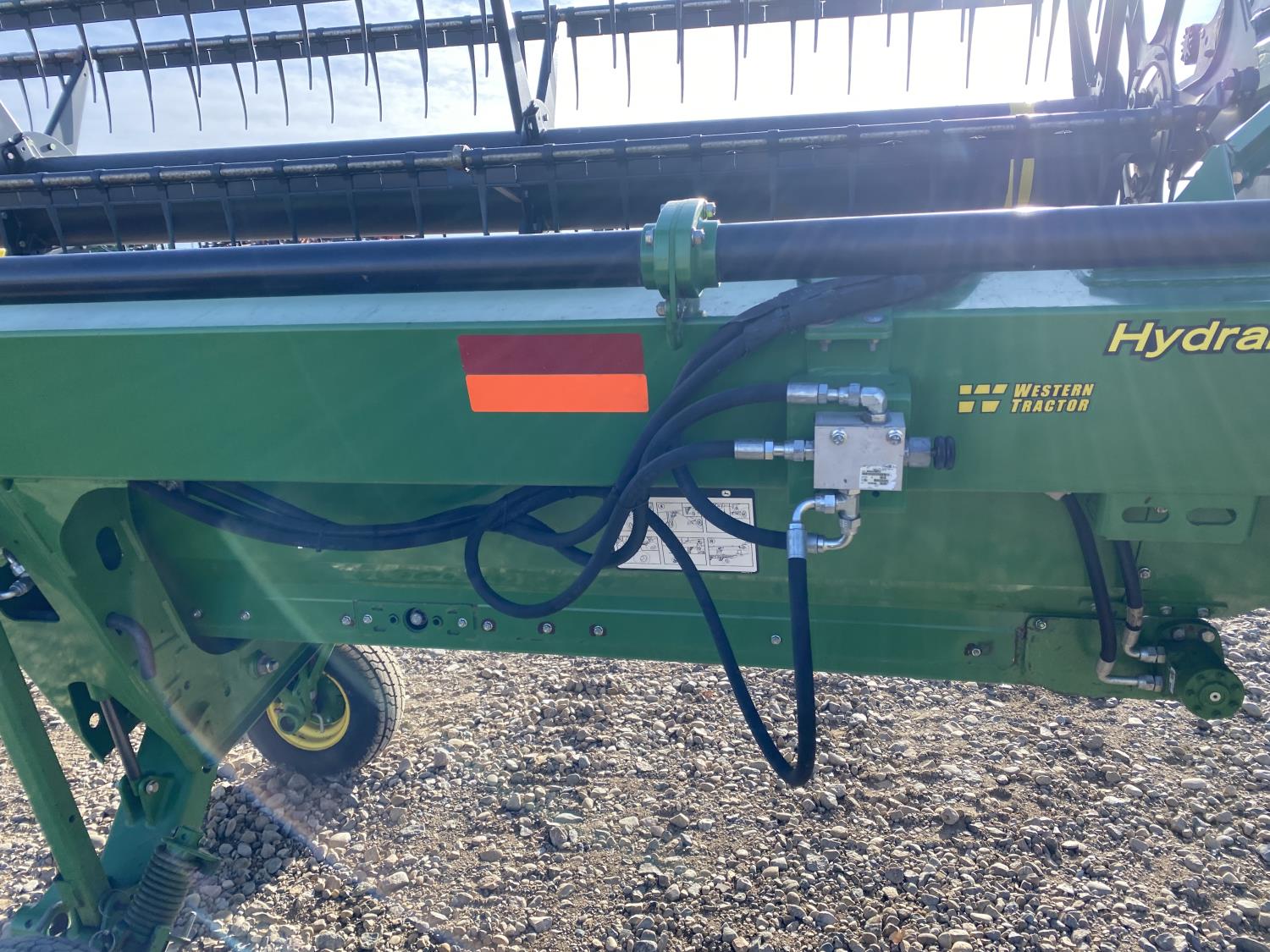 pickup reel, fore & aft, double knife drive, top cross auger, poly skid plates, factory transport, to fit John Deere