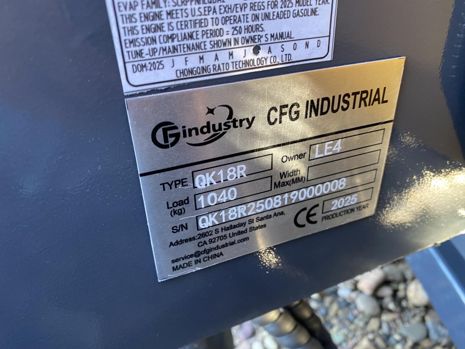 2025 CFG QK18R Mini Excavator (Unused)