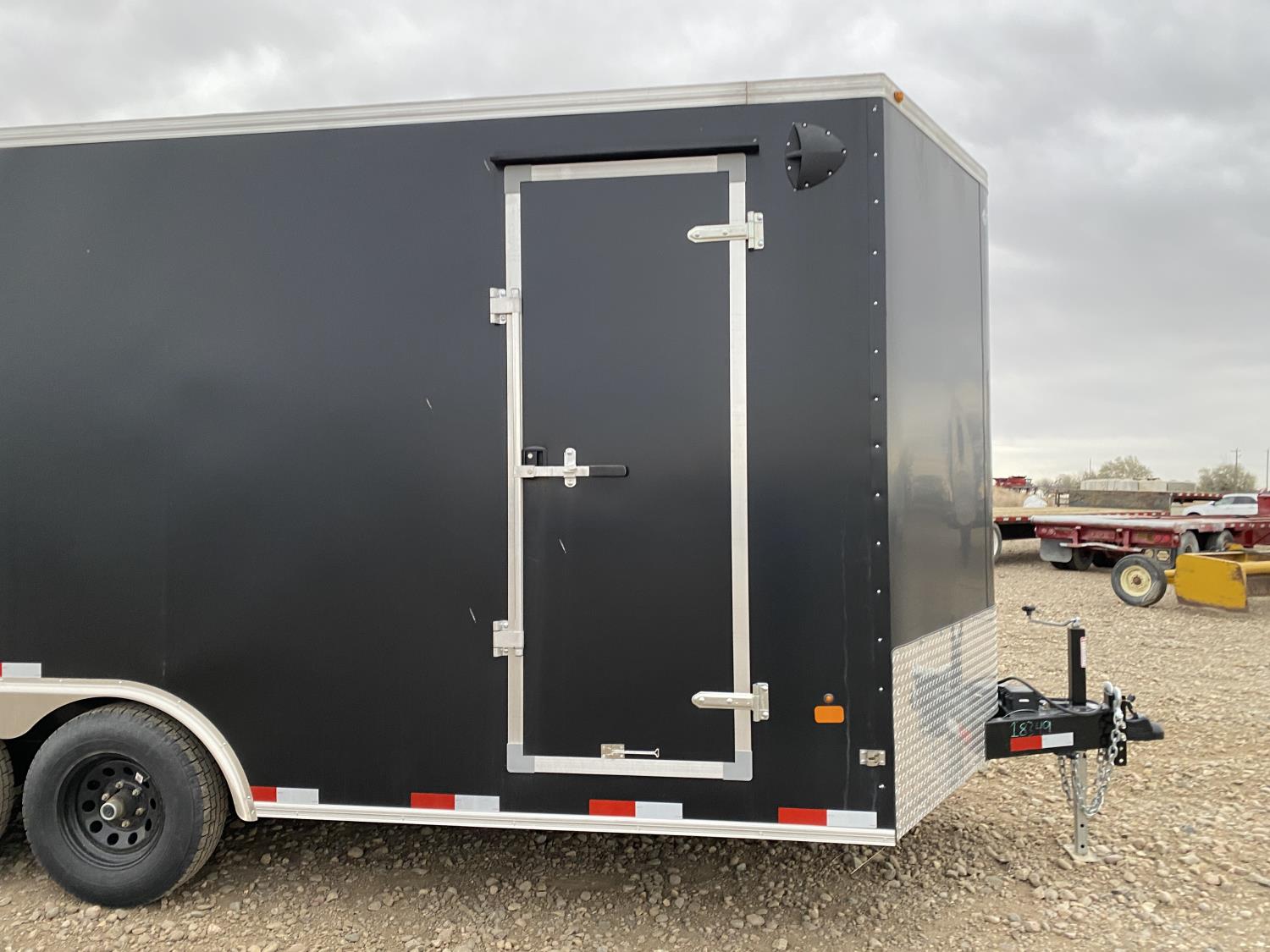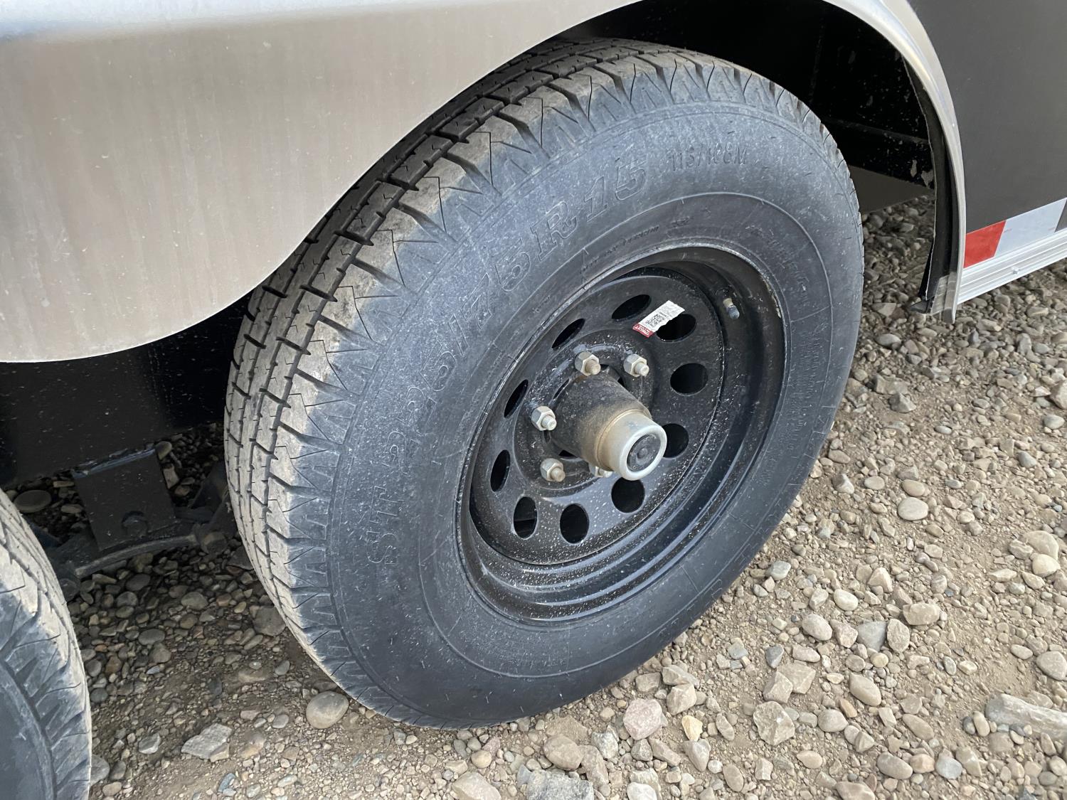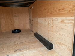 96 inch interior width, 86 inch interior height, ball hitch, side door, fold down door, electric brakes, spring suspension, 5121 lb axles, 225/75R15 tires