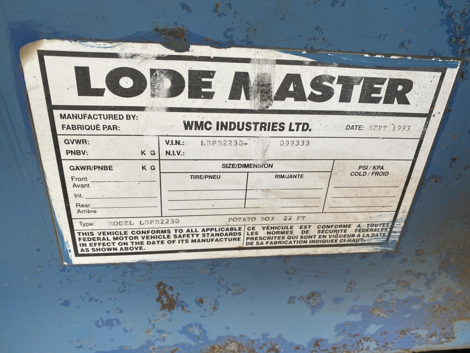245 1993 Lode Master LBPB2230 22 Ft Live Bottom Box
