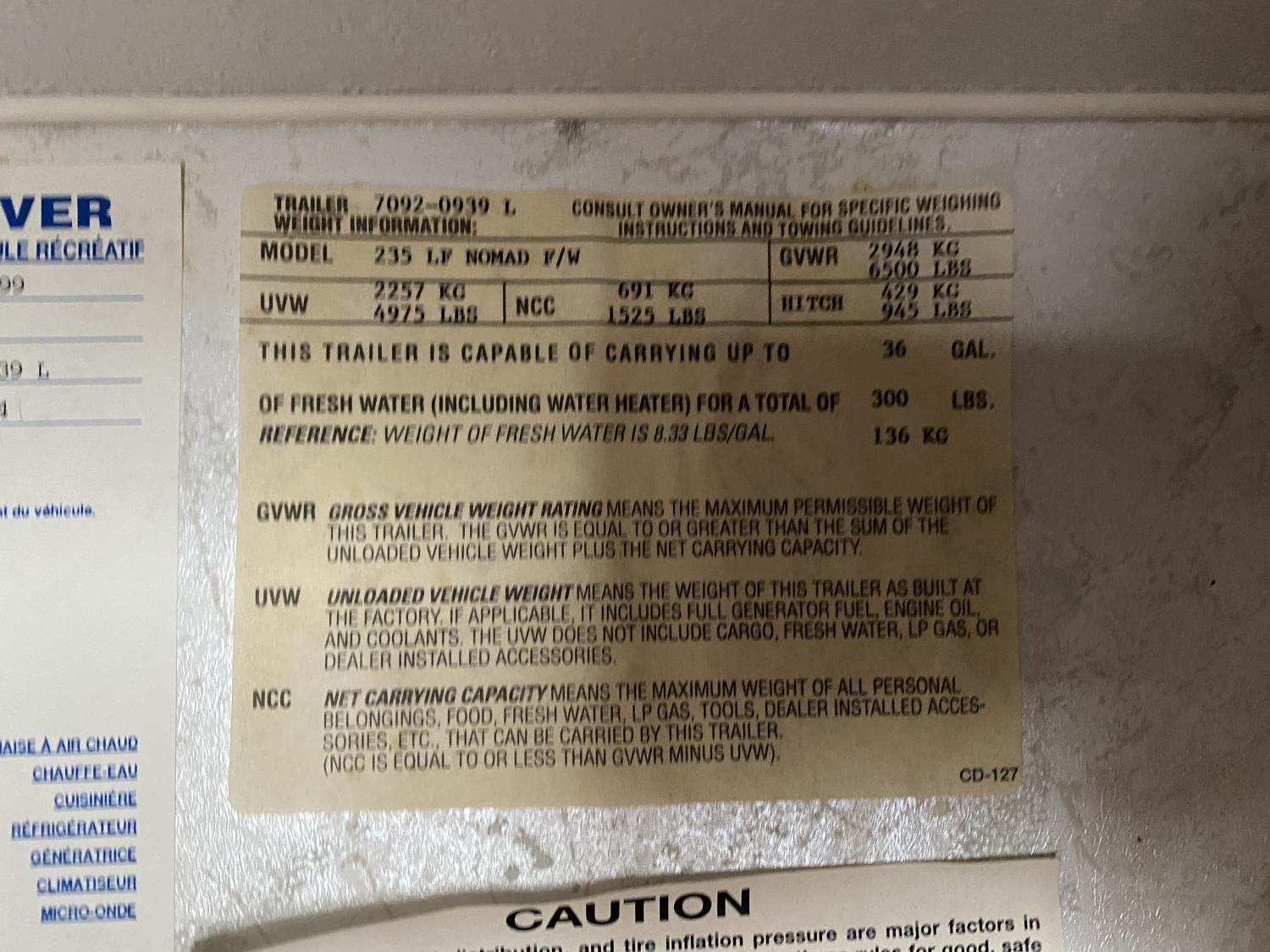 149 1999 Nomad 235LF 23 Ft T/A 5th Wheel Travel Trailer