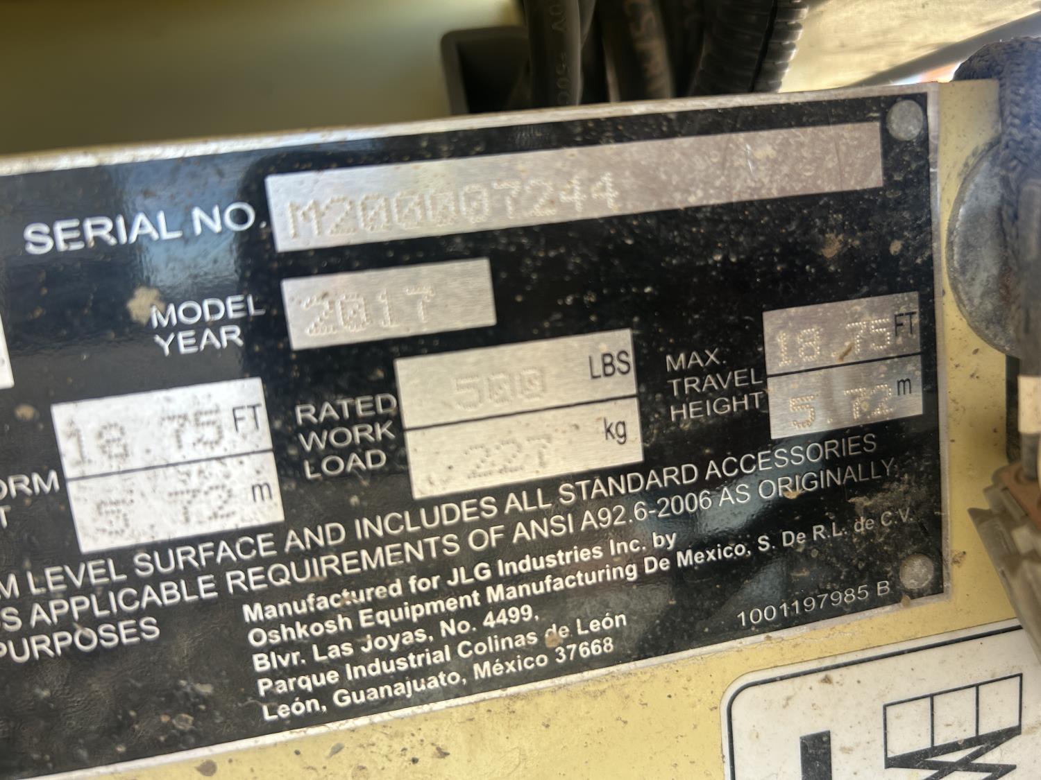 1 speed transmission, 500 lb capacity, 26 x 72 inch platform, 40 inch extendable platform, upper control box, power to platform, solid rubber 323X100 tires