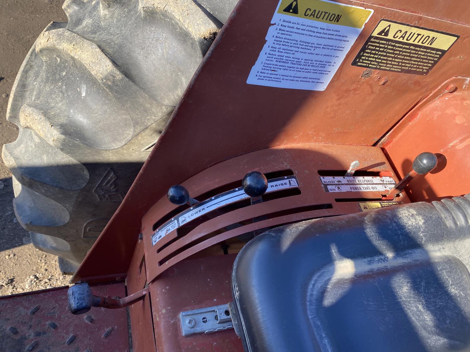 3.3 L 4 cylinder 65 HP, engine, 61 PTO HP, 8 speed manual transmission, 13 GPM hydraulic pump, open station platform, 540 PTO, 3 point hitch, 2 rear hydraulic outlets, 7.50-16 front tires, 15.5-38 rear tires