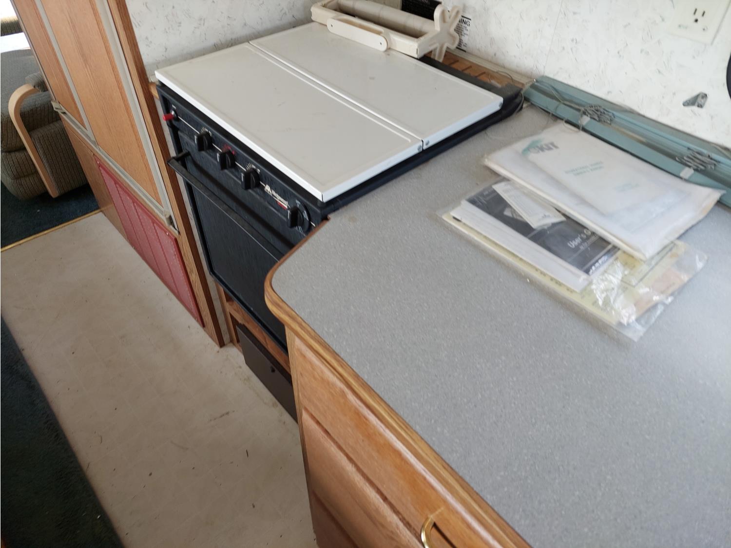 Sleeps 6, stove, fridge, microwave, master bedroom, A/C, 1 slide, manual awning, spring suspension, electric brakes, 225/75R15 tires