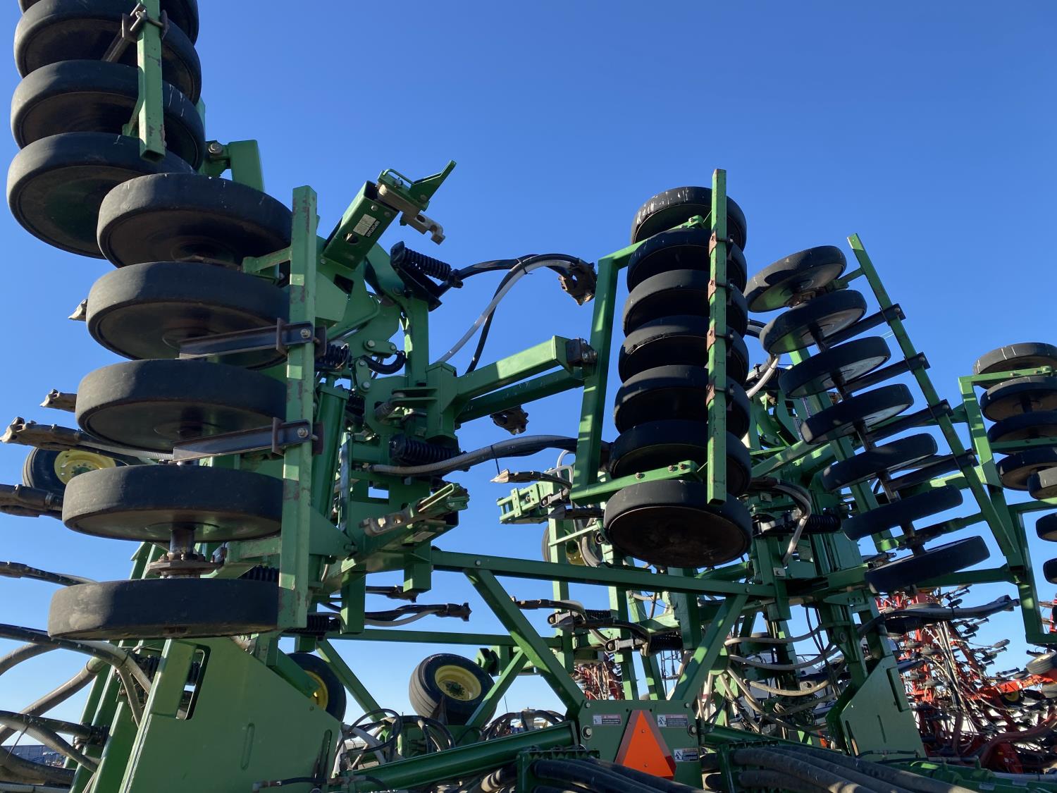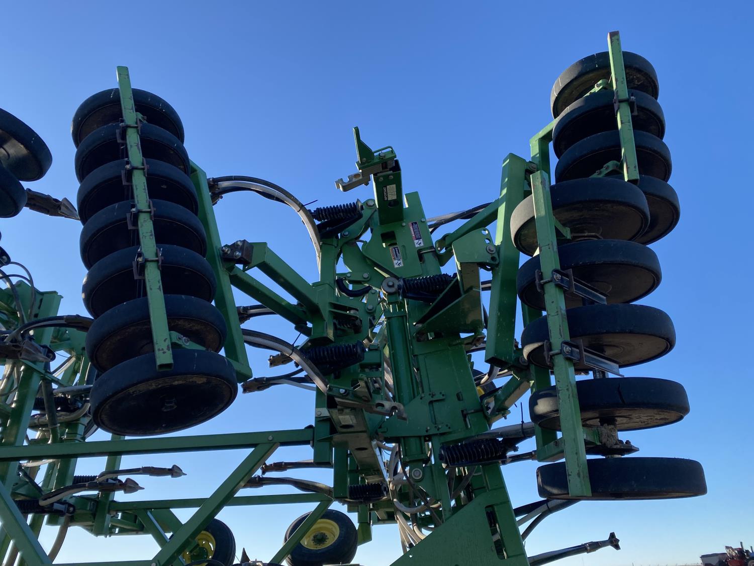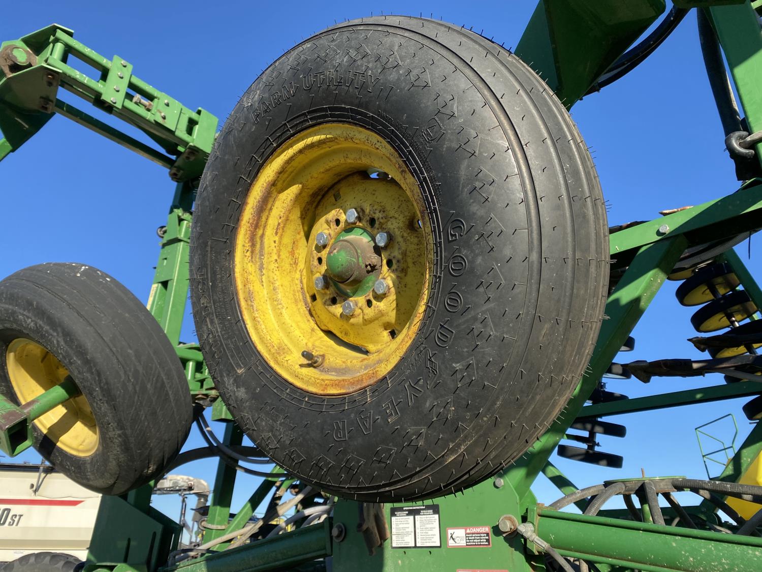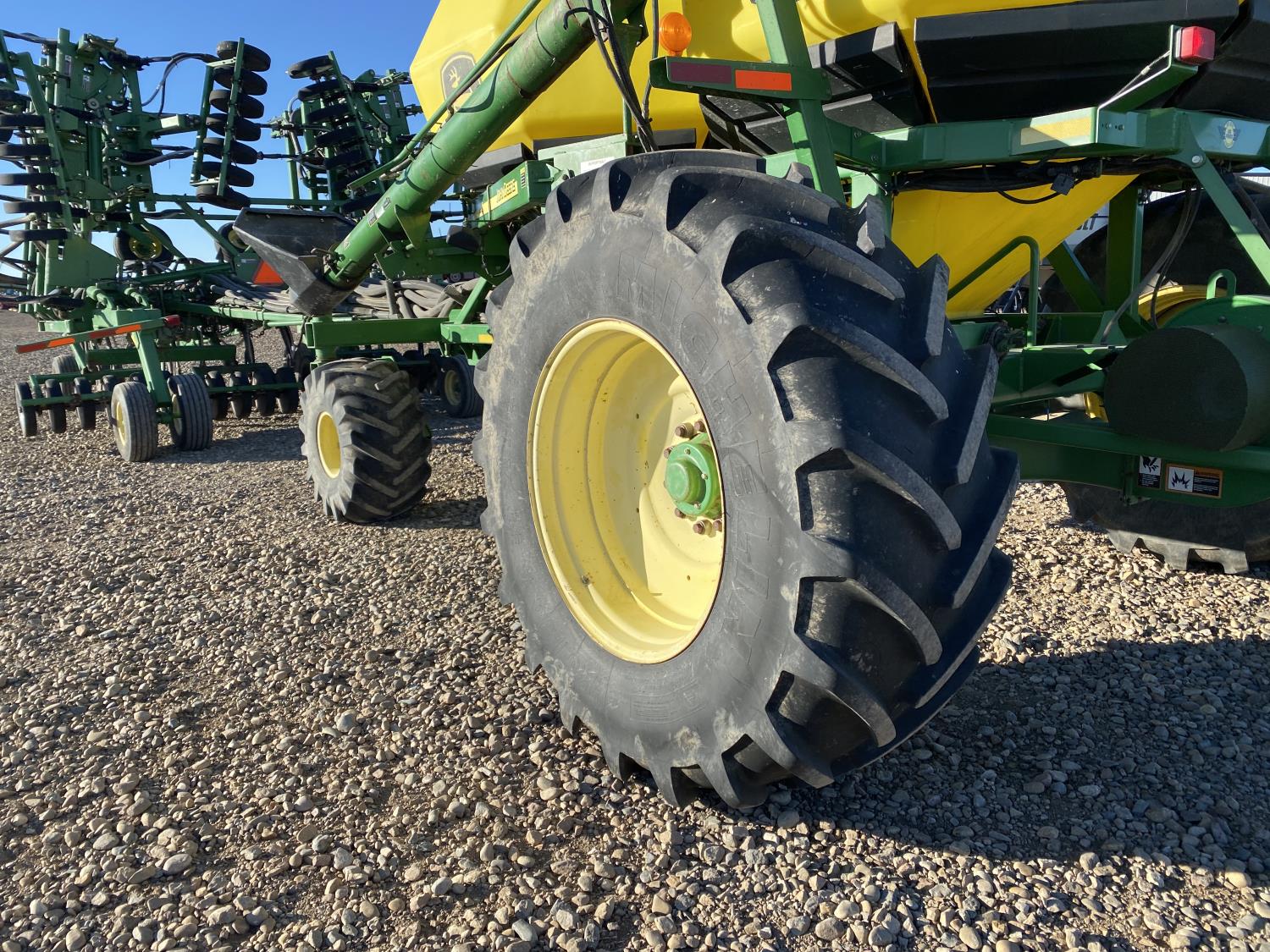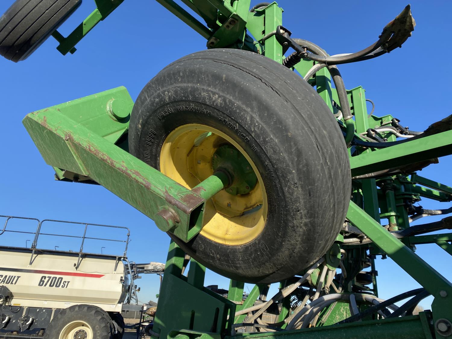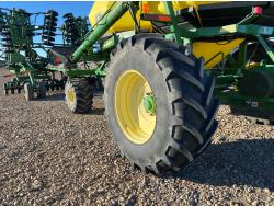 9 inch spacing, double shoot openers, 4 inch rubber capped packers, Air Cart: 2 compartments, 8 inch loading auger, single fan, 12.5L-16.1SL front tires, 12.5L-16.1SL rear tires