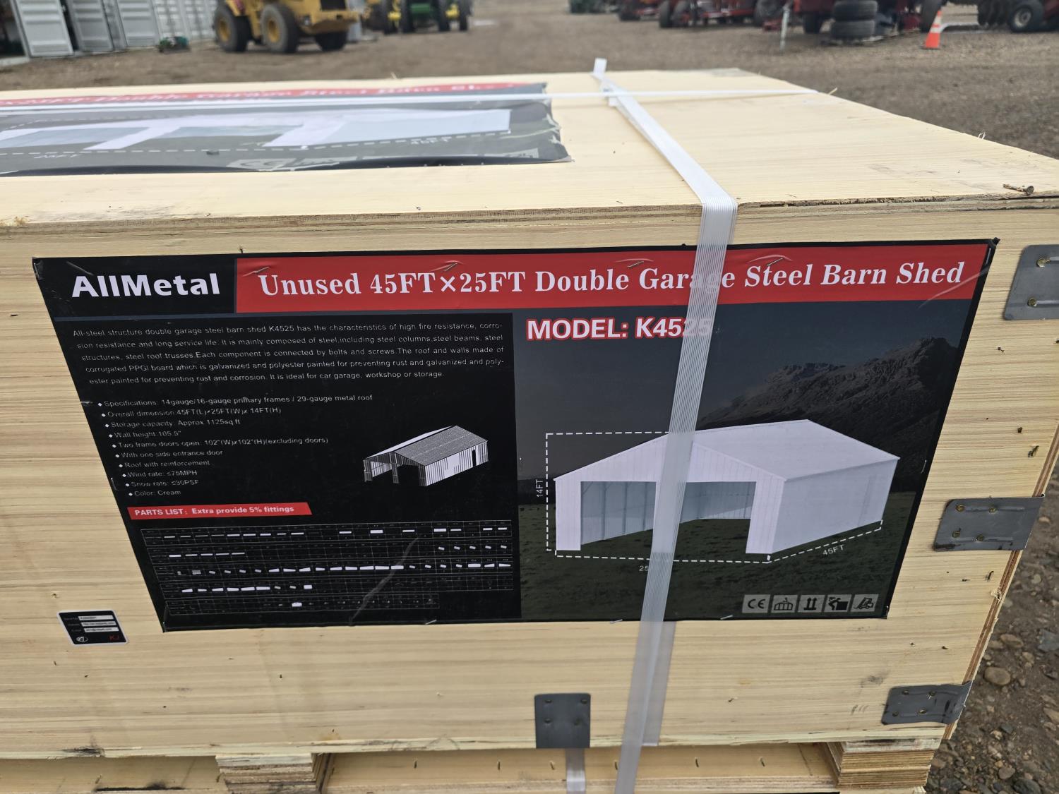 25 KJ K4525 45 Ft X 25 Ft Double Garage Steel Barn Shed (Unused)