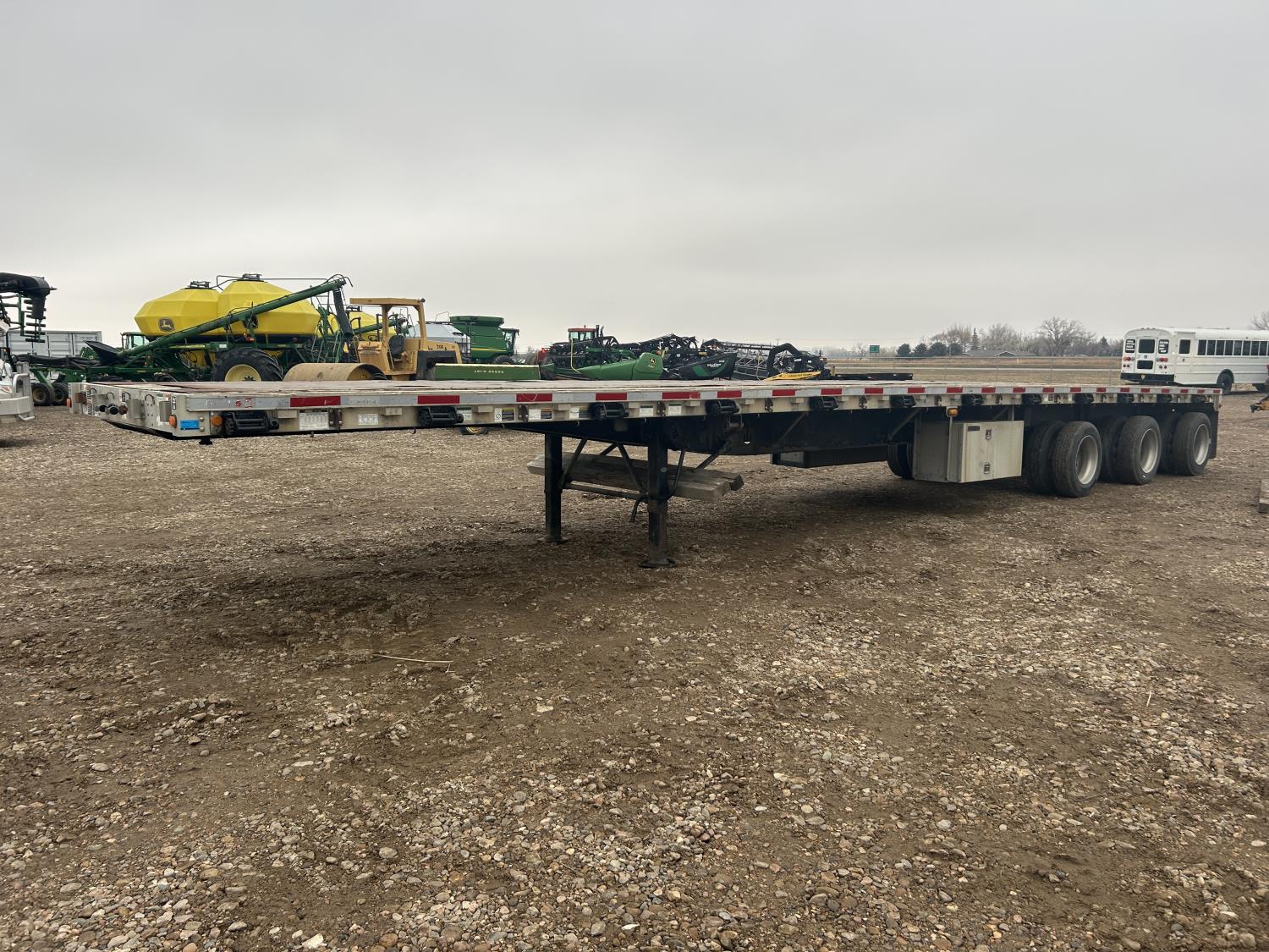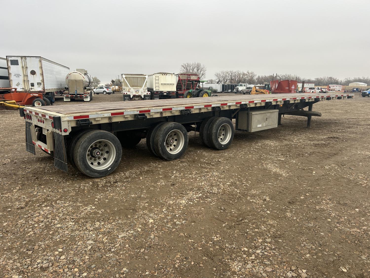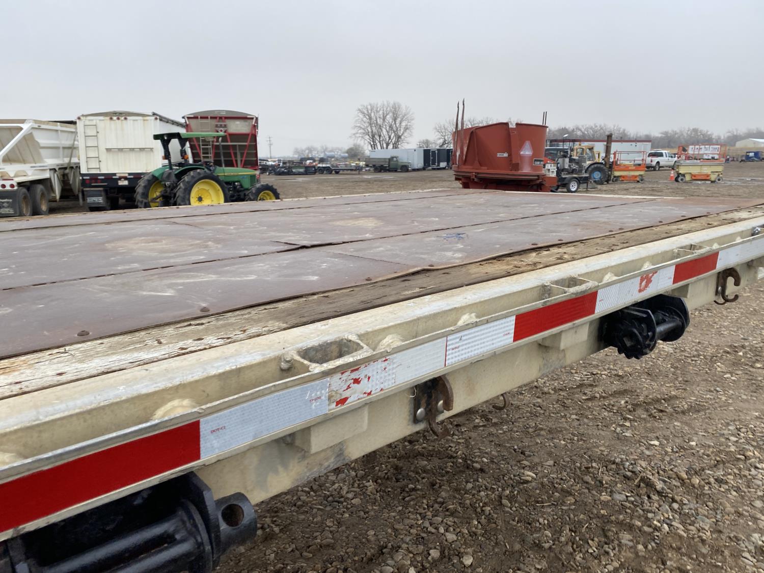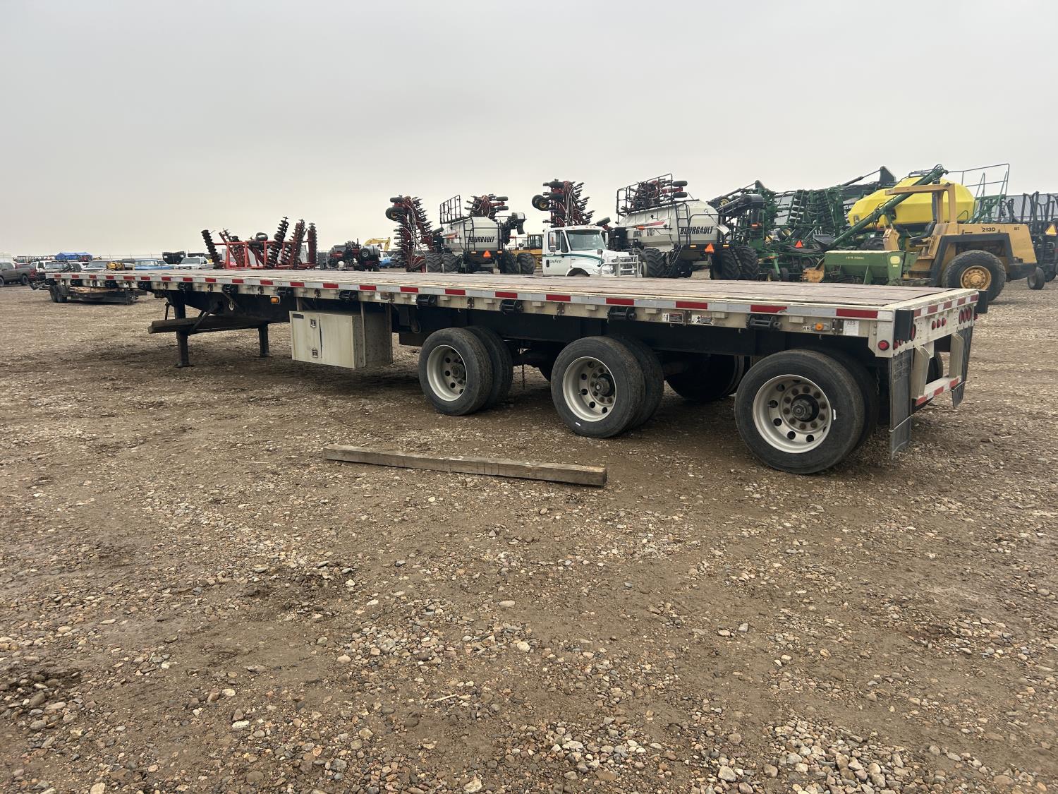 102 inch wide deck, aluminum deck, stake pockets, rub rails, cargo winches, tool / storage box, air brakes, air ride suspension, all aluminum wheels, 255/70R22.5 tires