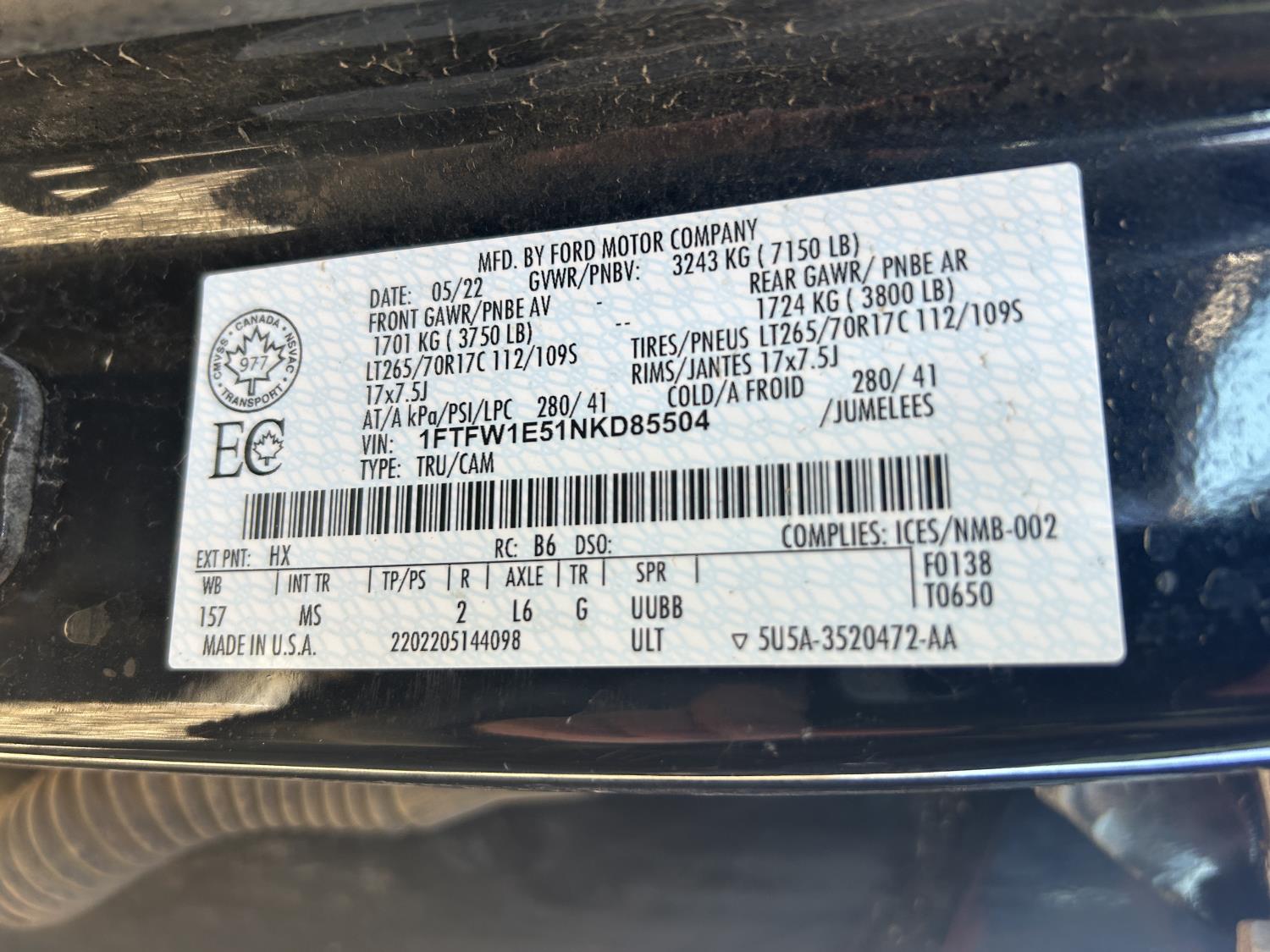 1FTFW1E51NKD85504