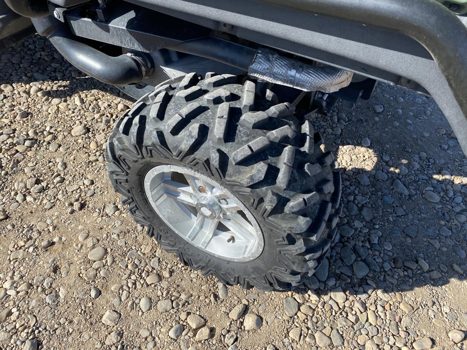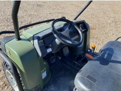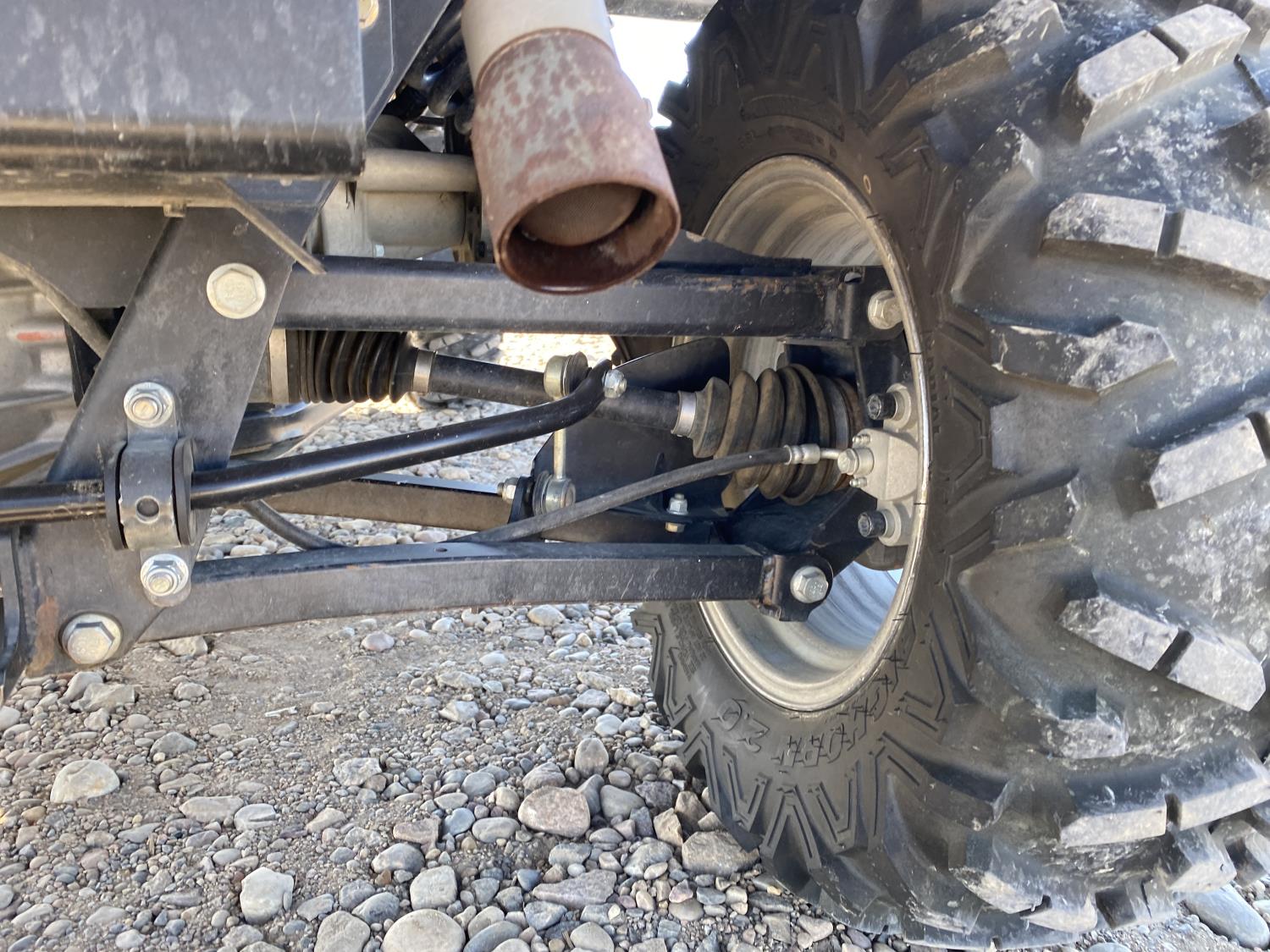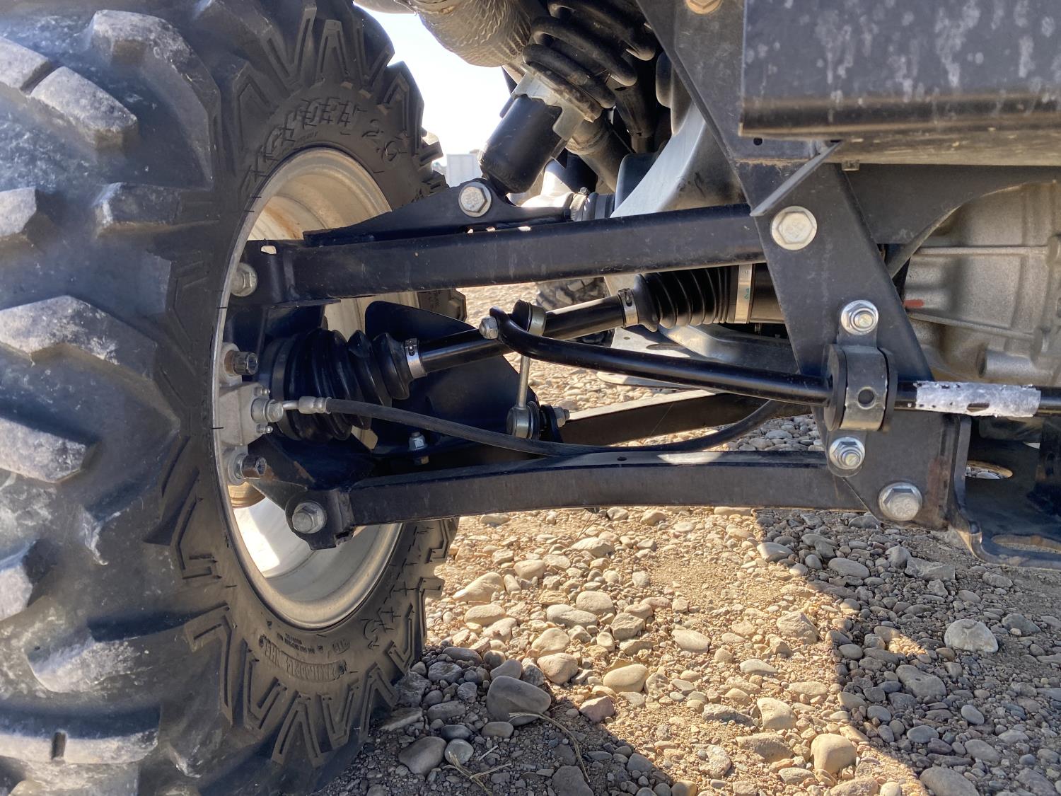 812 cc engine, automatic transmission, Hi/Lo range, reverse, open canopy, 2 passengers, front winch, hydraulic dump box, receiver hitch, independent suspension, 27X9R14 front tires, 27X11R14 rear tires