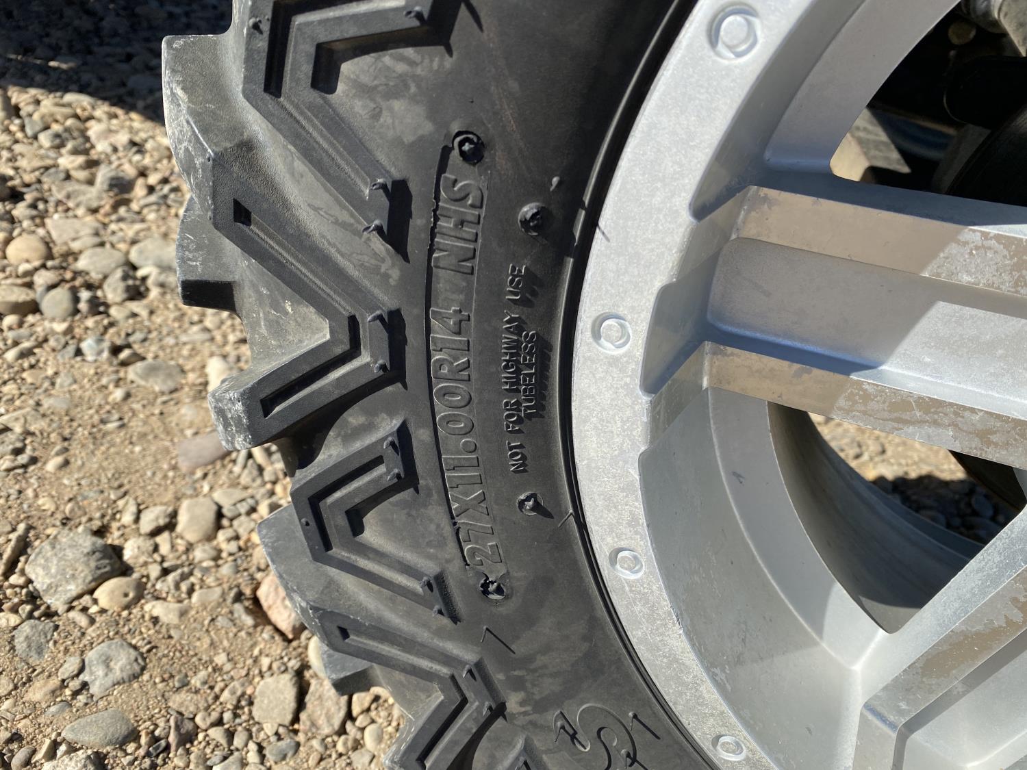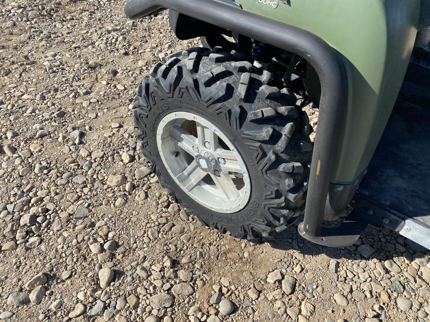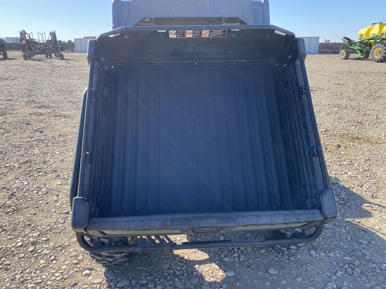 812 cc engine, automatic transmission, Hi/Lo range, reverse, open canopy, 2 passengers, front winch, hydraulic dump box, receiver hitch, independent suspension, 27X9R14 front tires, 27X11R14 rear tires