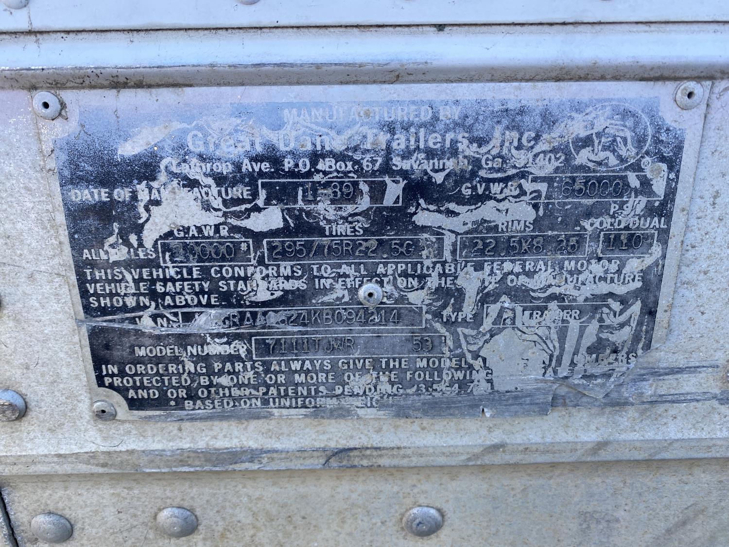 272 1989 Great Dane 7111TJWR 53 Ft T/A Reefer Van Trailer