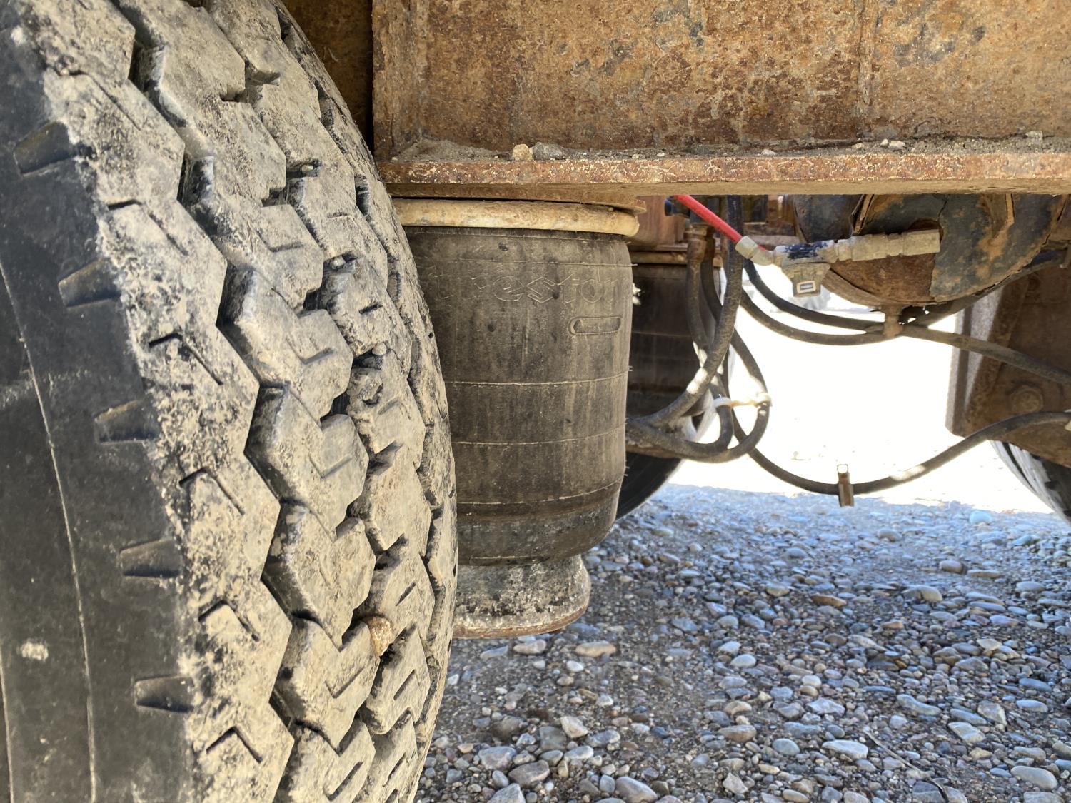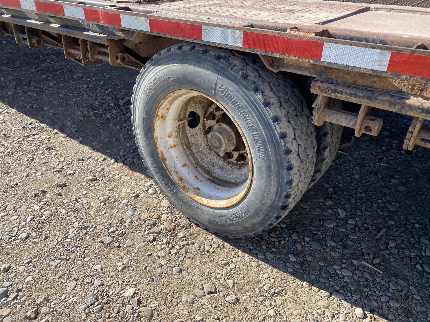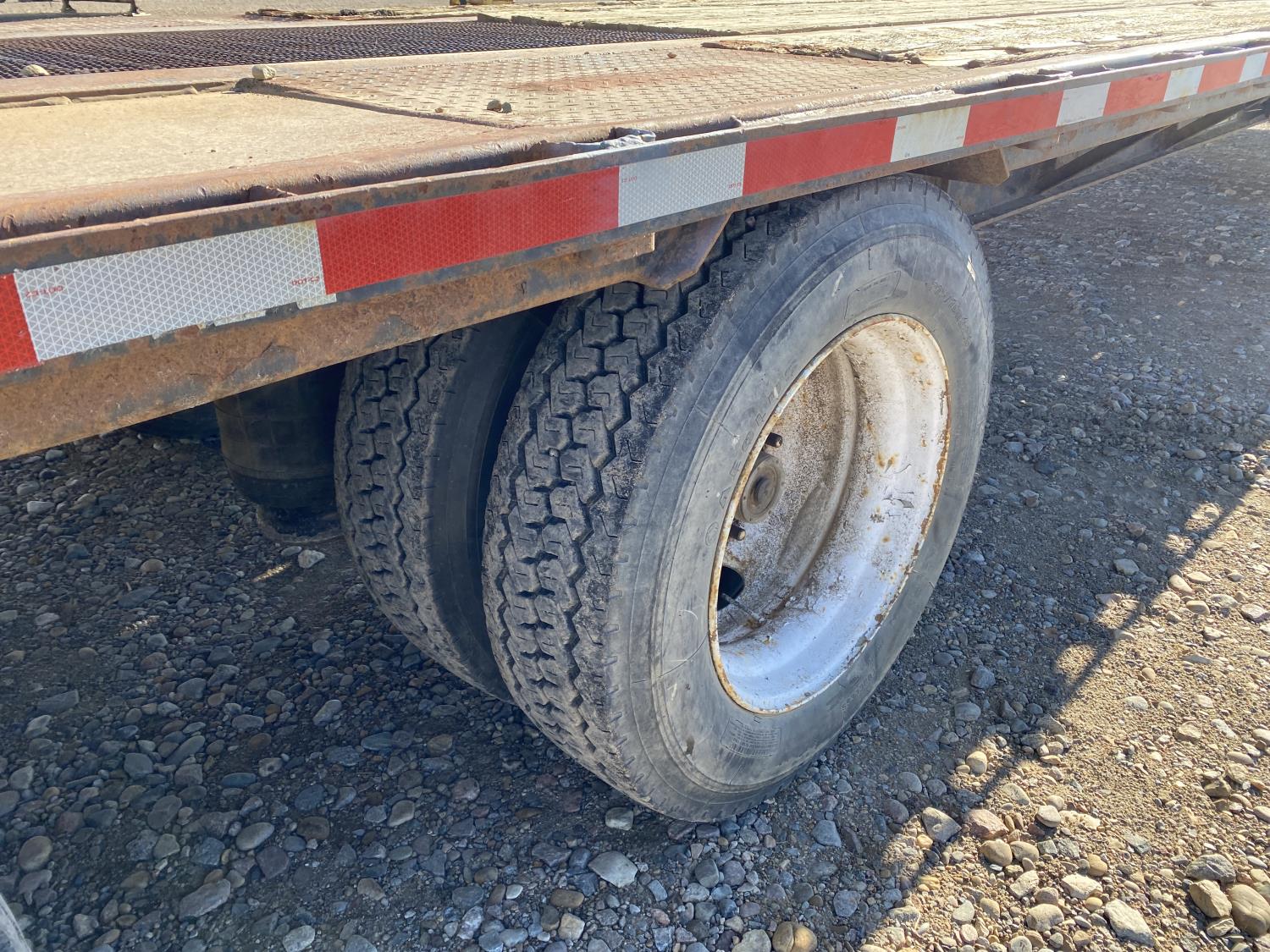 102 inch wide deck, 132 inch upper deck, wood deck, stake pockets, rub rails, cargo winches, air brakes, air ride suspension, 275/70R22.5 tires