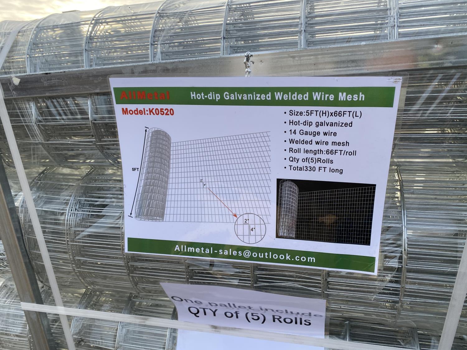 467 Qty of (5) KJ K0520 60 Inch X 66 Ft Hot-Dip Galvanized Welded Wire Mesh Rolls (Unused)