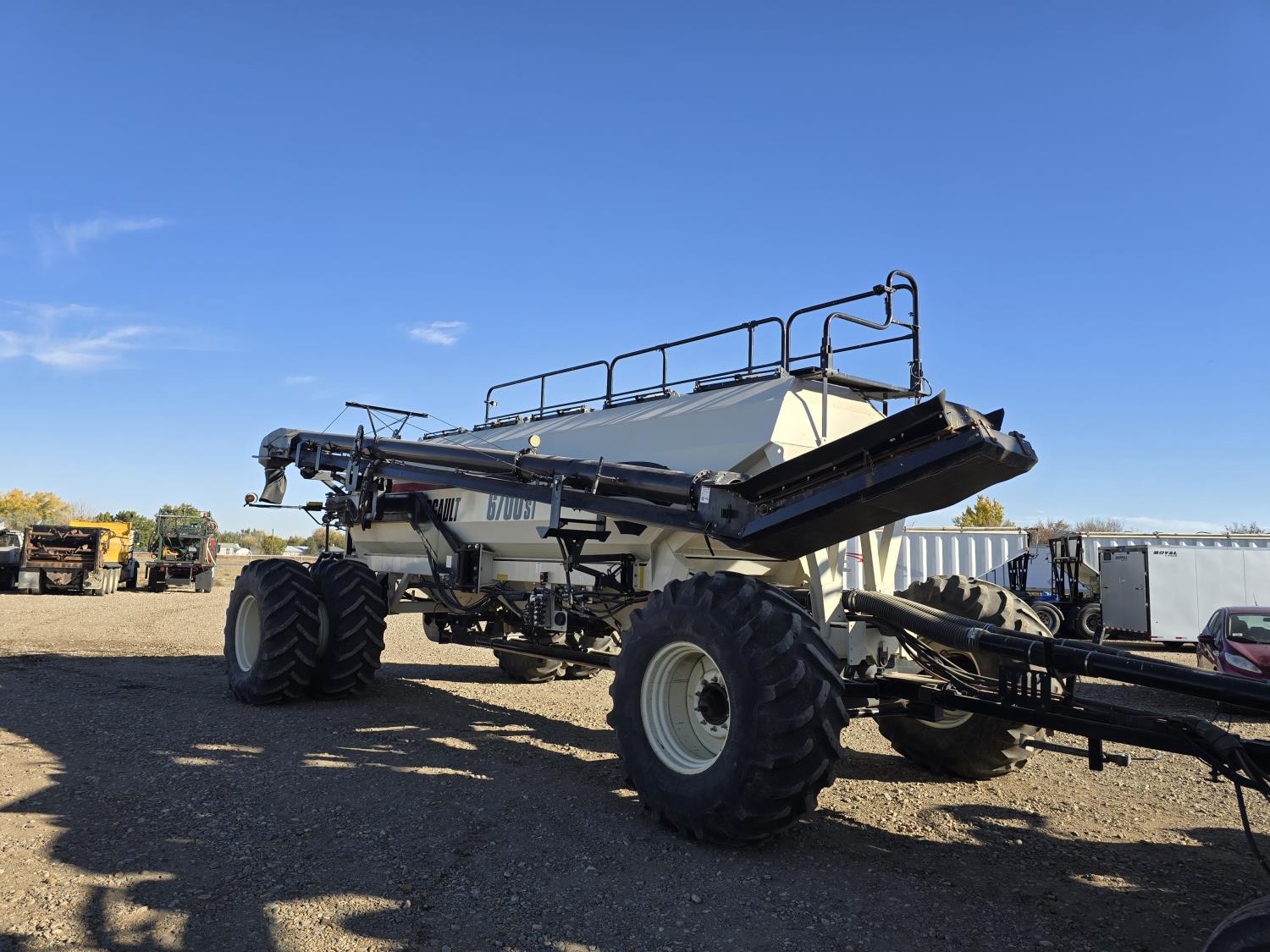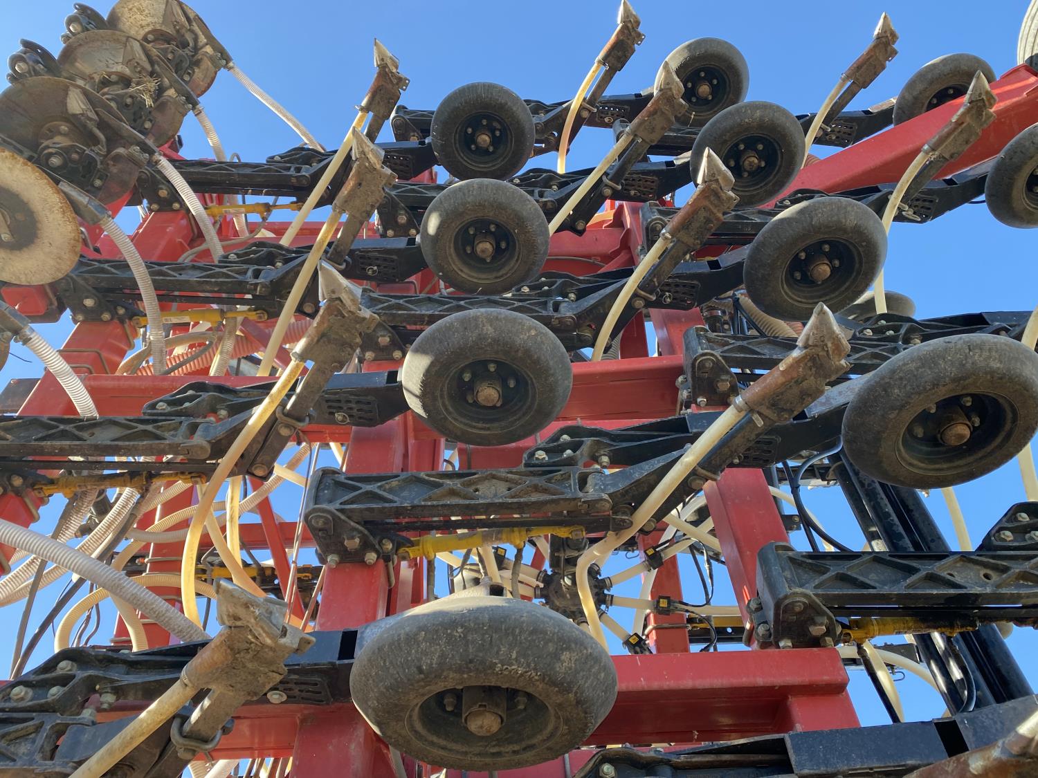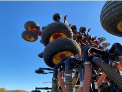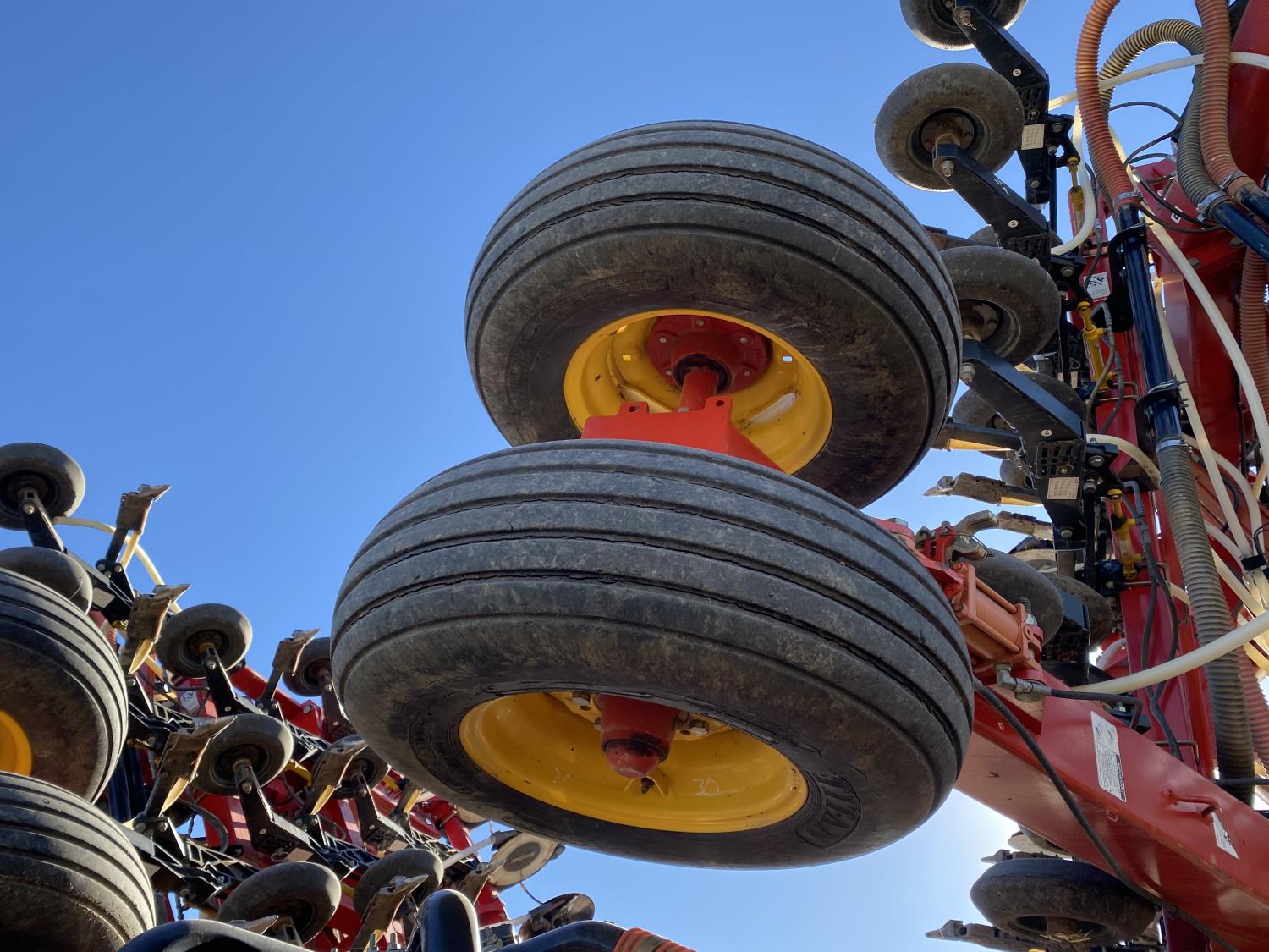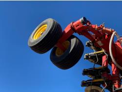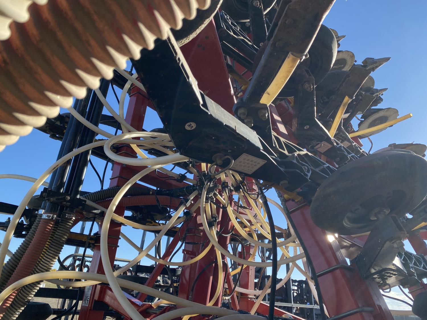 seed monitor, 10 inch spacing, double shoot, single row openers, mid row banding, 4 inch rubber packers, seed monitor, blockage sensors , Air Cart: 4 compartments, 15 inch loading conveyor, double fan, variable rate metering, 4 tank cameras, bag lift, TNK 1 : 370 bushel, TNK 2 : 95 bushel, TNK 3 : 30 bushel, TNK 4 : 205 bushel , 30.5L-32 front tires, dual 650/75R34 rear tires
