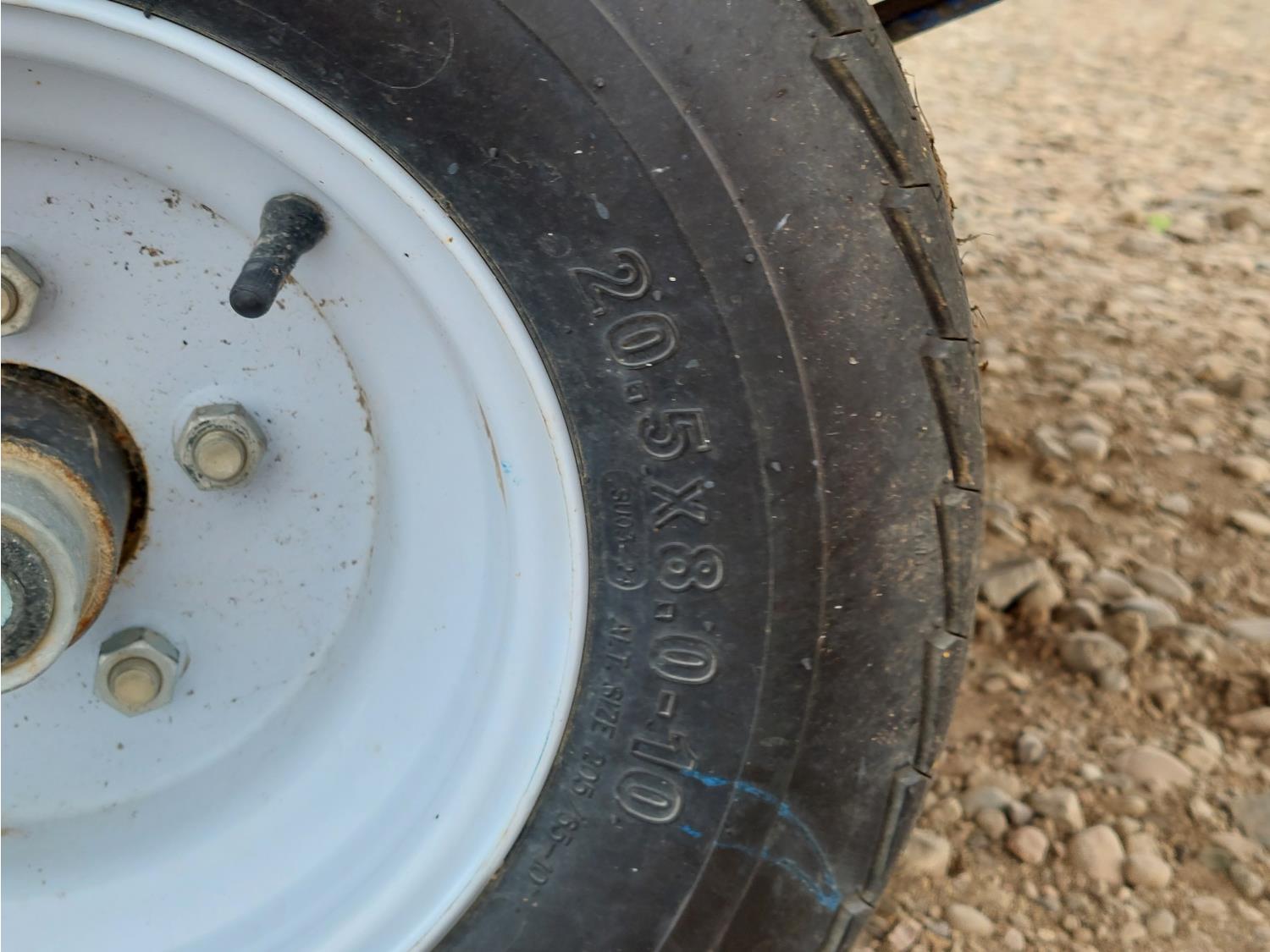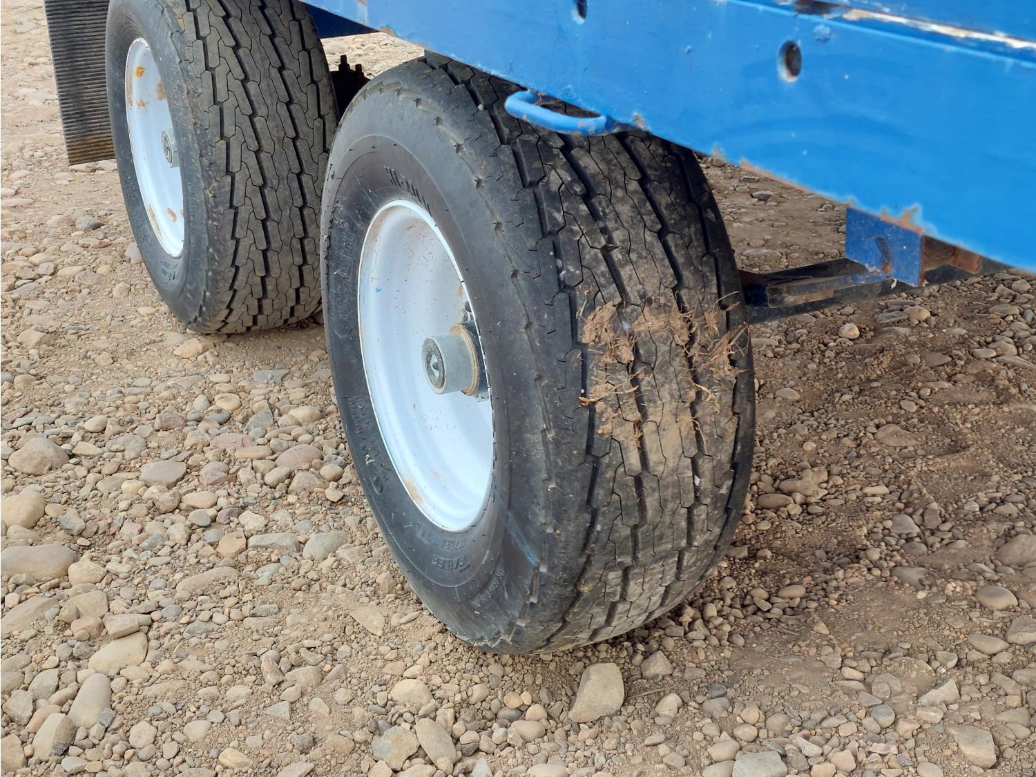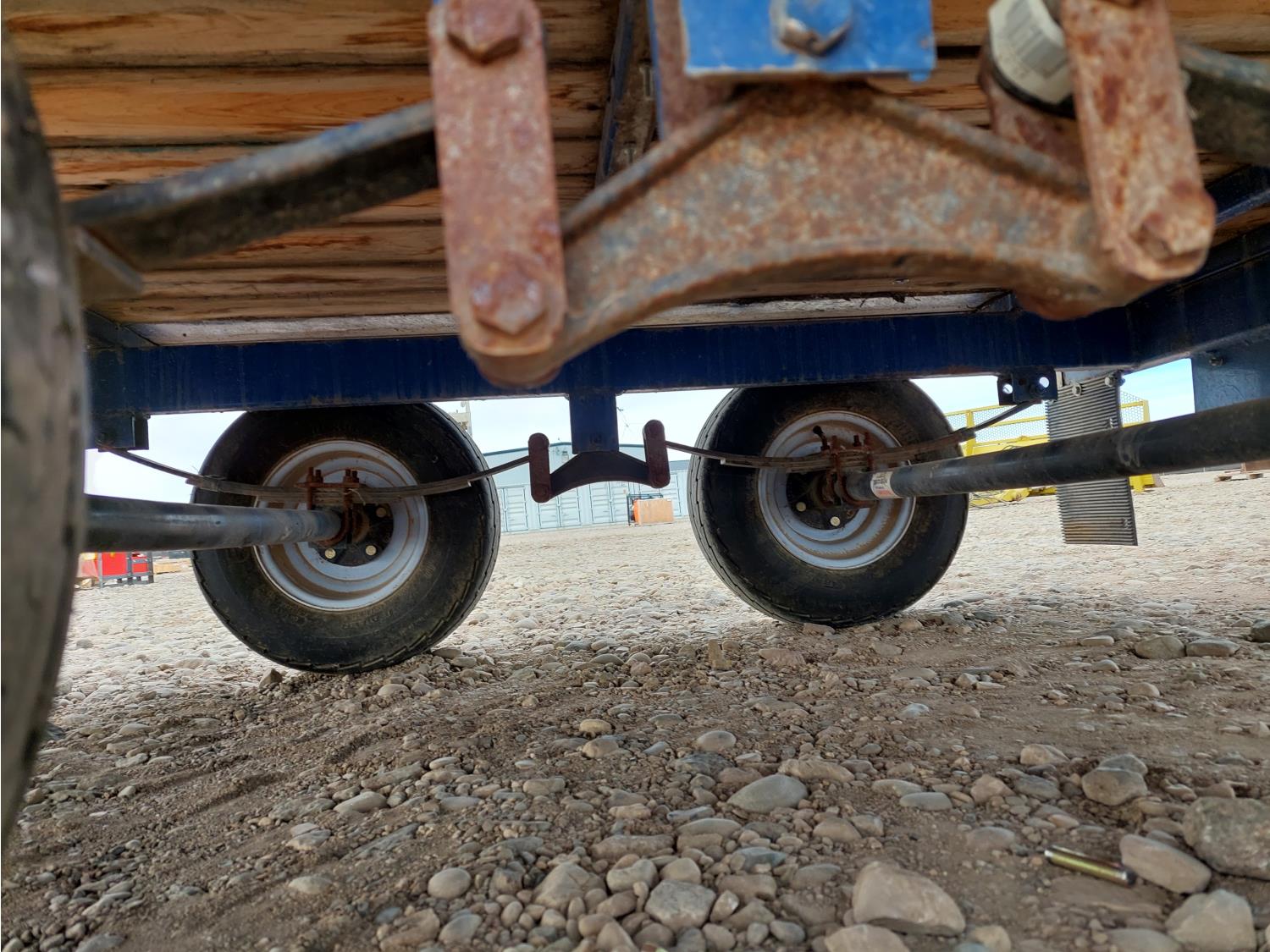 104 inch L x 65.5 inch W x 20 inch T box, spring suspension, pin hitch, 20.5x8.0-10 tires