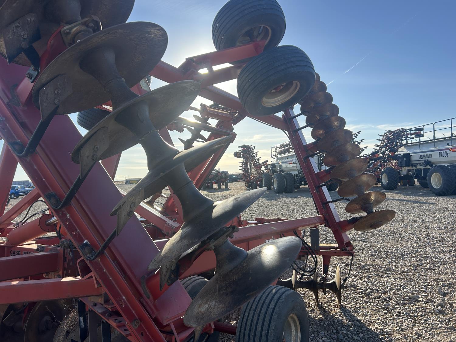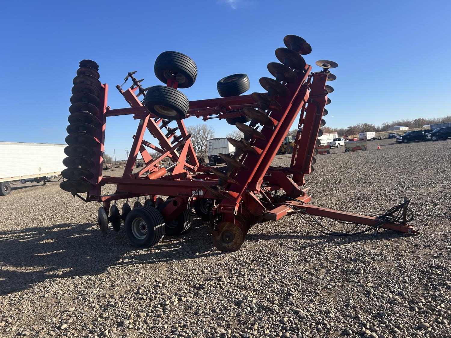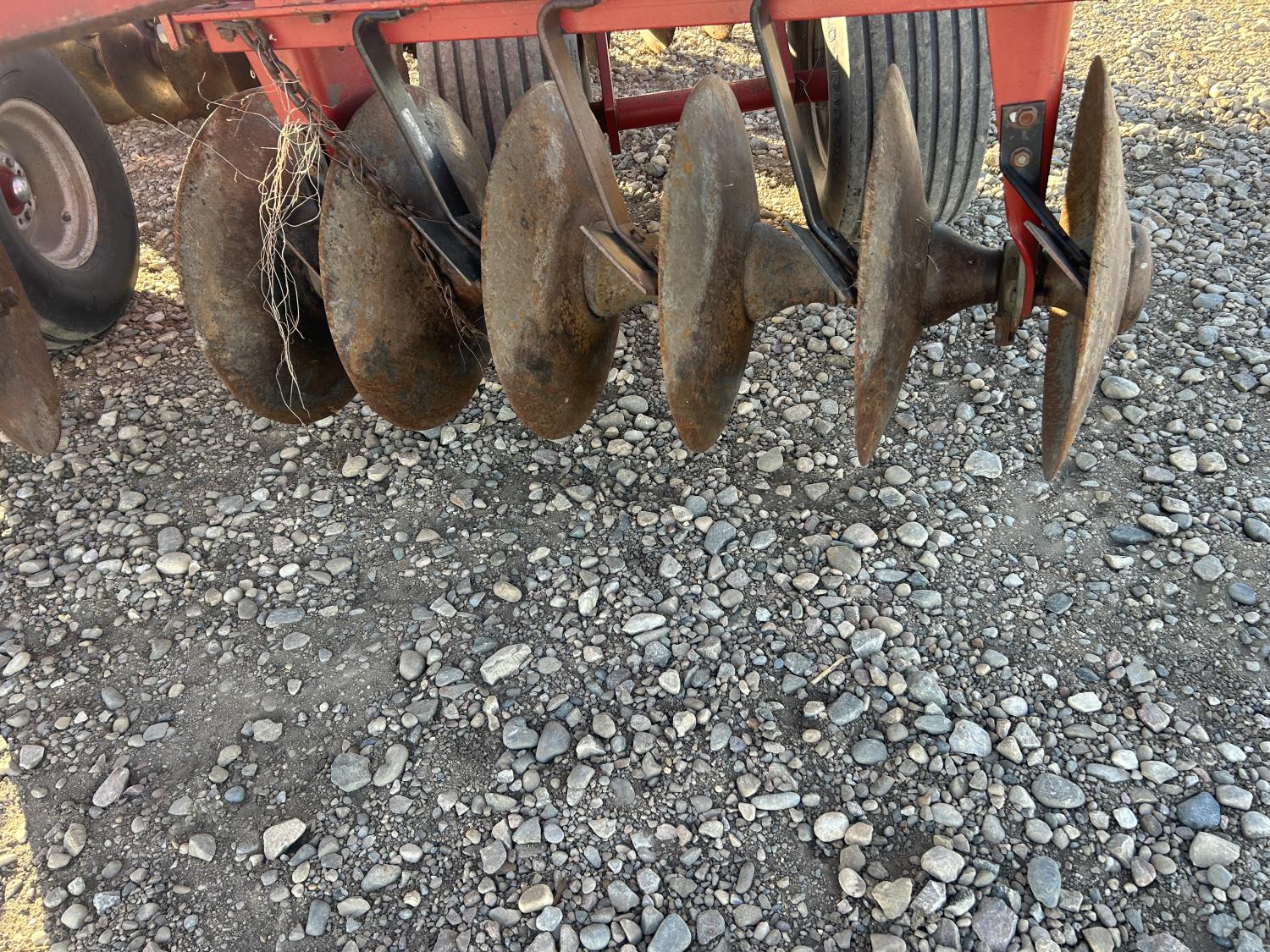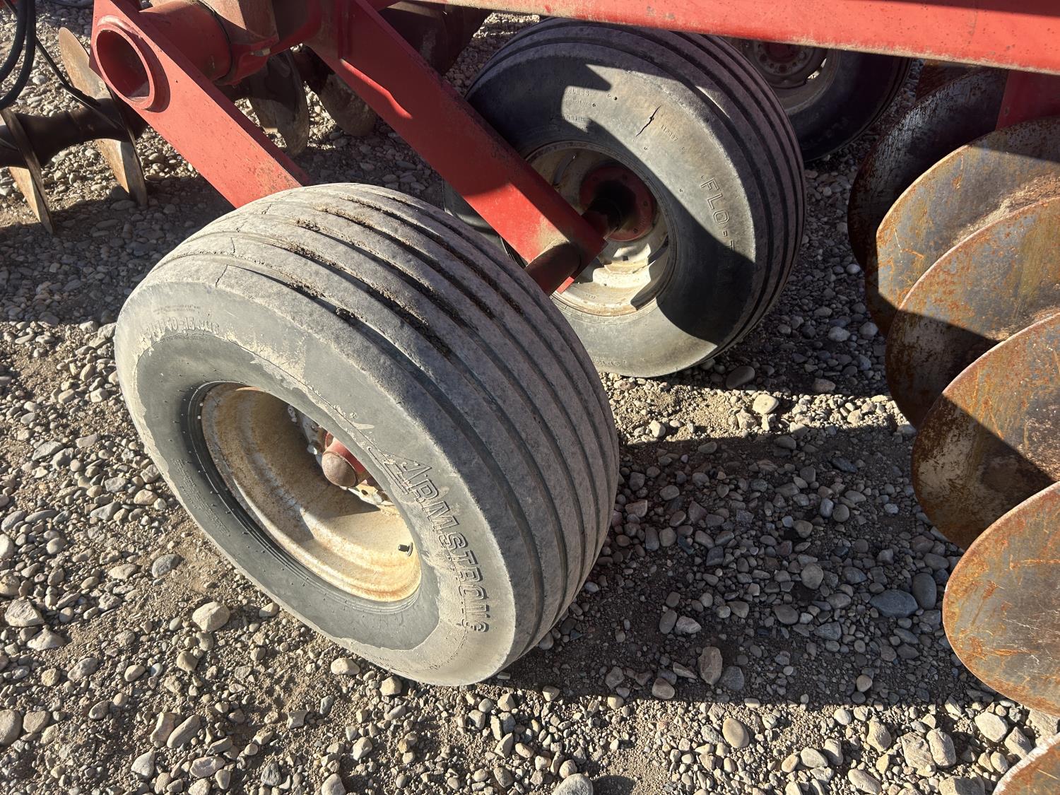 front: 10 inch spacing smooth 22 inch discs, rear: 10 inch spacing smooth 22 inch discs, duals main frame and wings, 31X13.50-15NHS tires