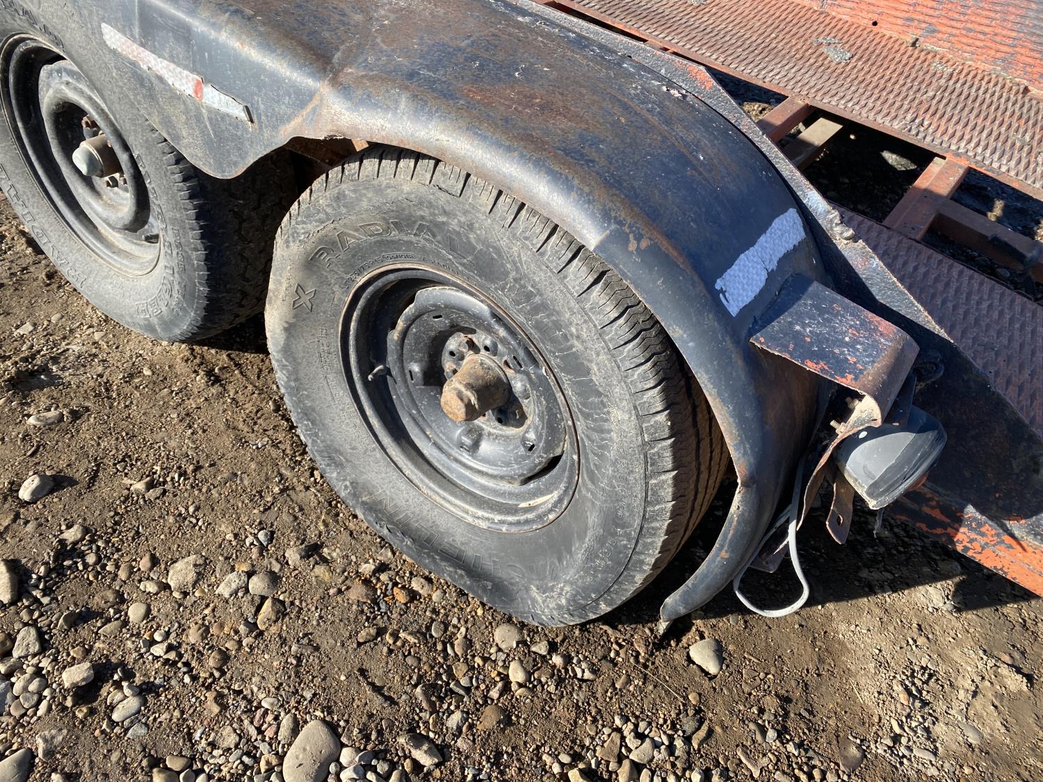 67 inch wide deck, steel deck, flip over ramps, spring suspension, 235/75R15 tires