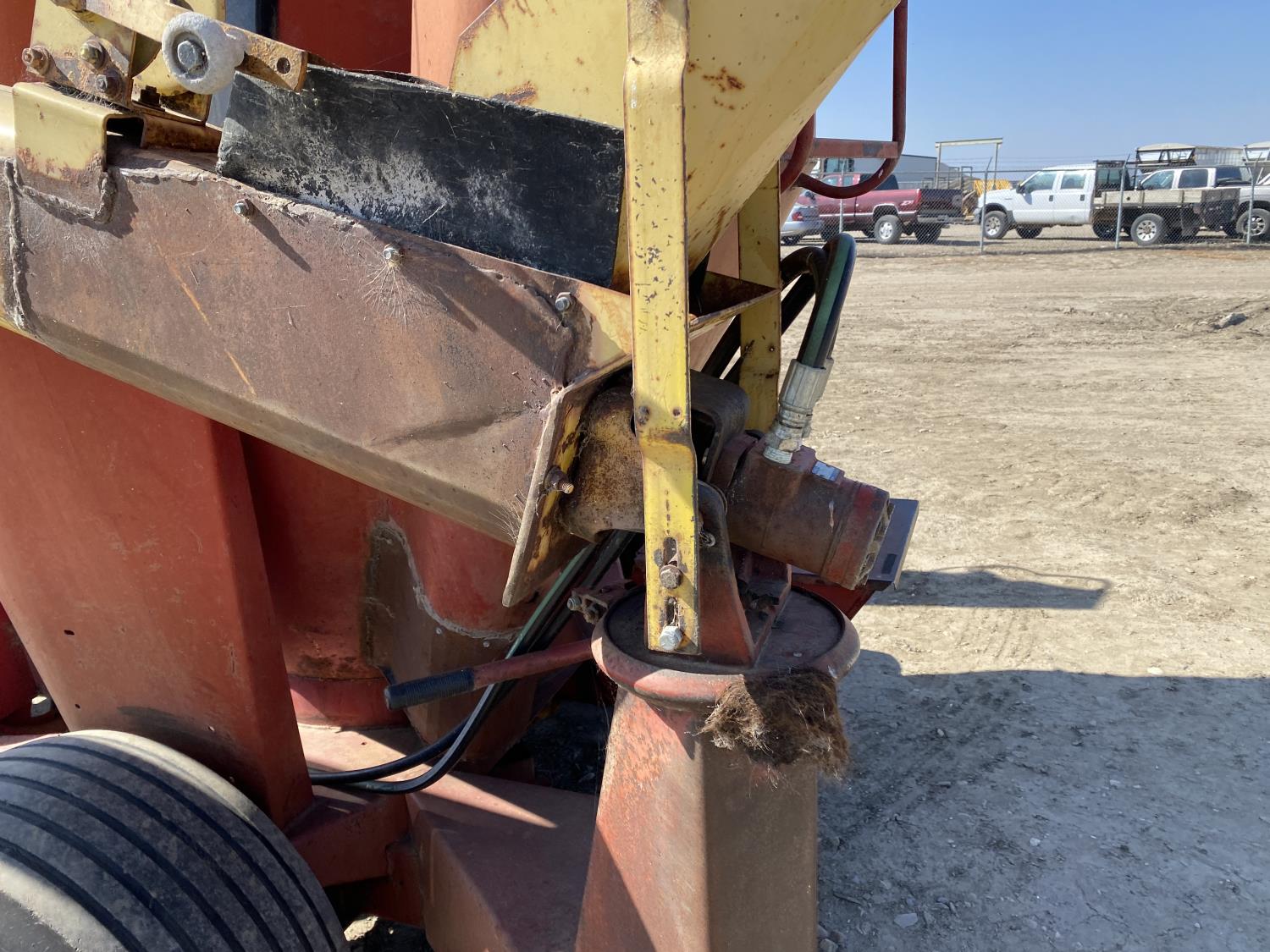 540 PTO, 24 inch hammermill, belt drive intake auger, hydraulic drive discharge auger, power bale feeder, supplement hopper, sight glasses, extra screens, 17 foot x 8 inch discharge auger, 31X13.5-15 tires