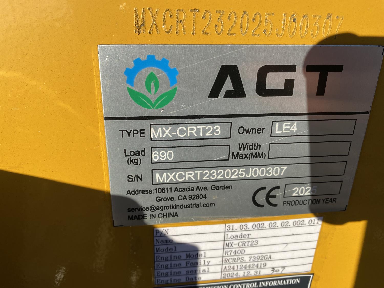 336 2025 AGT MX-CRT23 Mini Stand On Tracked Skid Steer (Unused)