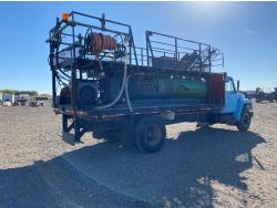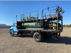 International V8 gas engine, 5x2 manual transmission, 18 ft 3 inch x 8 ft 2 inch deck, 4500 liter steel tank, Monarch 205GP pump, 4 cylinder gas engine, upper deck controls, spring suspension, 188 inch WB, 11R22.5 tires
