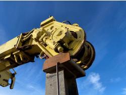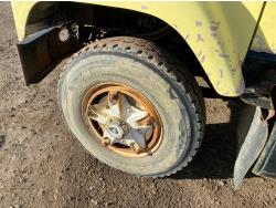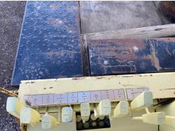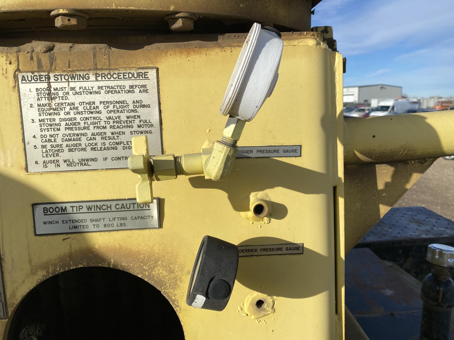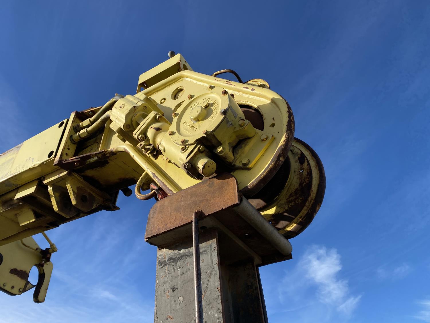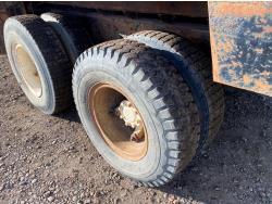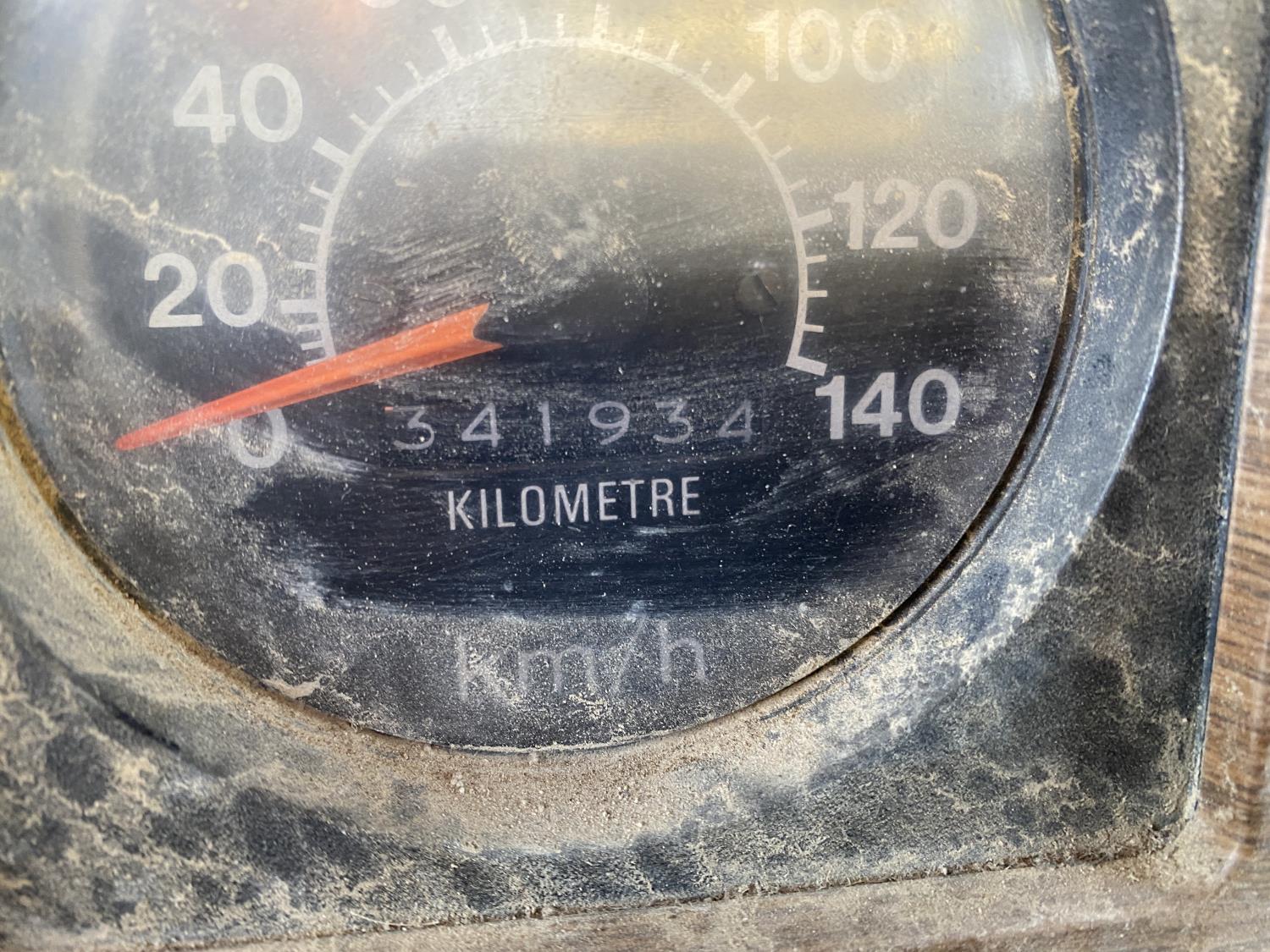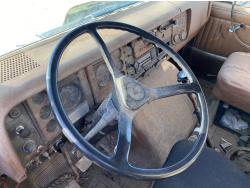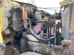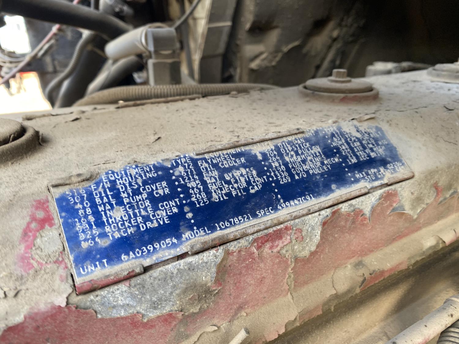 Detroit 6-71 6.9 L 6 cylinder engine, Eaton Fuller RTO-9513 13 speed manual transmission, 8 ft x 14 ft 3 inch deck, PTO pump, Pitman PC750 3 section 15 ft straight boom crane, outriggers, spring suspension, diff lock, 216 inch WB, 10-20 tires