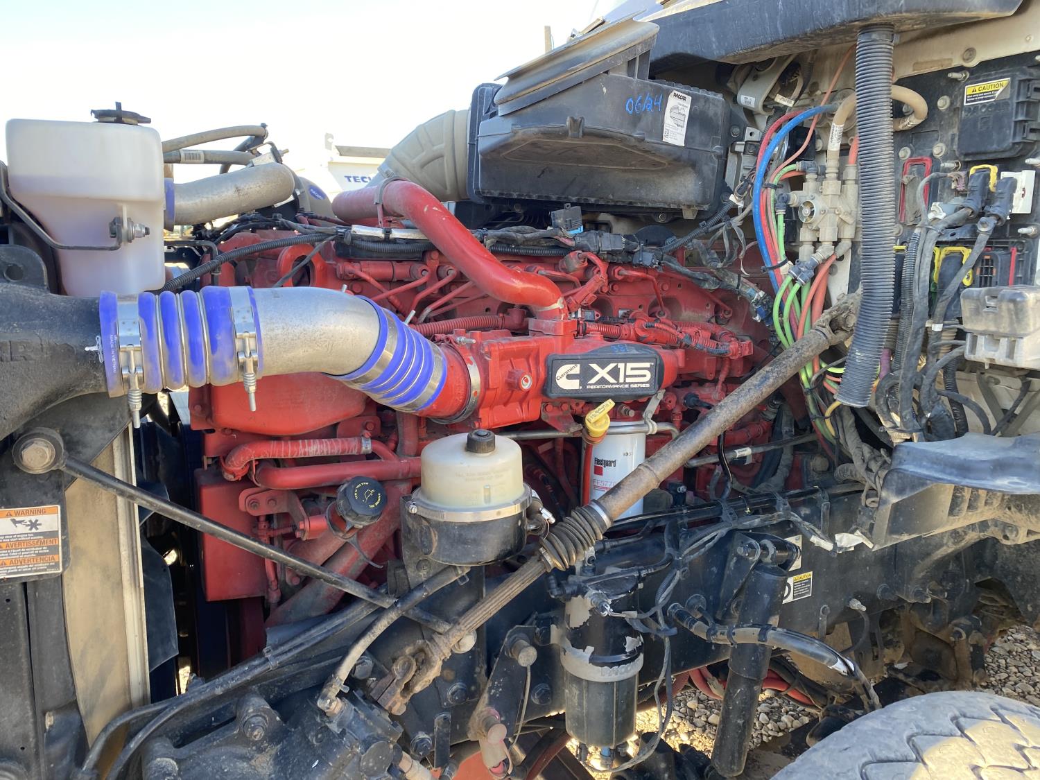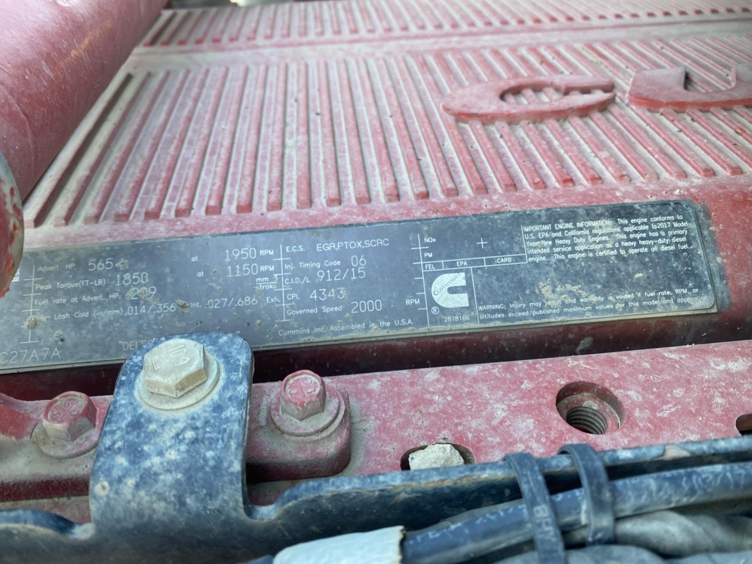 Cummins X15 15.0 L 6 cylinder 565 HP engine, engine brake, engine block heater, Eaton Fuller F018E318B-MXP automatic transmission, A/C, cruise control, air ride driver seat, 15 ft box, PTO pump, pintle hitch, plumbed for pup, air ride suspension, 16,000 lb front axle, 46,000 lb rear axles, full lockers, 208 inch WB, 385/65R22.5 front tires, 11R22.5 rear tires