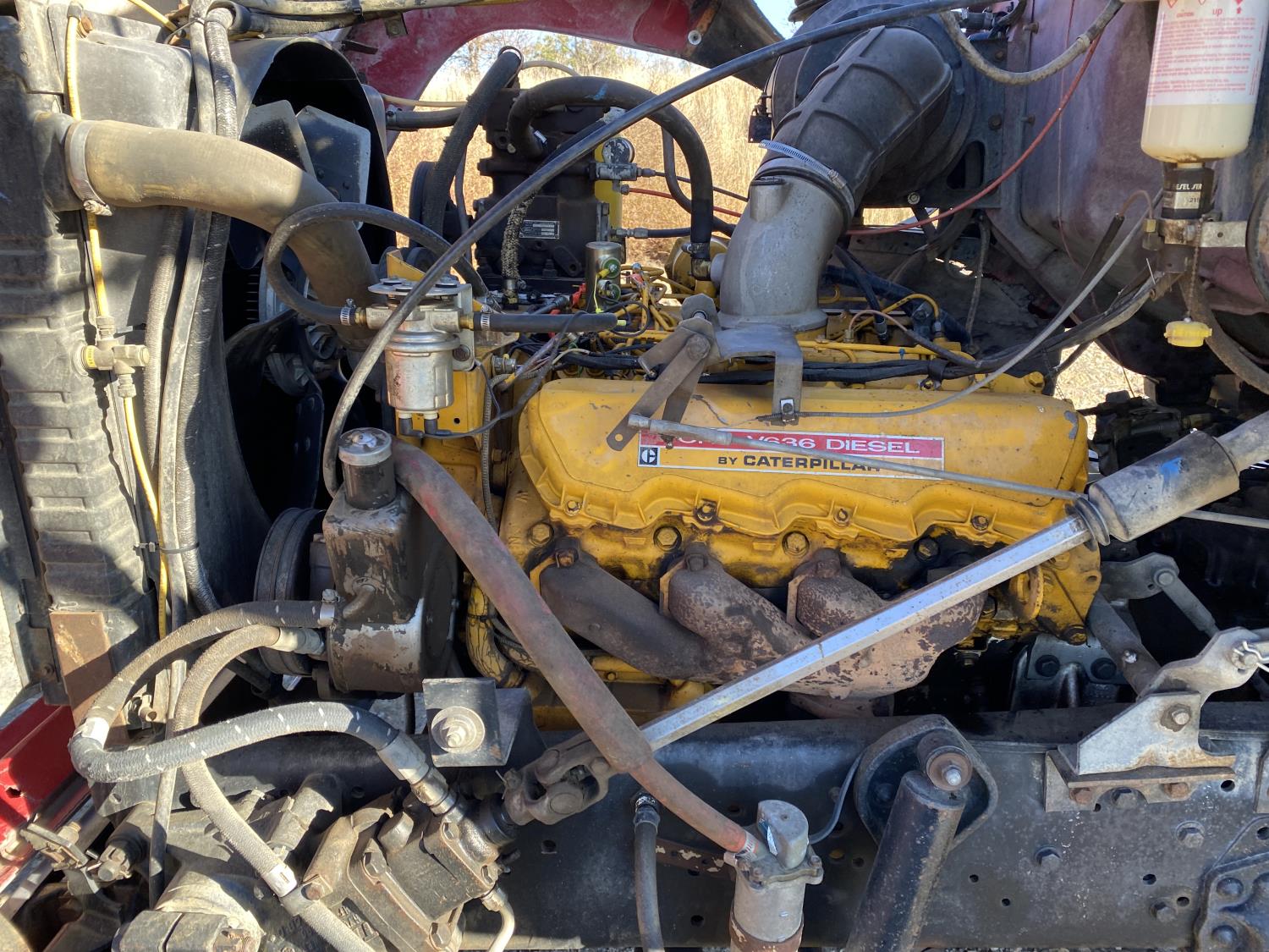 Caterpillar V636 V8 210 HP diesel engine, 5&4 manual transmission, A/C, 18 ft box, hoist, PTO pump, spring suspension, 204 inch WB, 10-20 tires
