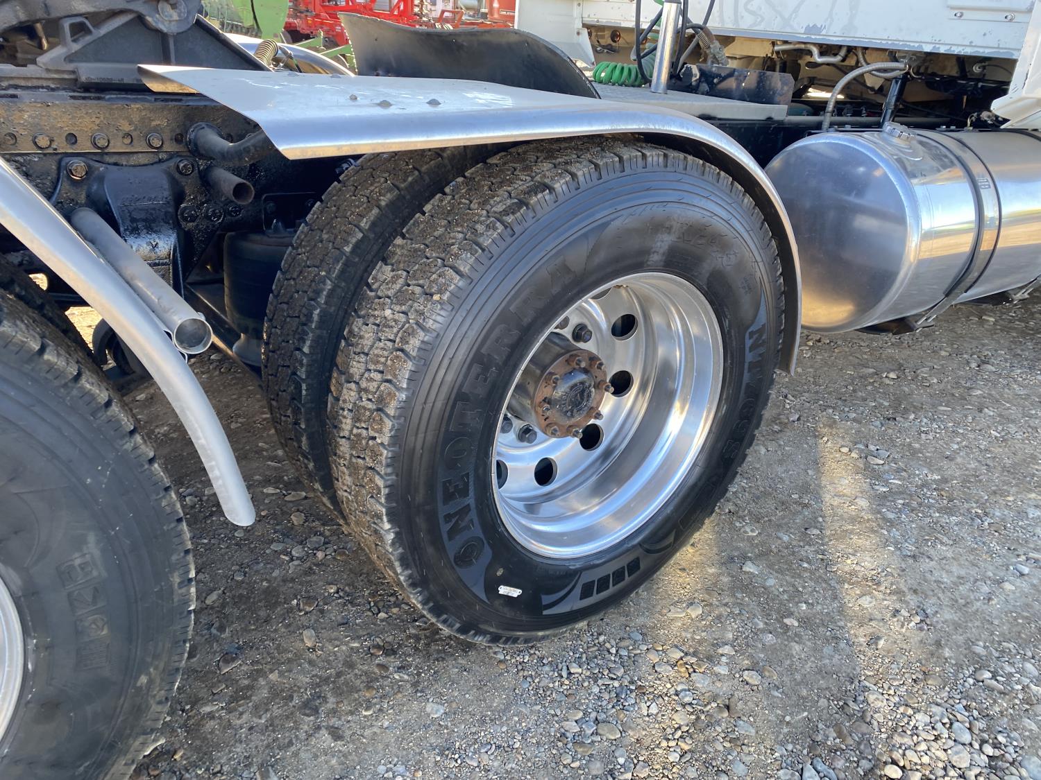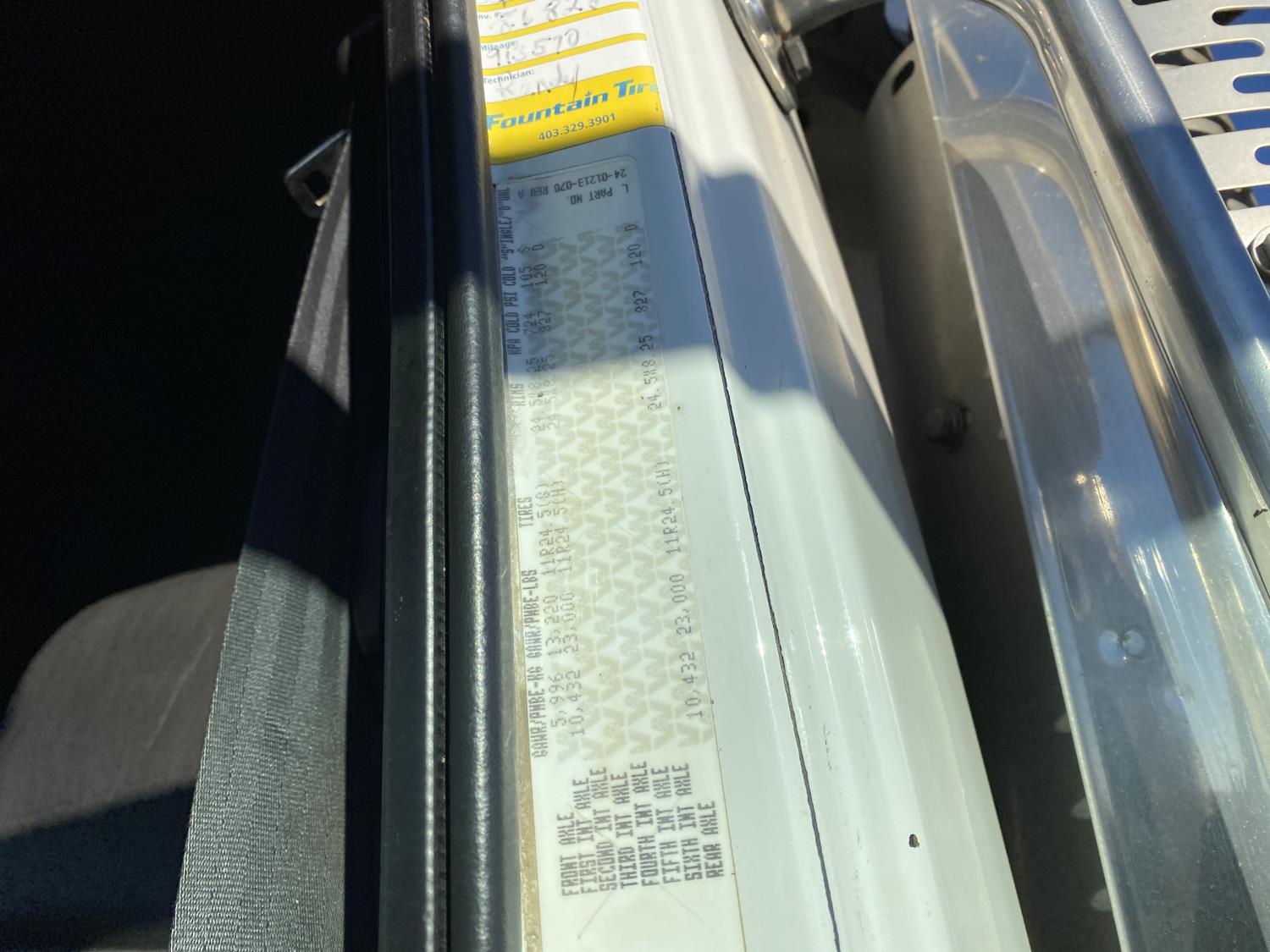 Detroit DD15 14.8 L 6 cylinder 560 HP engine, Webasto engine heater, Eaton Fuller 18 speed manual transmission, mid rise 48 inch sleeper, A/C, cruise control, leather interior, air ride driver seat, CB radio, air ride cab, Airliner air ride suspension, 13,220 lb front axle, 46,000 lb rear axles, full lockers, 3.91 ratio, 234 inch WB, all aluminum wheels, 11R24.5 tires