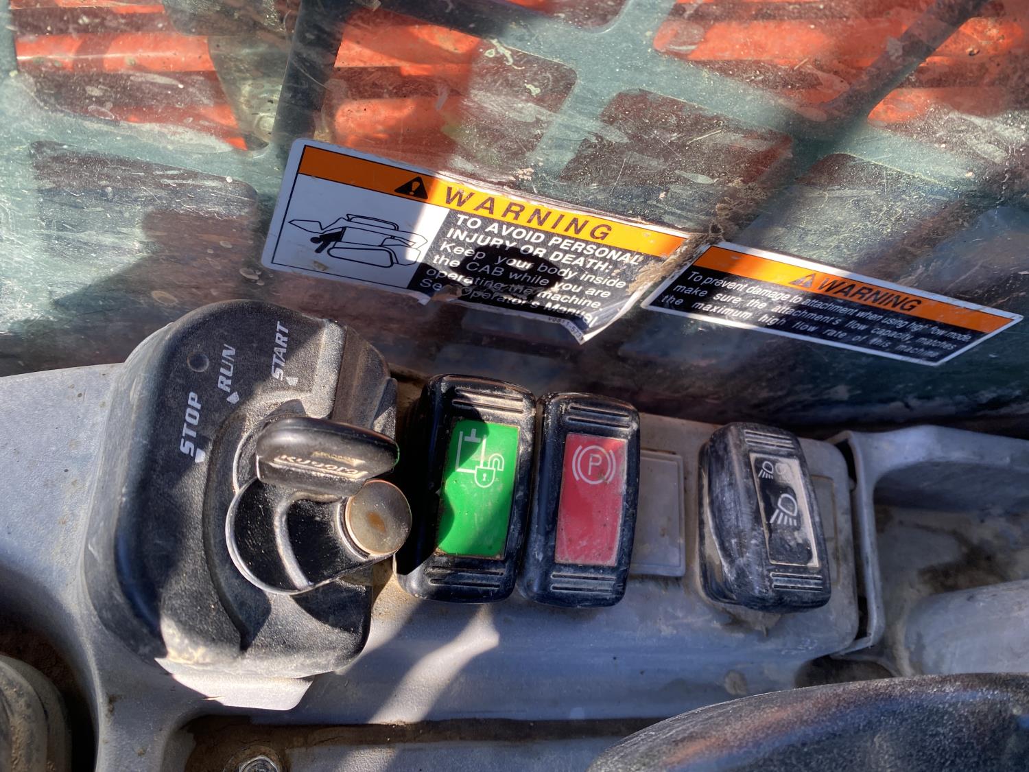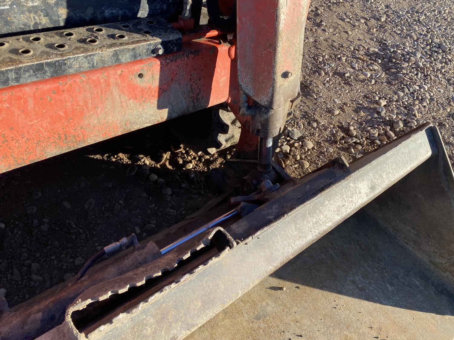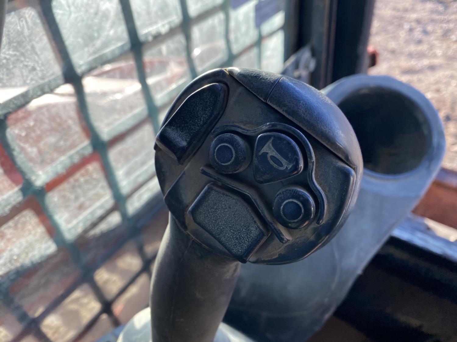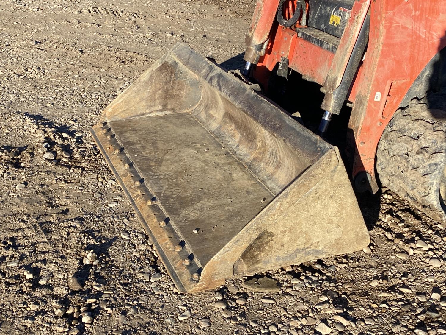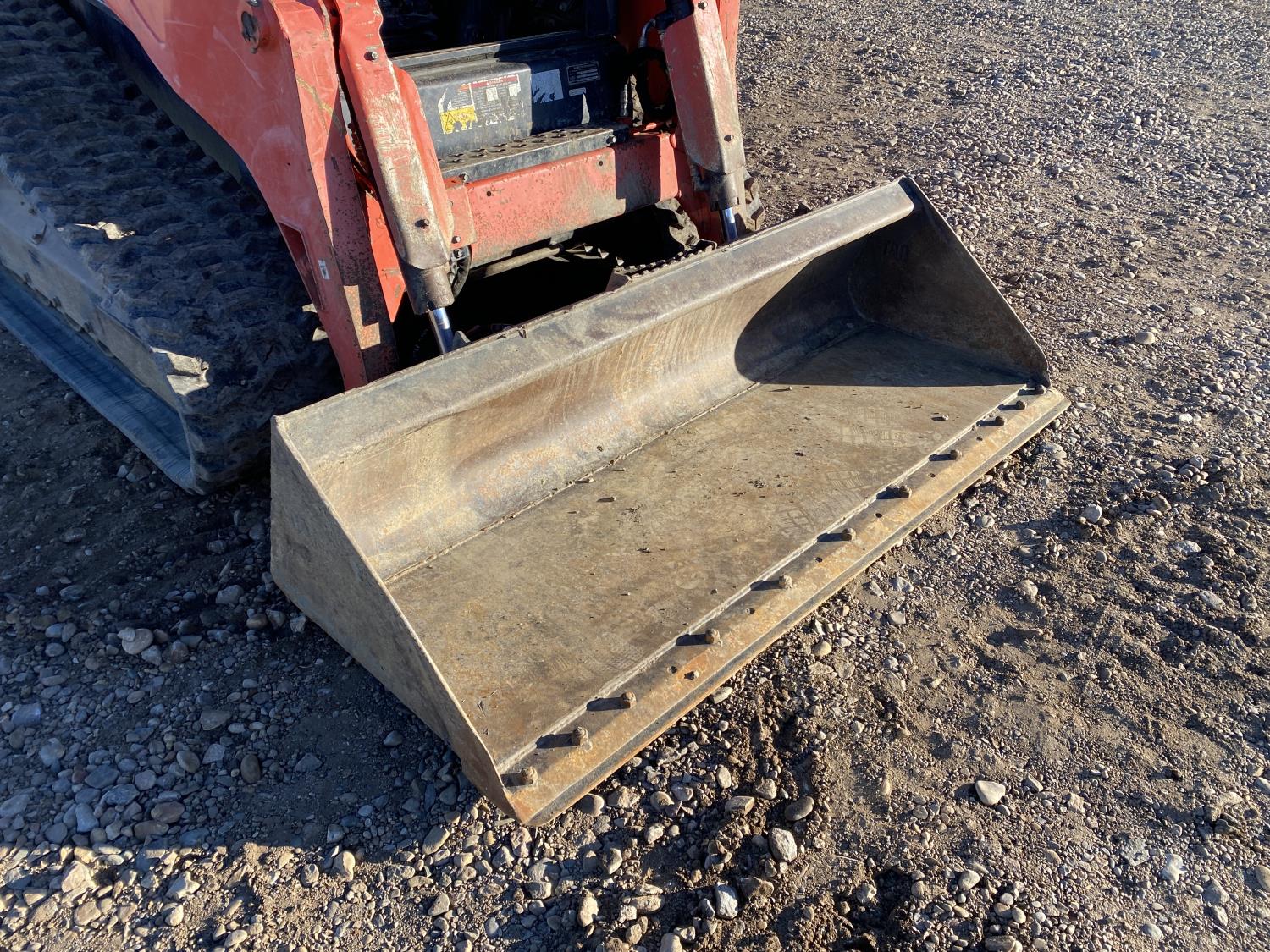 Enclosed cab, A/C, pilot controls, diesel engine, electric circulating block heater, 2 speed transmission, cab screens, emissions deleted, 79 inch smooth bucket, hydraulic Q/C coupler, auxiliary hydraulics, 17 inch rubber tracks