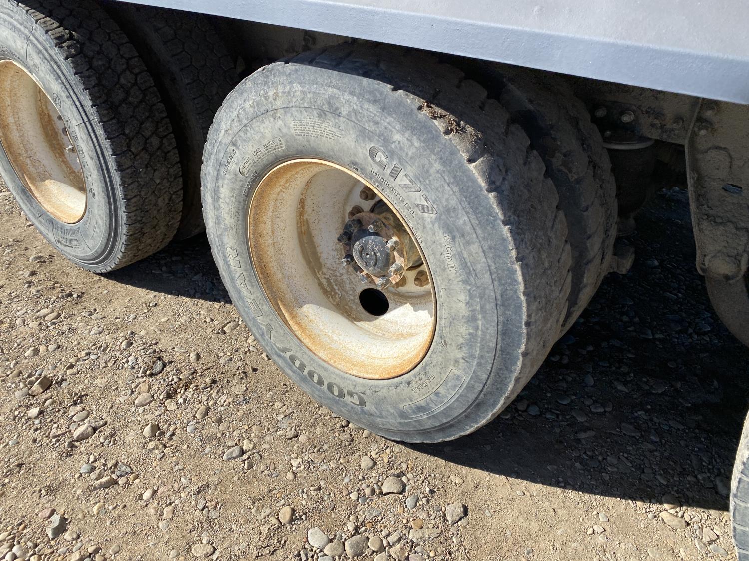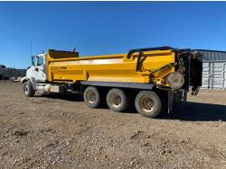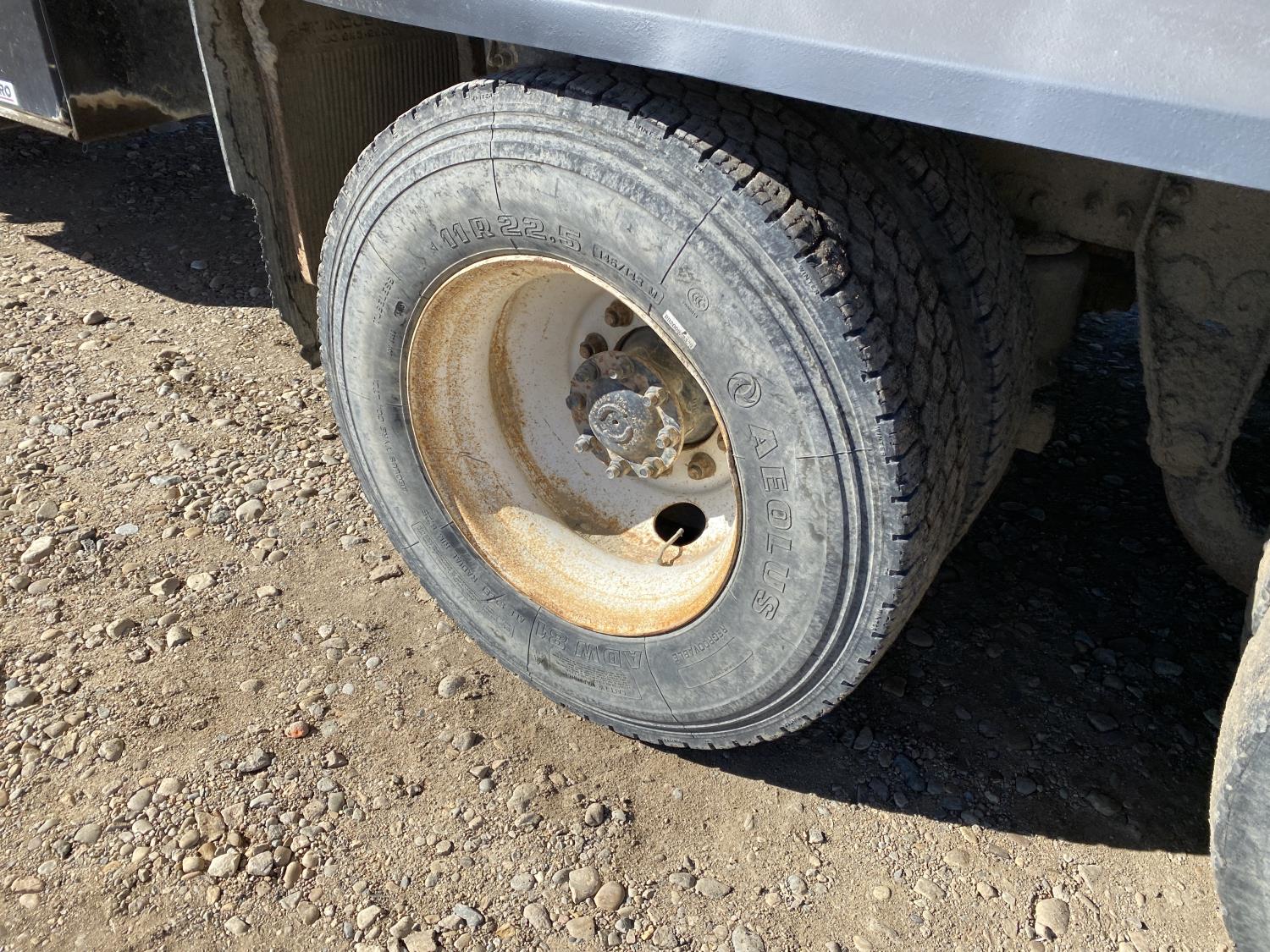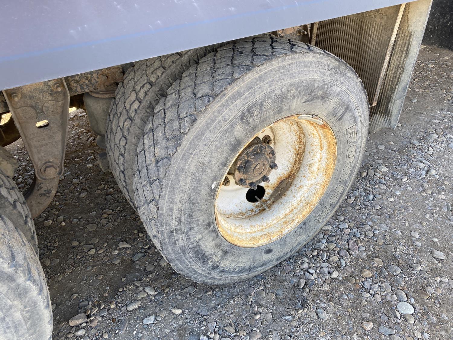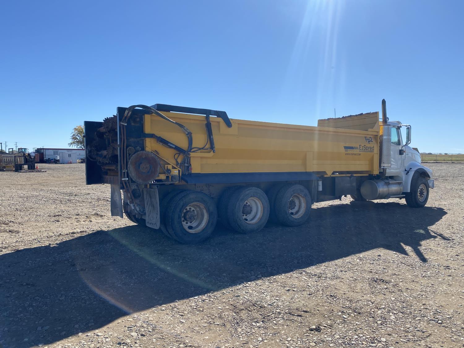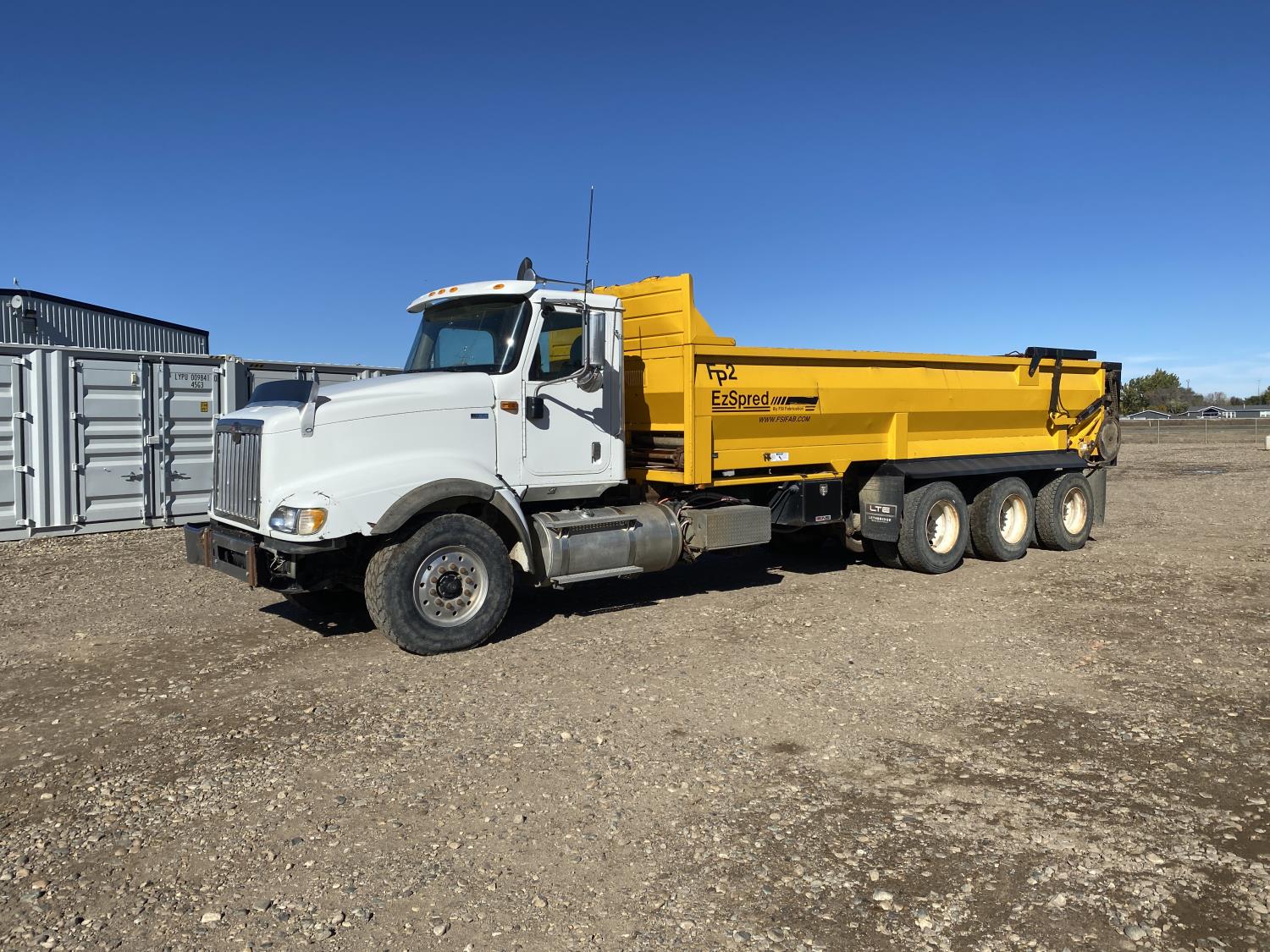 MaxForce A430 12.4 L 6 cylinder 430 HP engine, Eaton Fuller 9LL speed manual transmission, engine brake, engine block heater, A/C, cruise control, air ride driver seat, FSI EZ Spread 23 ft L box, 82 inch W x 48 inch T side walls, steel floor, double floor chain unload, double horizontal beaters, PTO pump, air ride suspension, 16,000 lb front axle, 53,000 lb rear axles, full lockers, 288 inch WB, aluminum front wheels, 385/65R22.5 front tires, 11R22.5 rear tires