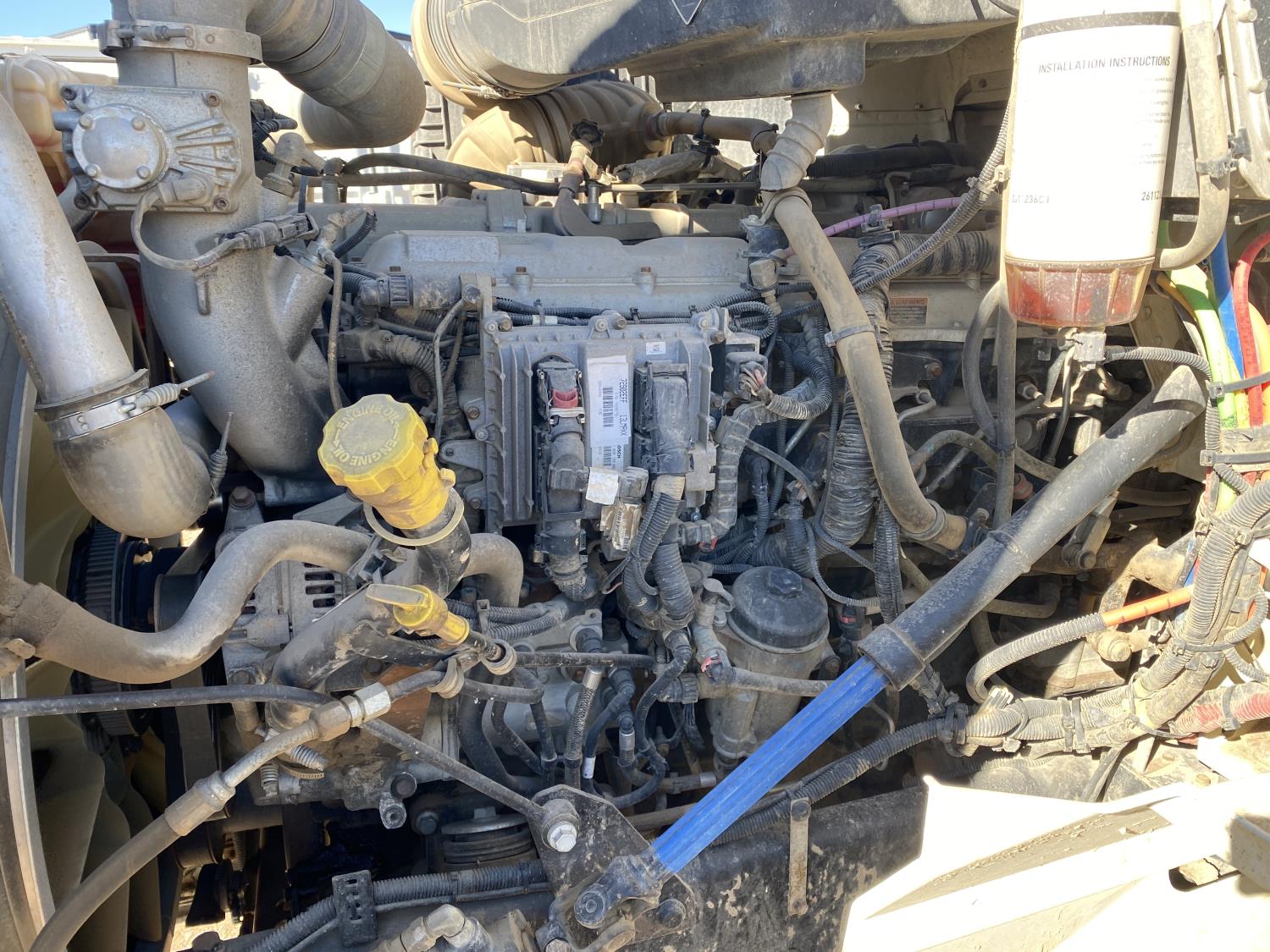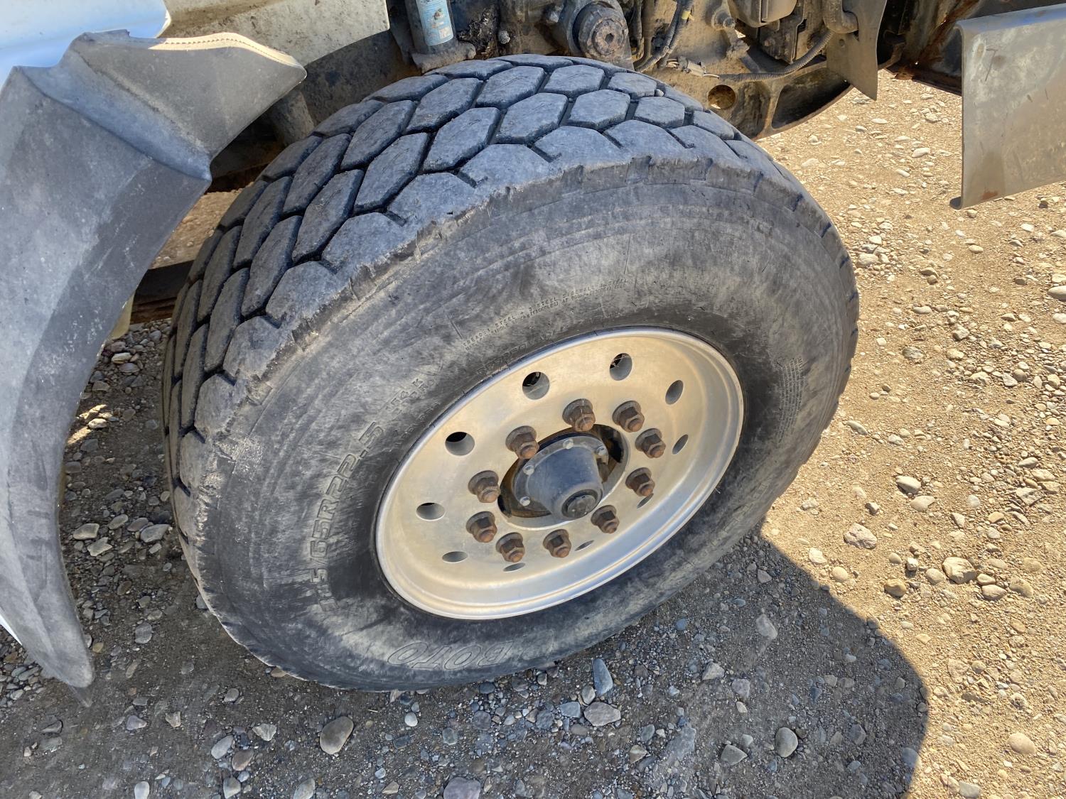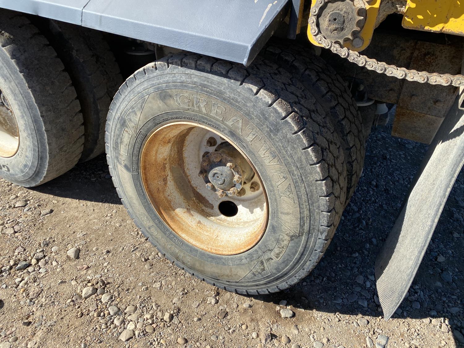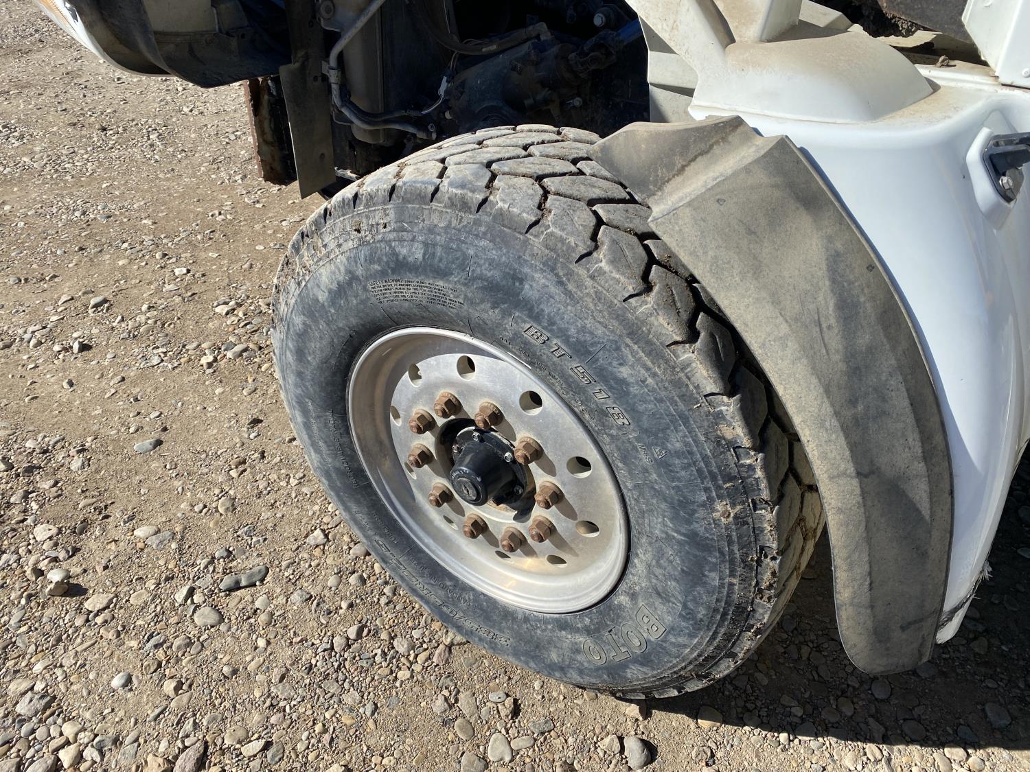 MaxForce A430 12.4 L 6 cylinder 430 HP engine, Eaton Fuller 9LL speed manual transmission, engine brake, engine block heater, A/C, cruise control, air ride driver seat, FSI EZ Spread 23 ft L box, 82 inch W x 48 inch T side walls, steel floor, double floor chain unload, double horizontal beaters, PTO pump, air ride suspension, 16,000 lb front axle, 53,000 lb rear axles, full lockers, 288 inch WB, aluminum front wheels, 385/65R22.5 front tires, 11R22.5 rear tires