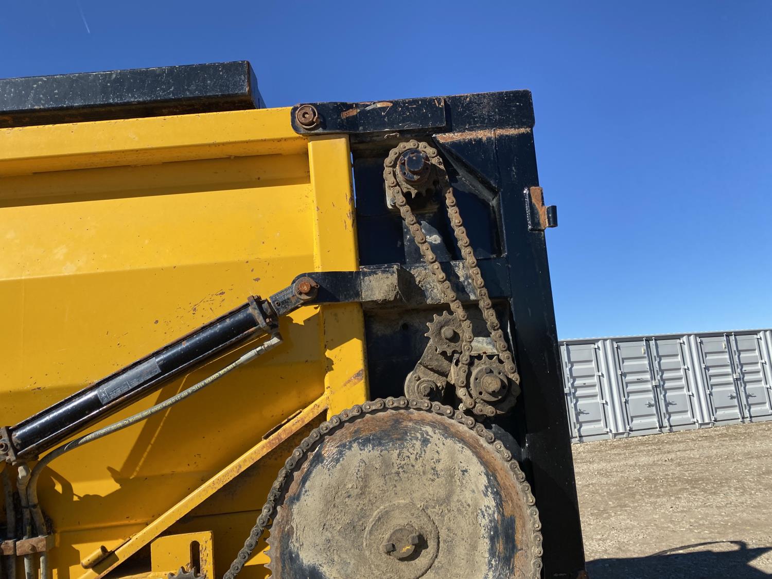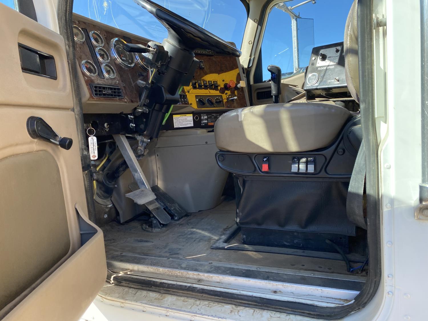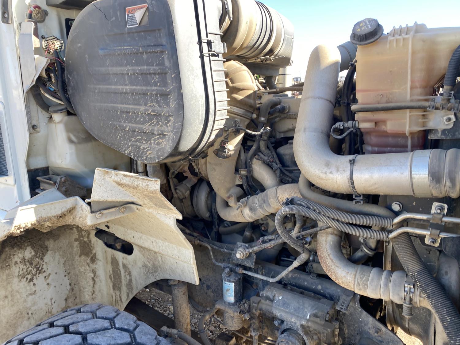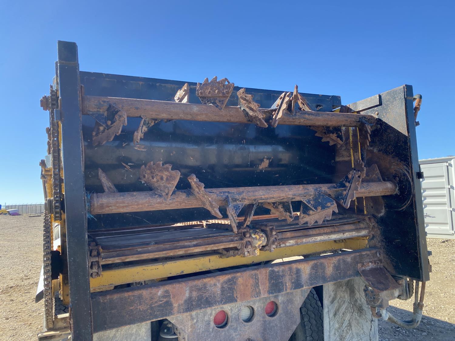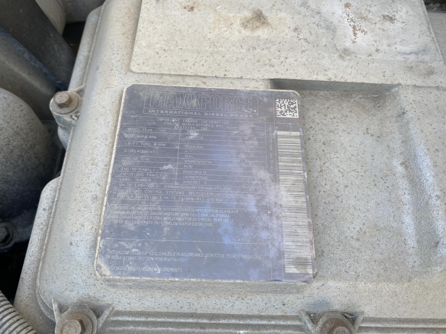 MaxForce A430 12.4 L 6 cylinder 430 HP engine, Eaton Fuller 9LL speed manual transmission, engine brake, engine block heater, A/C, cruise control, air ride driver seat, FSI EZ Spread 23 ft L box, 82 inch W x 48 inch T side walls, steel floor, double floor chain unload, double horizontal beaters, PTO pump, air ride suspension, 16,000 lb front axle, 53,000 lb rear axles, full lockers, 288 inch WB, aluminum front wheels, 385/65R22.5 front tires, 11R22.5 rear tires