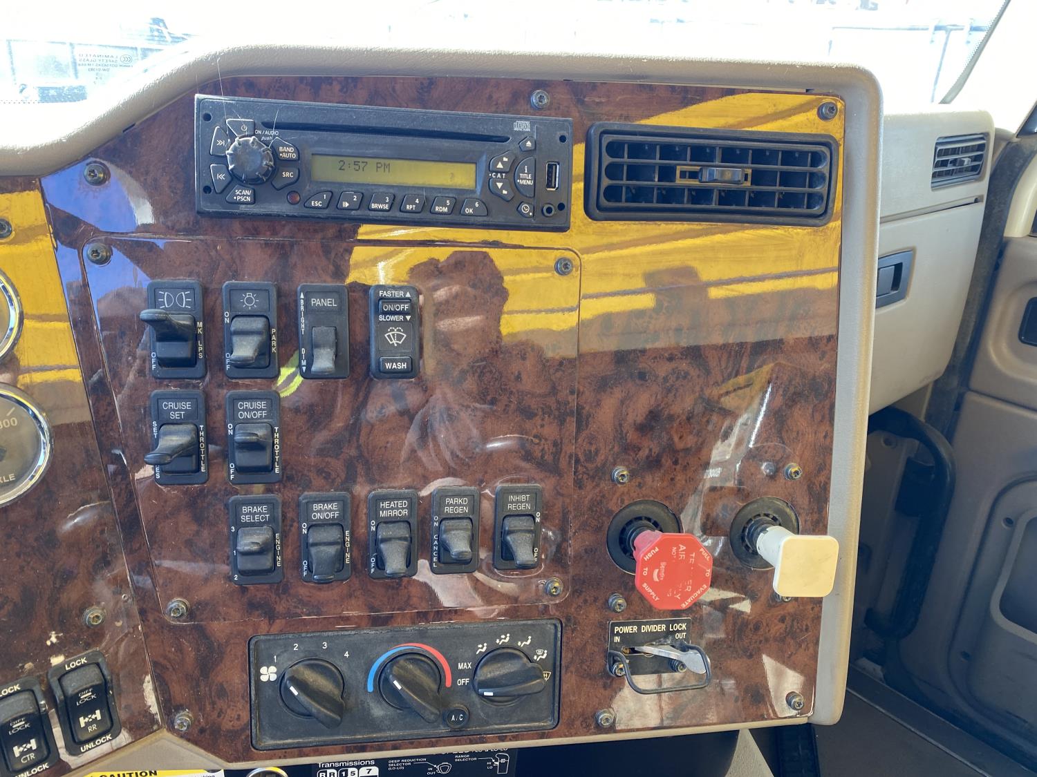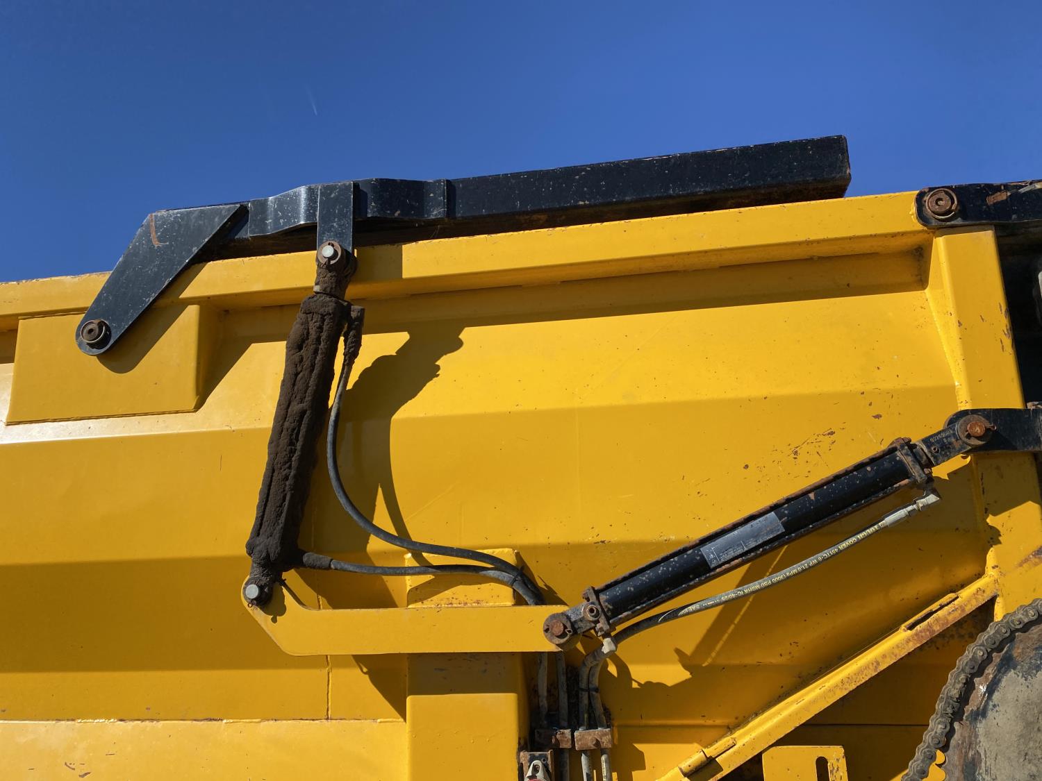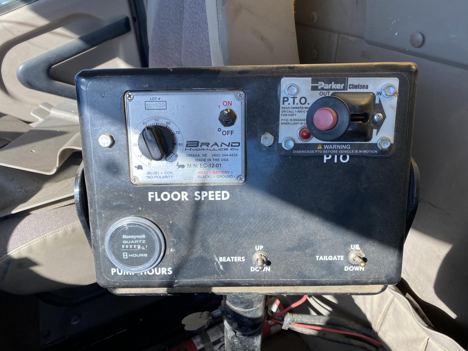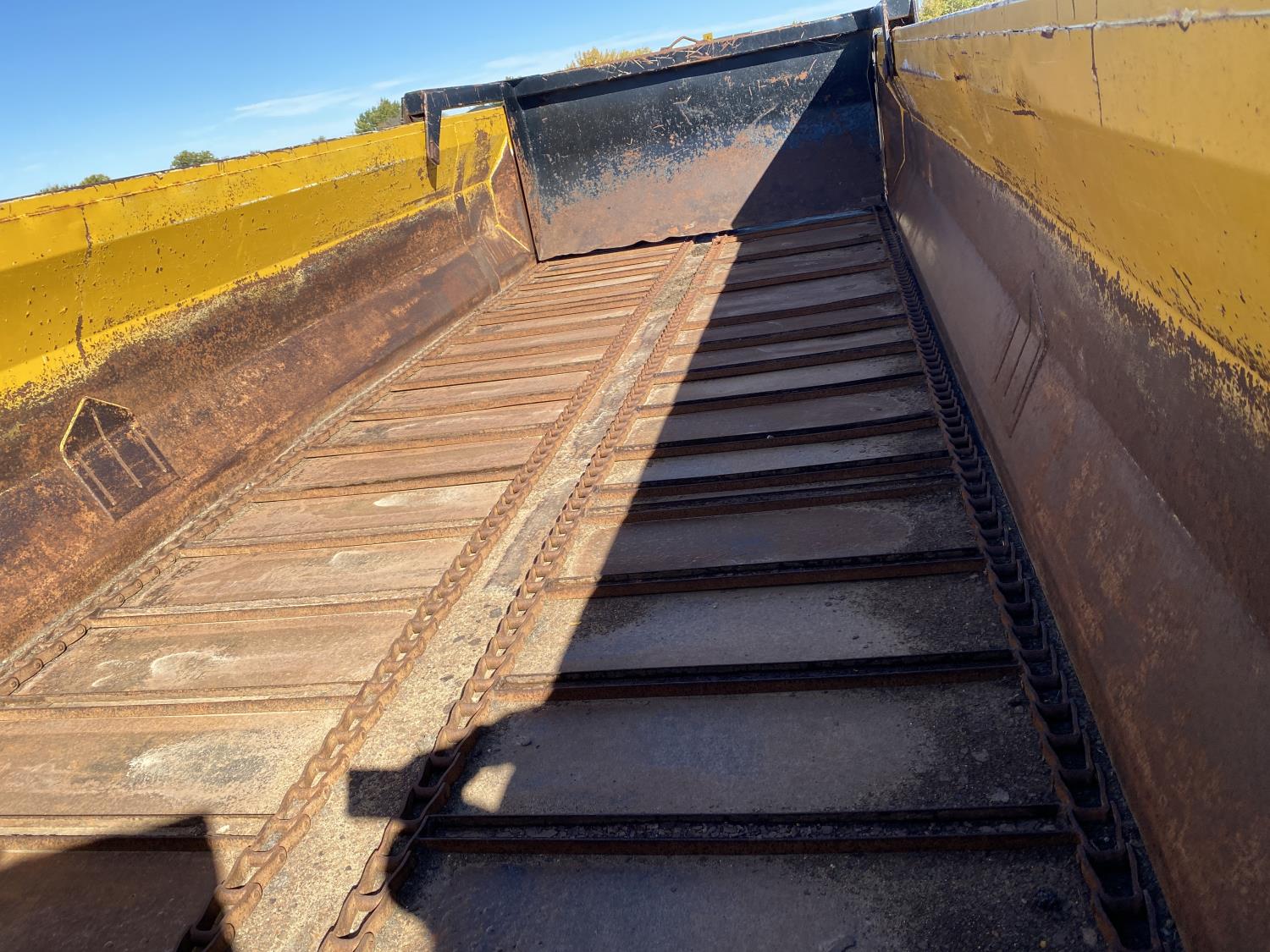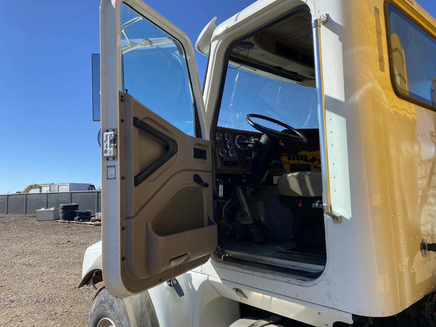 MaxForce A430 12.4 L 6 cylinder 430 HP engine, Eaton Fuller 9LL speed manual transmission, engine brake, engine block heater, A/C, cruise control, air ride driver seat, FSI EZ Spread 23 ft L box, 82 inch W x 48 inch T side walls, steel floor, double floor chain unload, double horizontal beaters, PTO pump, air ride suspension, 16,000 lb front axle, 53,000 lb rear axles, full lockers, 288 inch WB, aluminum front wheels, 385/65R22.5 front tires, 11R22.5 rear tires