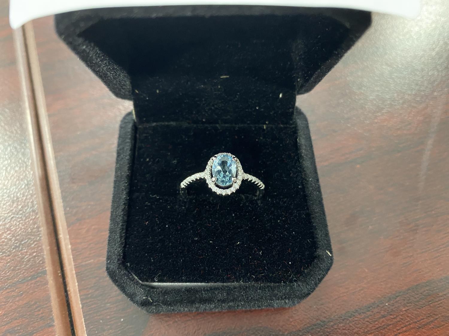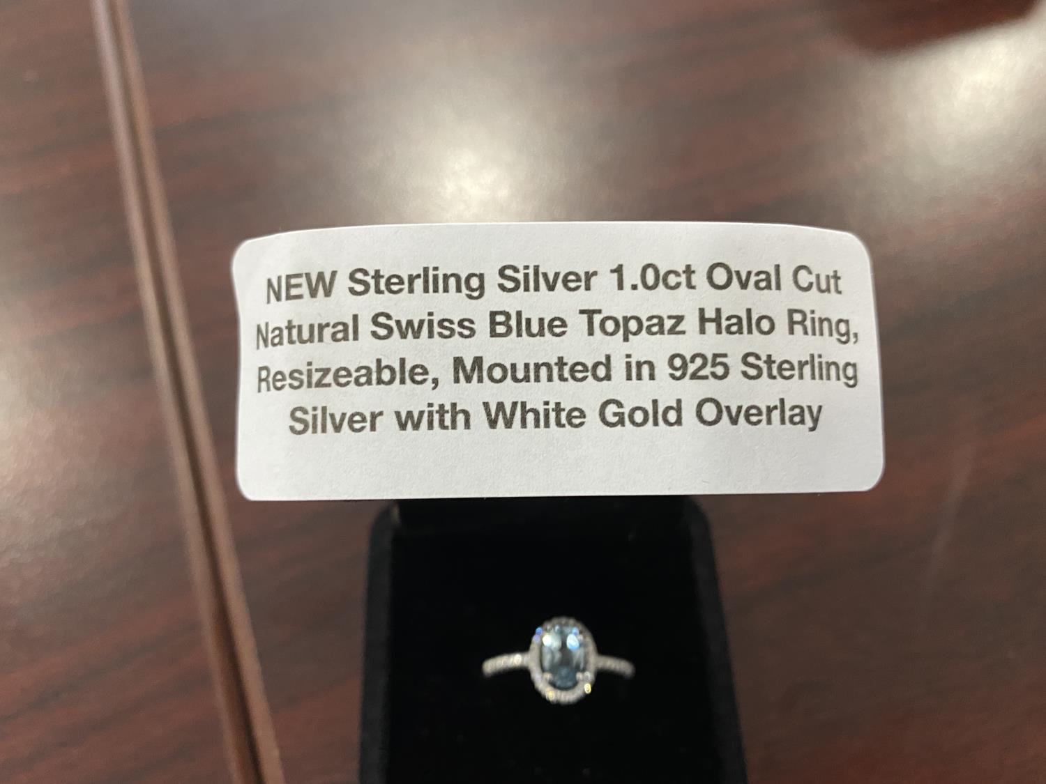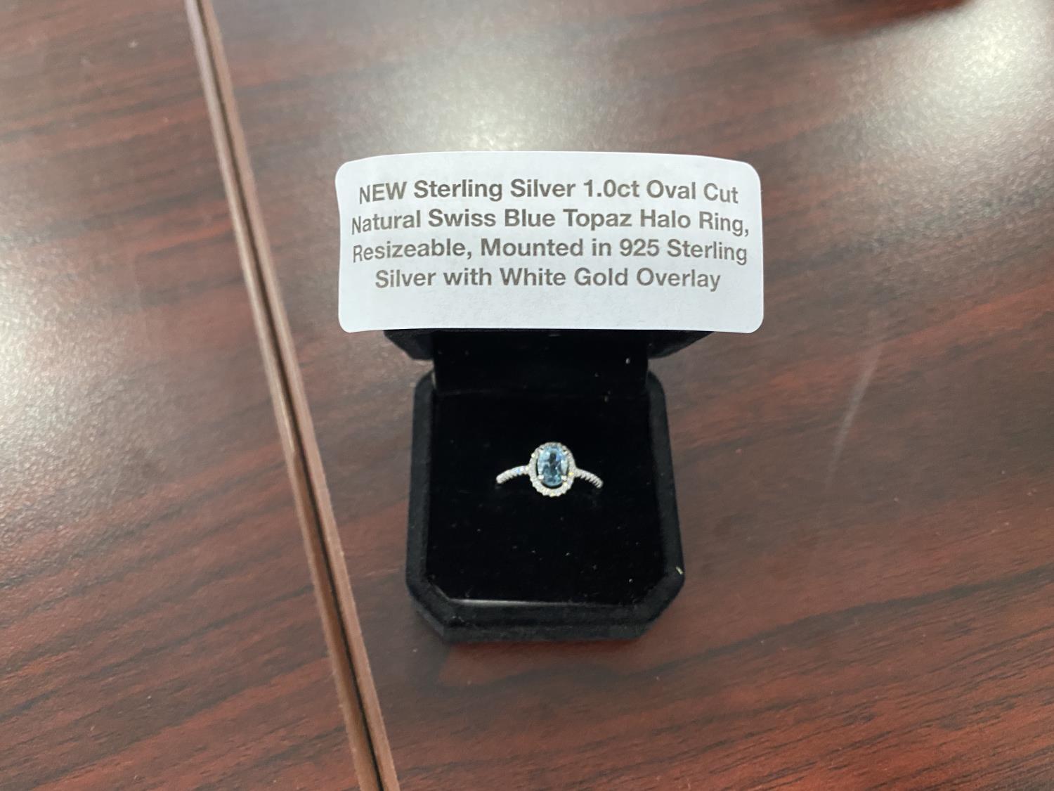 1051 Smartlife 1.0 Oval Cut Natural Swiss Blue Topaz Halo Ring (Unused)