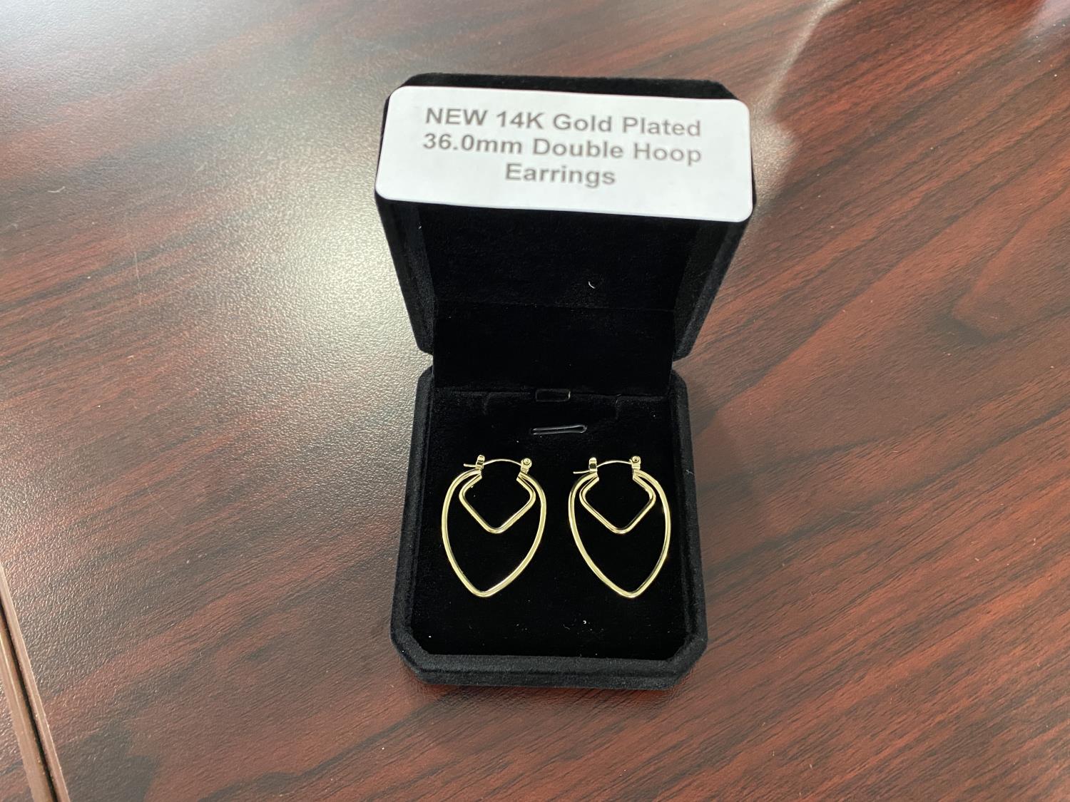 1038 Smartlife 14K Gold Plated 36 mm Double Hoop Earrings (Unused)